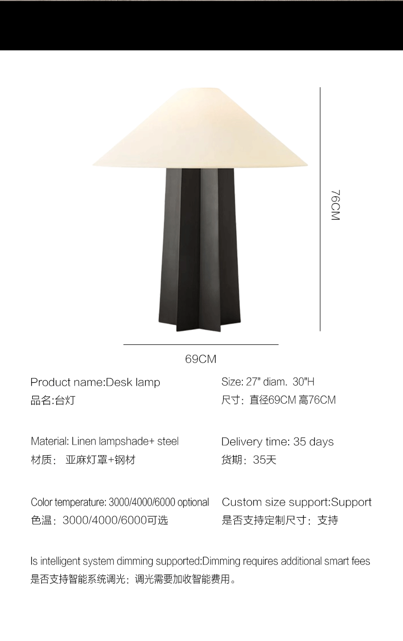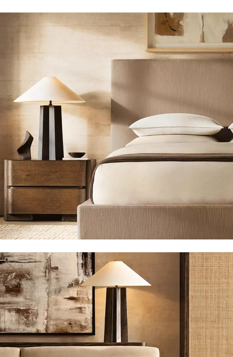 法式几何客厅卧室亚麻斜面灯罩台灯