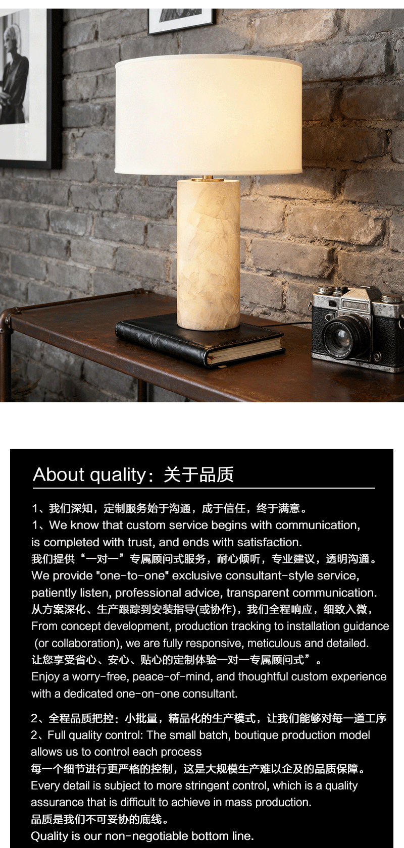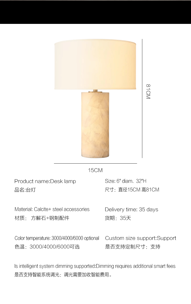 法式纹理客厅卧室方解石钢制台灯