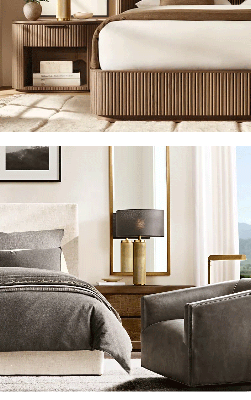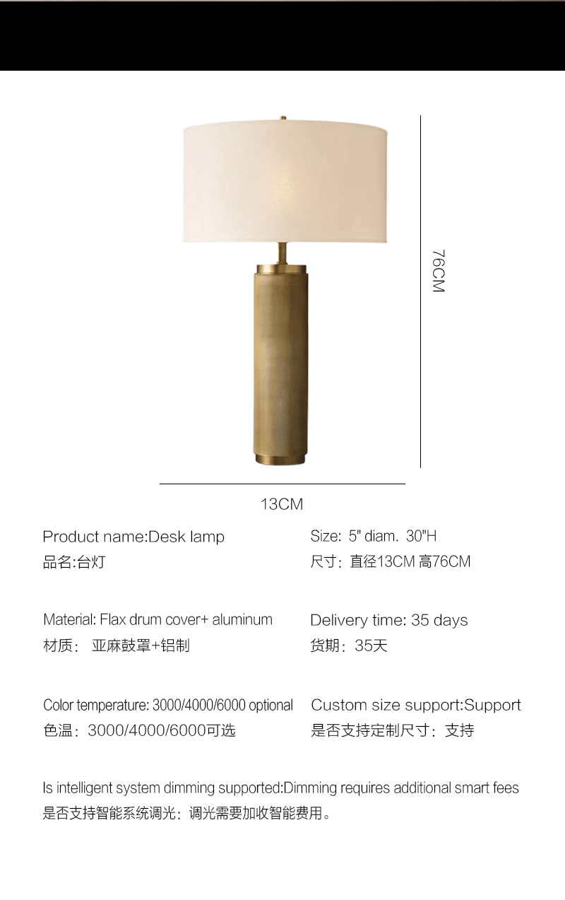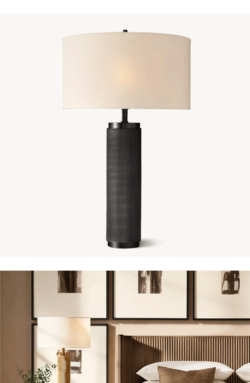 法式简约客厅卧室亚麻灯罩金属台灯