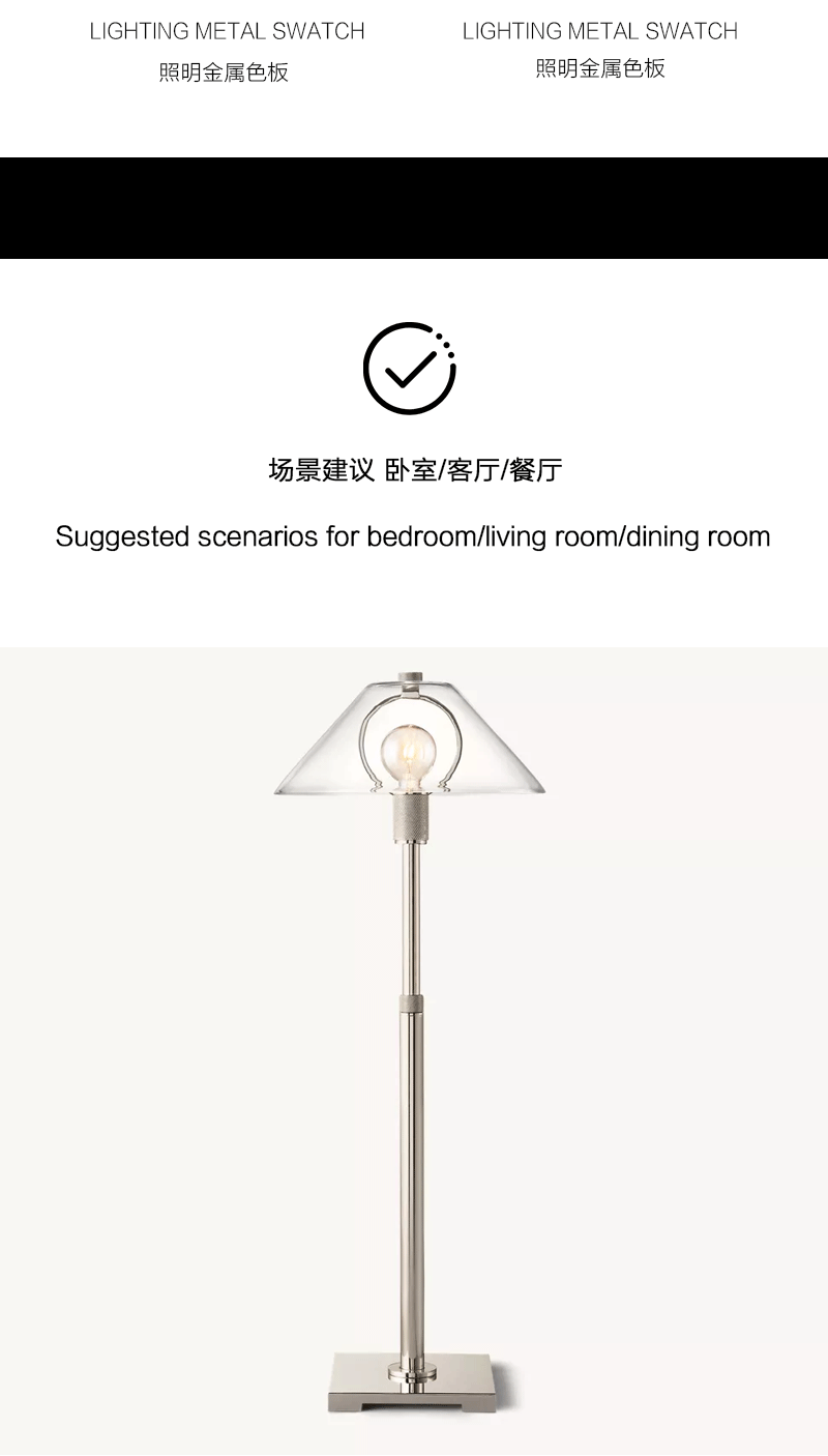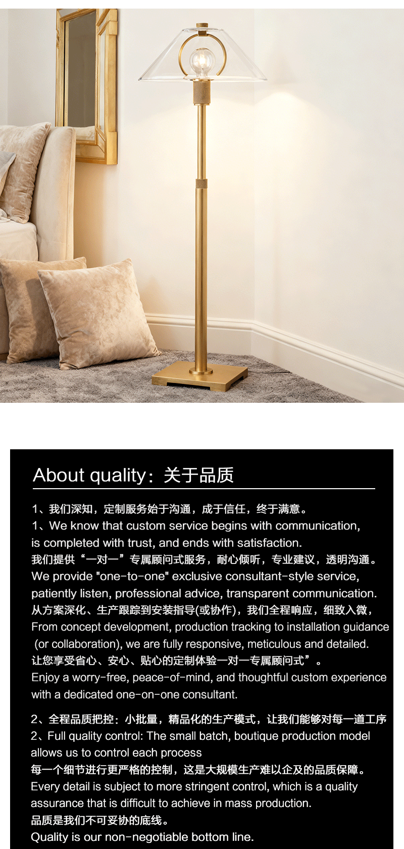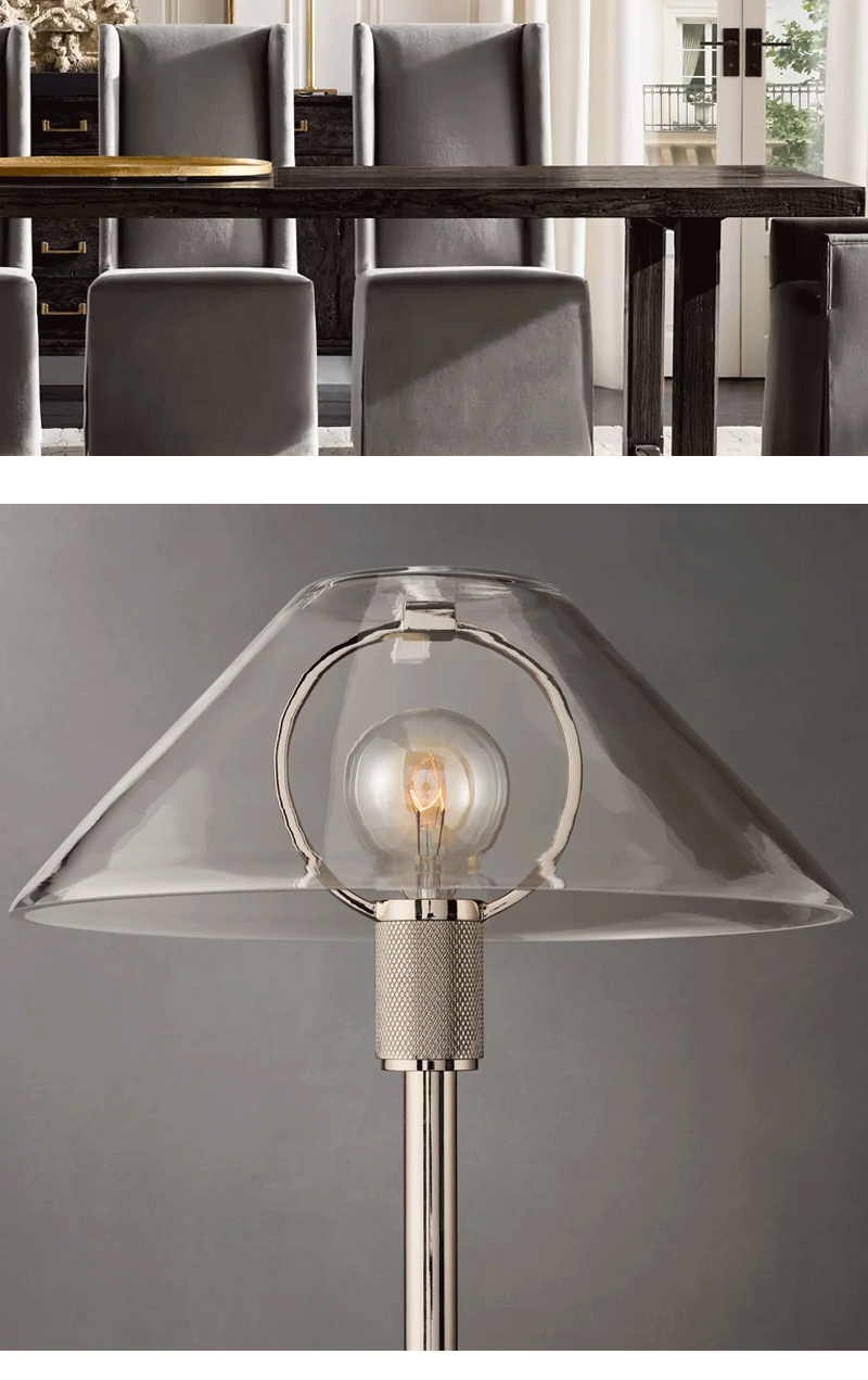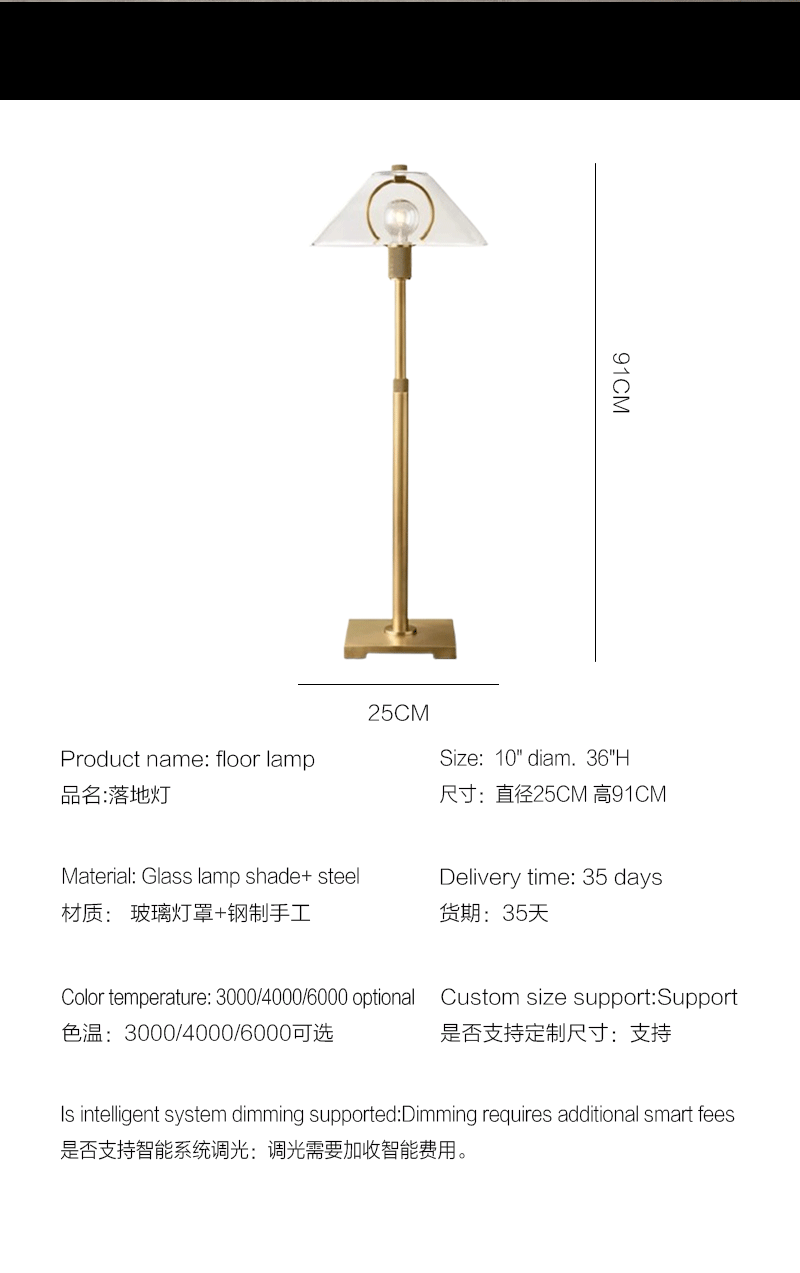 法式抛光客厅卧室透明玻璃斜面罩落地灯
