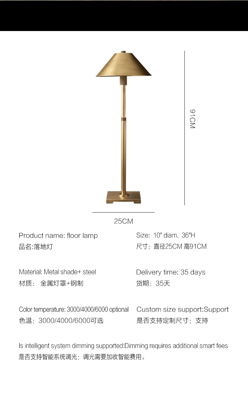 法式抛光客厅卧室金属斜坡灯罩落地灯