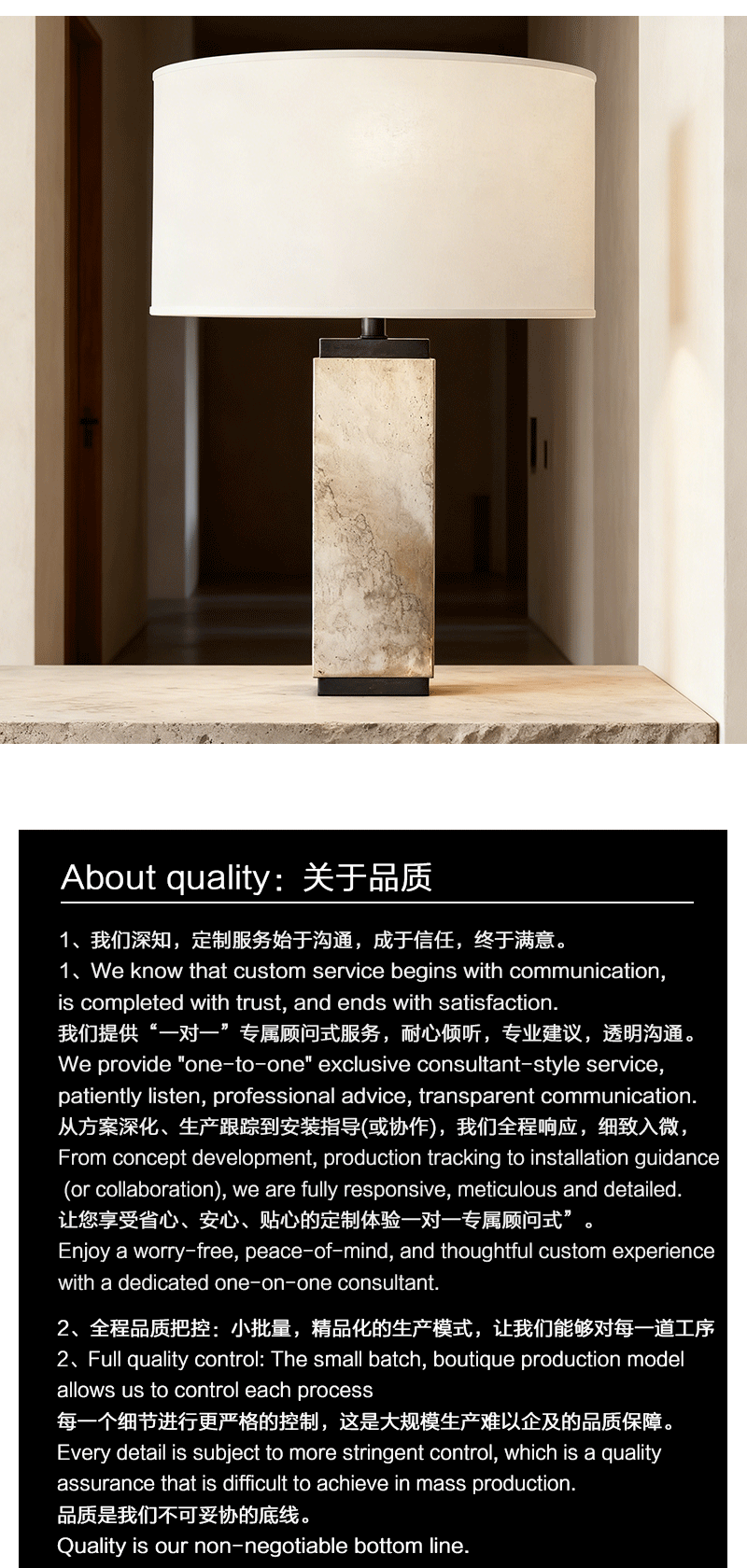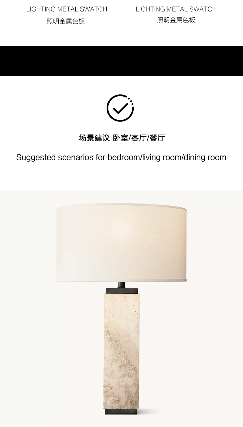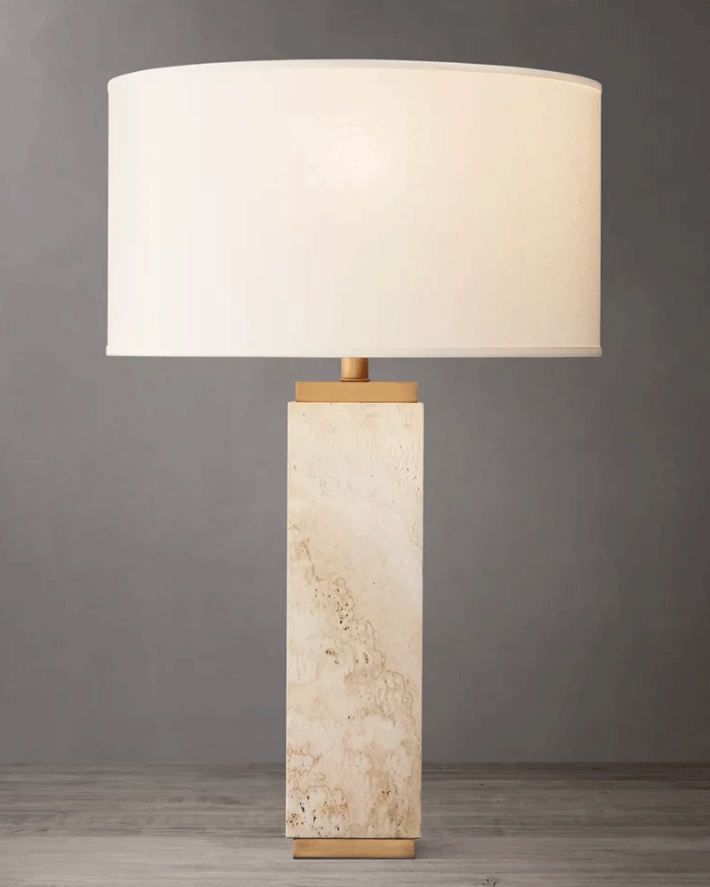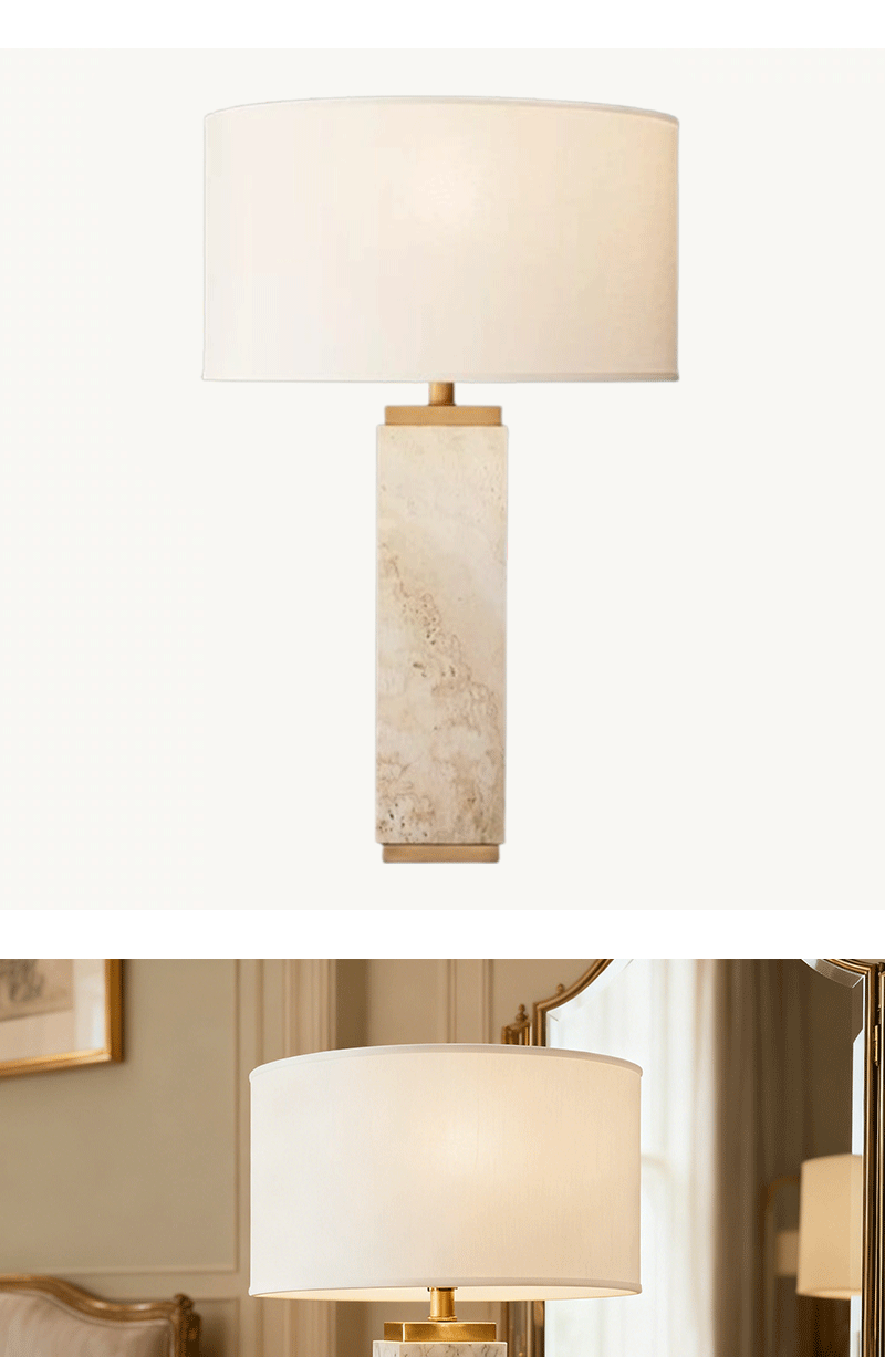 法式雕塑客厅卧室亚麻灯罩方柱洞石台灯