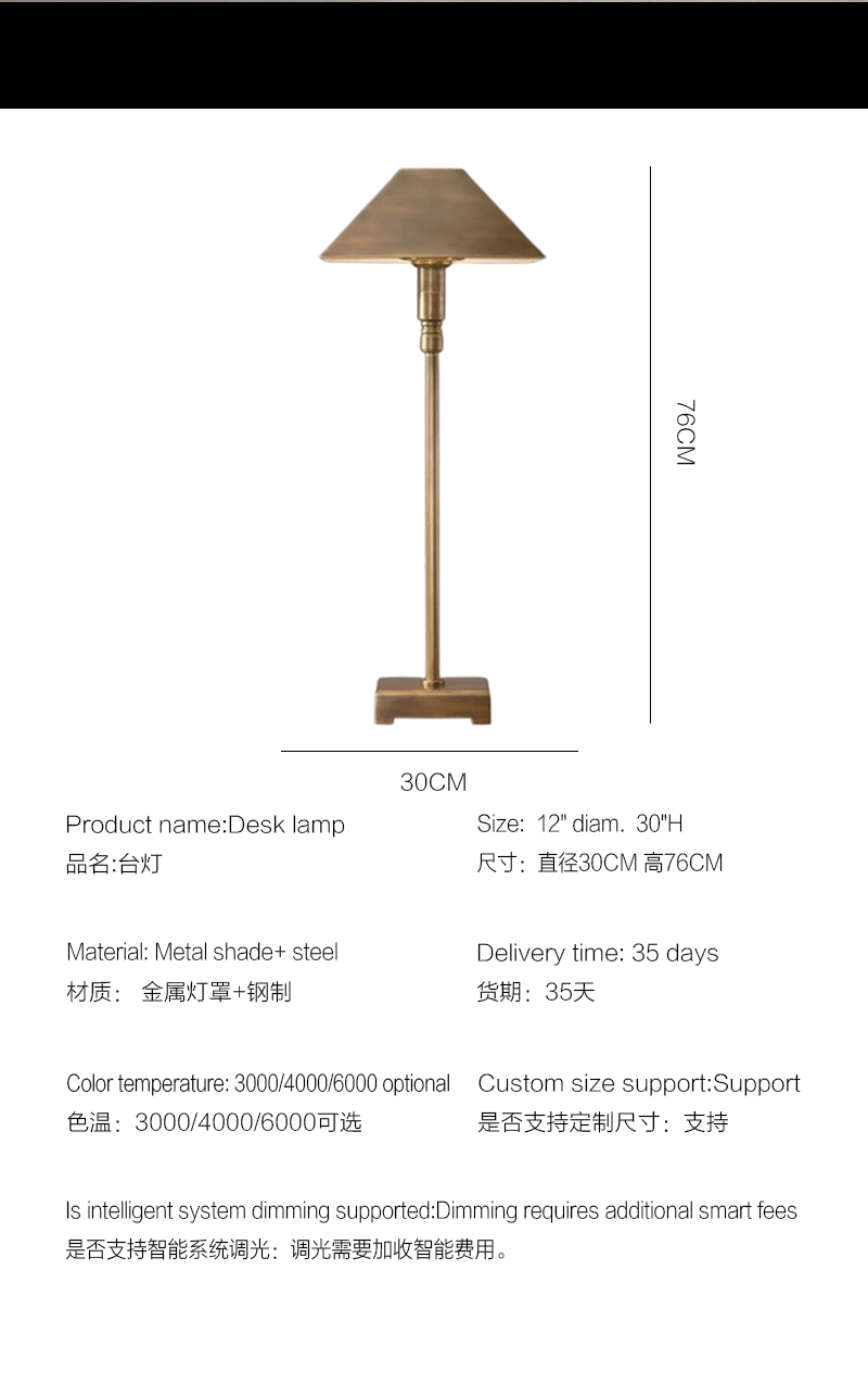 法式钢制客厅卧室金字塔金属灯罩台灯
