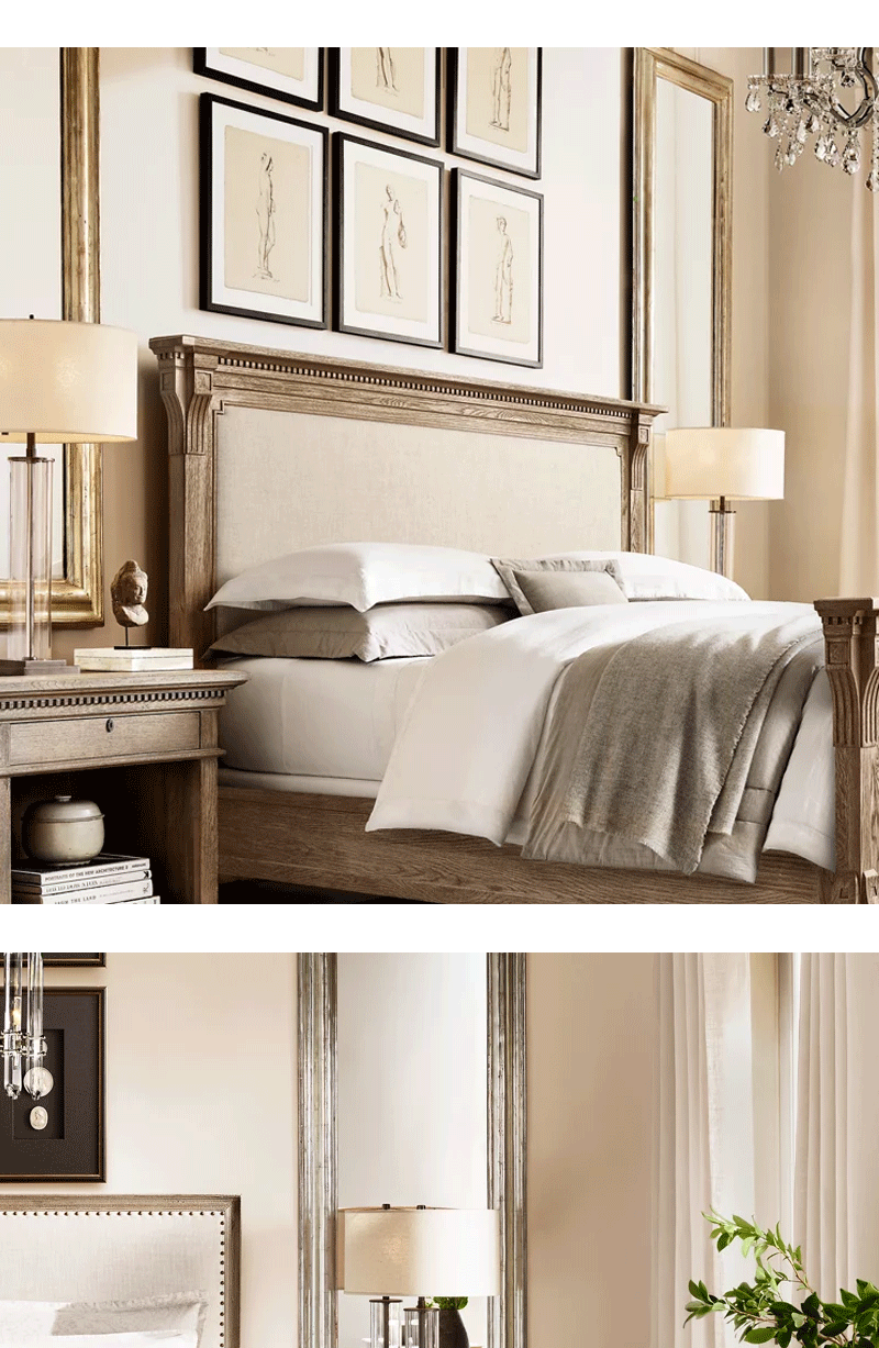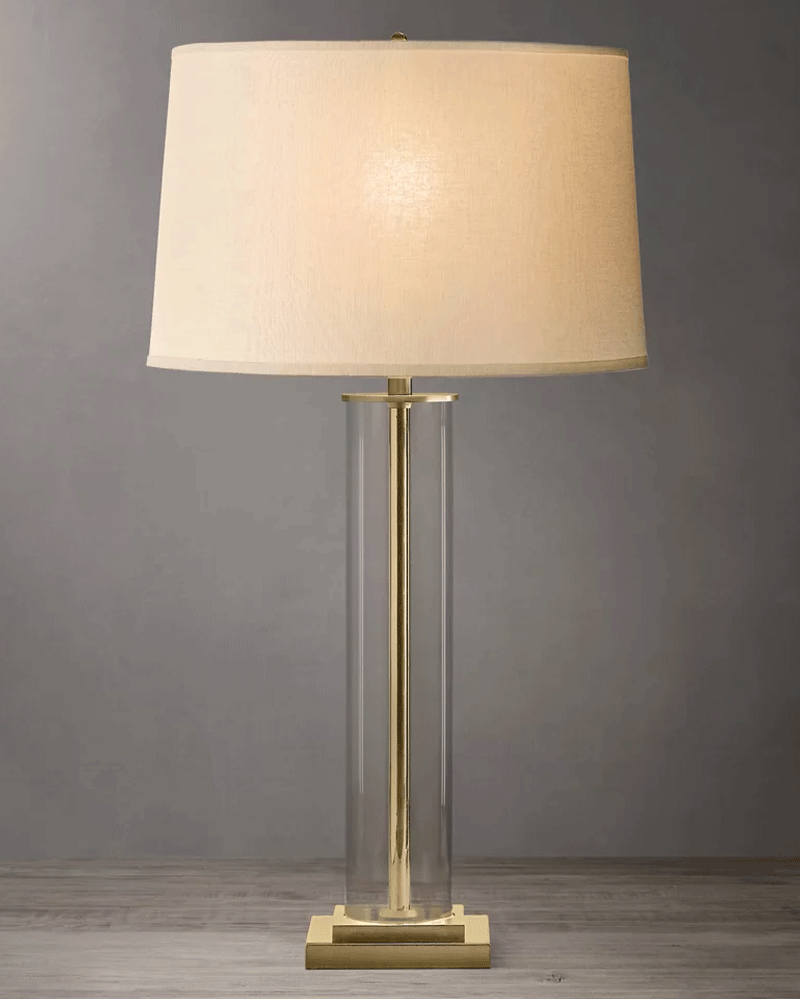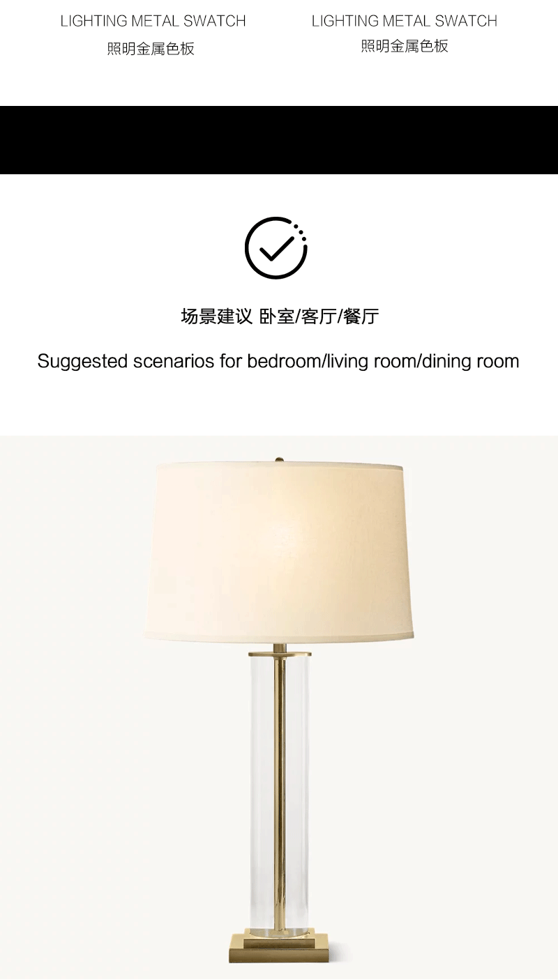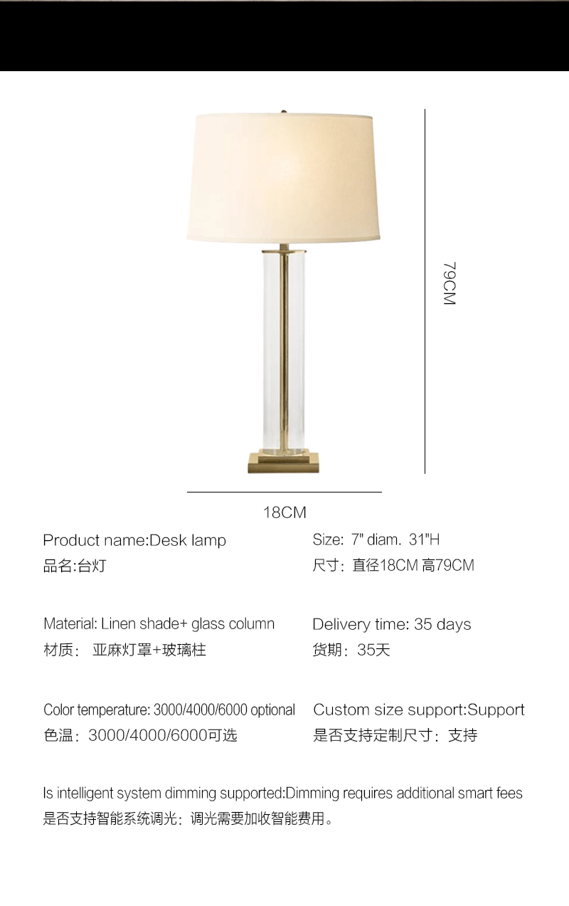 法式柱台客厅卧室亚麻灯罩玻璃台灯