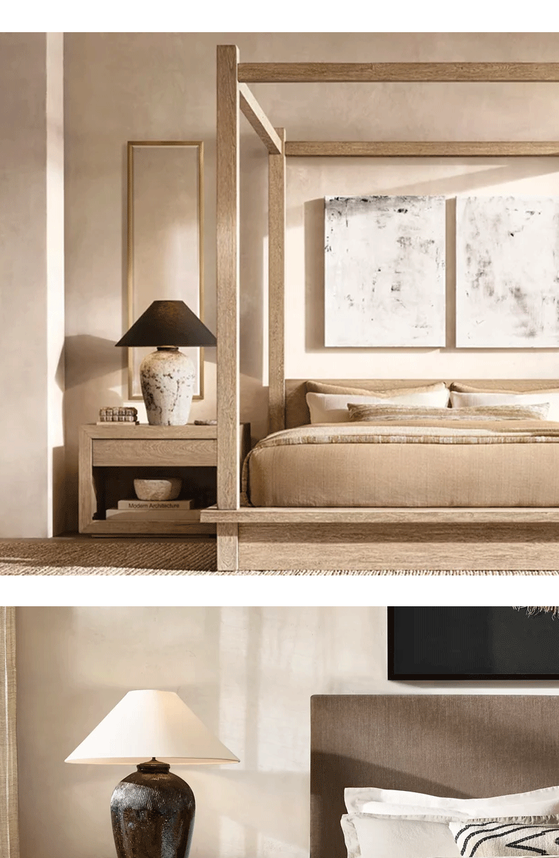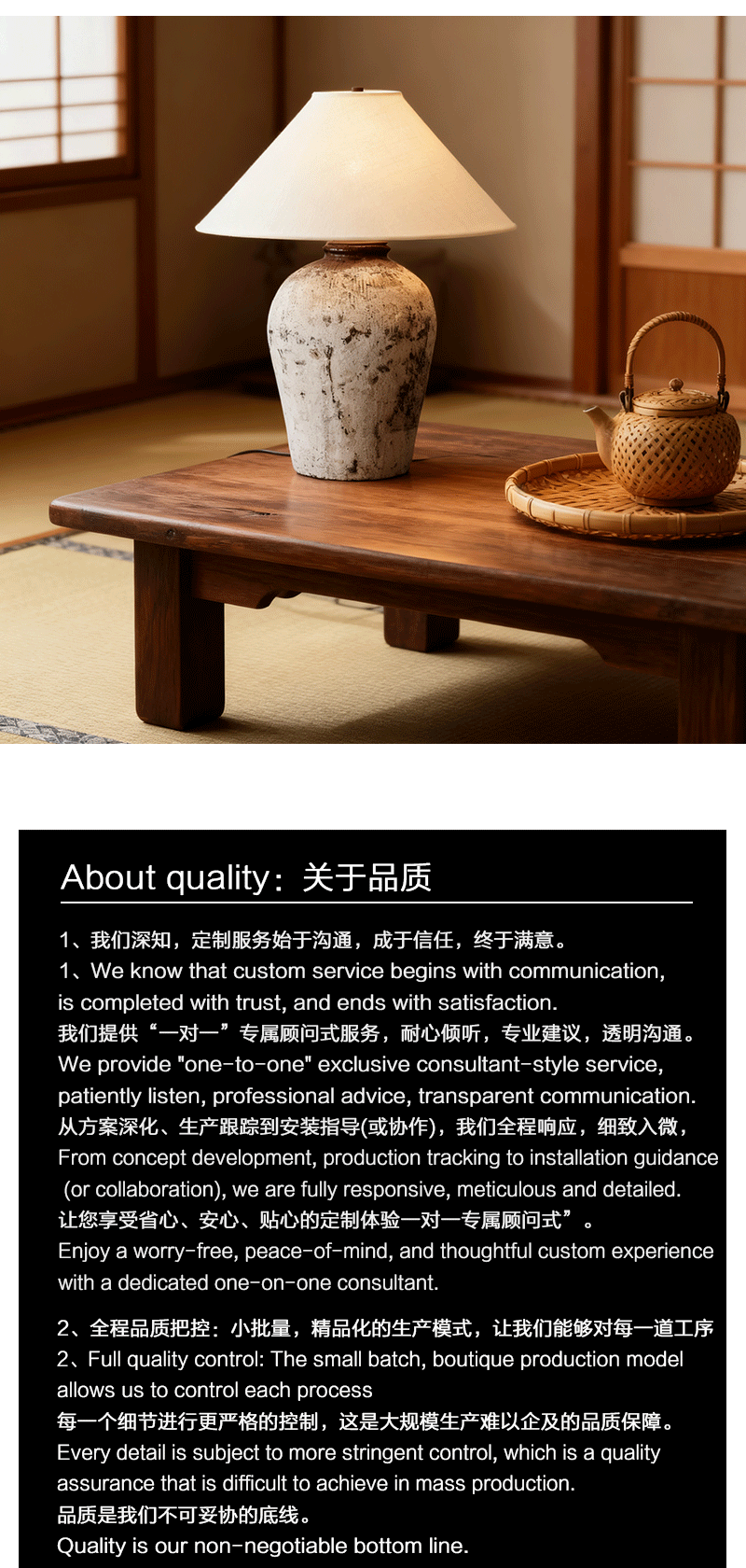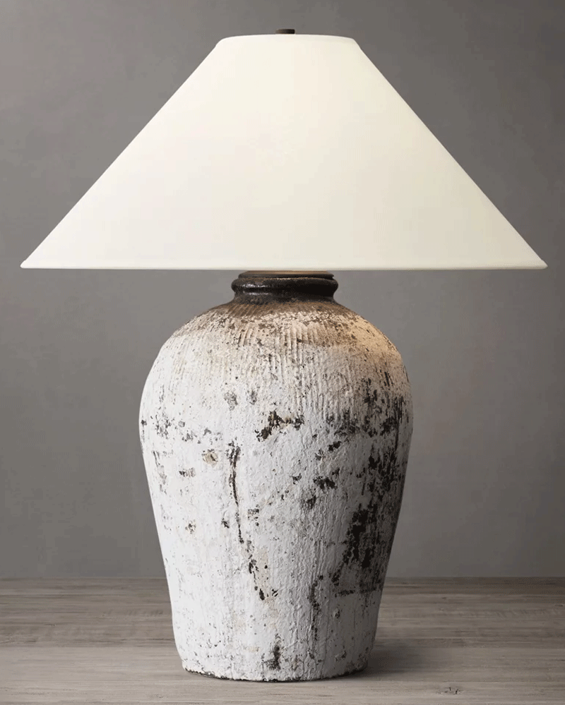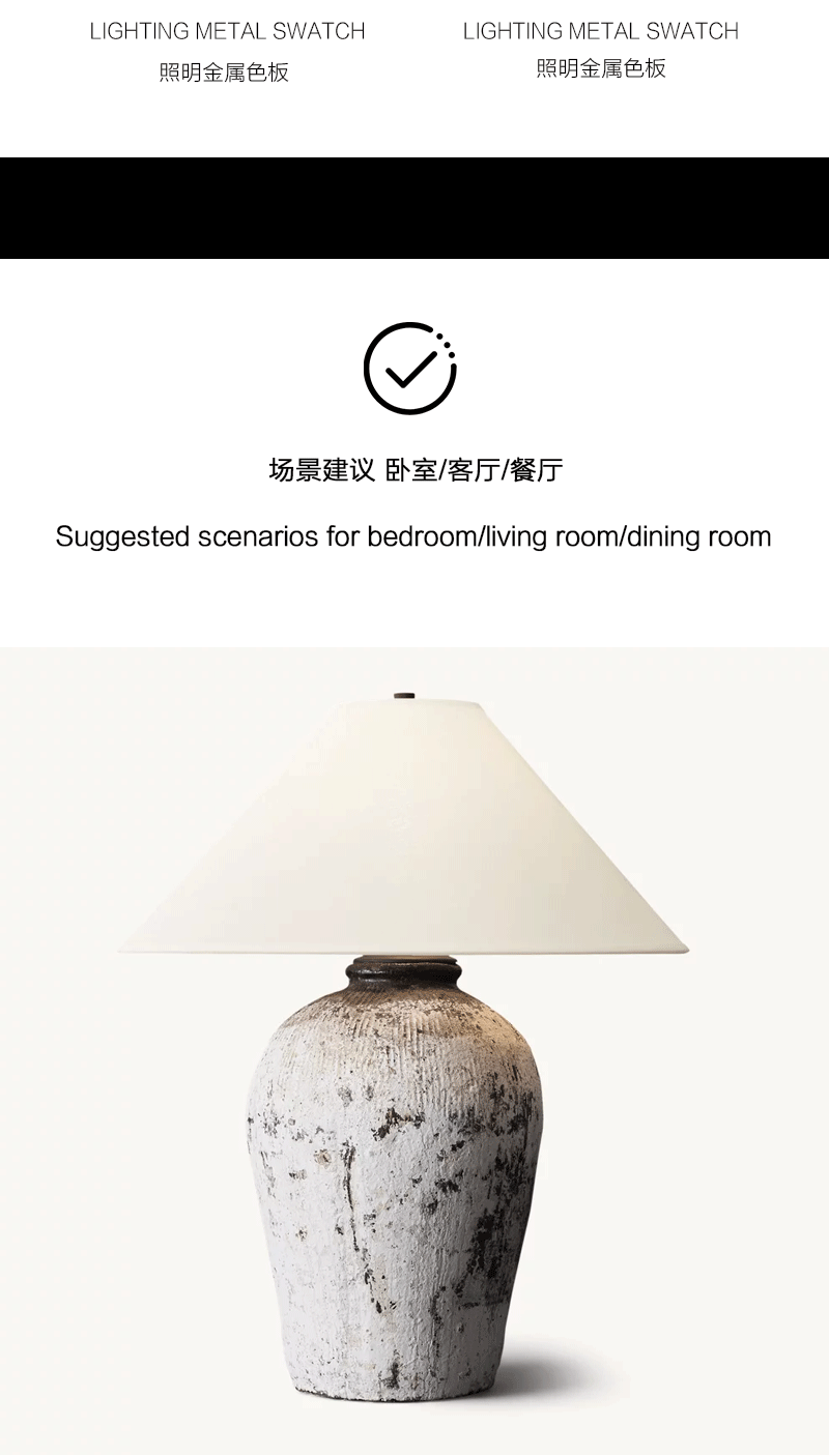 中式米酒器客厅卧室亚麻灯罩陶罐台灯