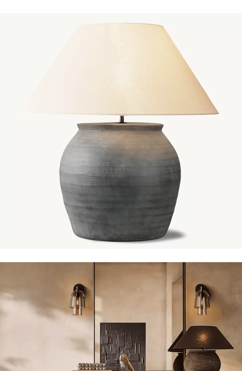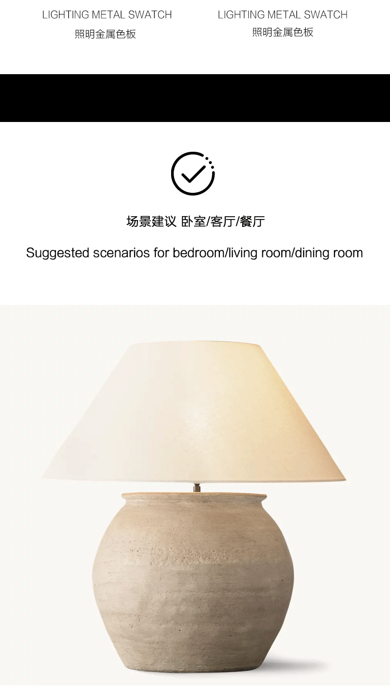 经典质朴客厅卧室赤土亚麻灯罩台灯