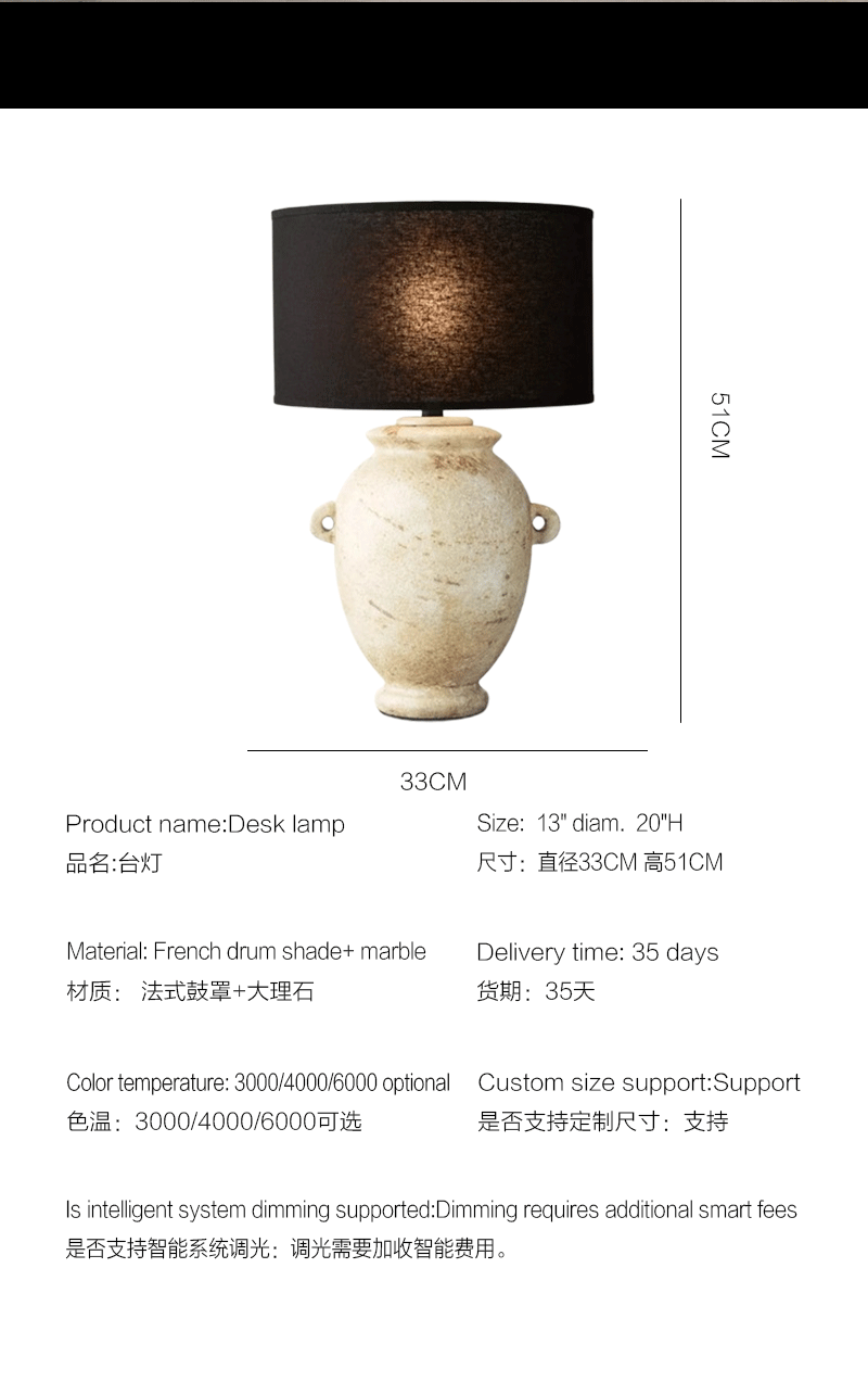 法式雕刻客厅卧室大理石鼓罩台灯