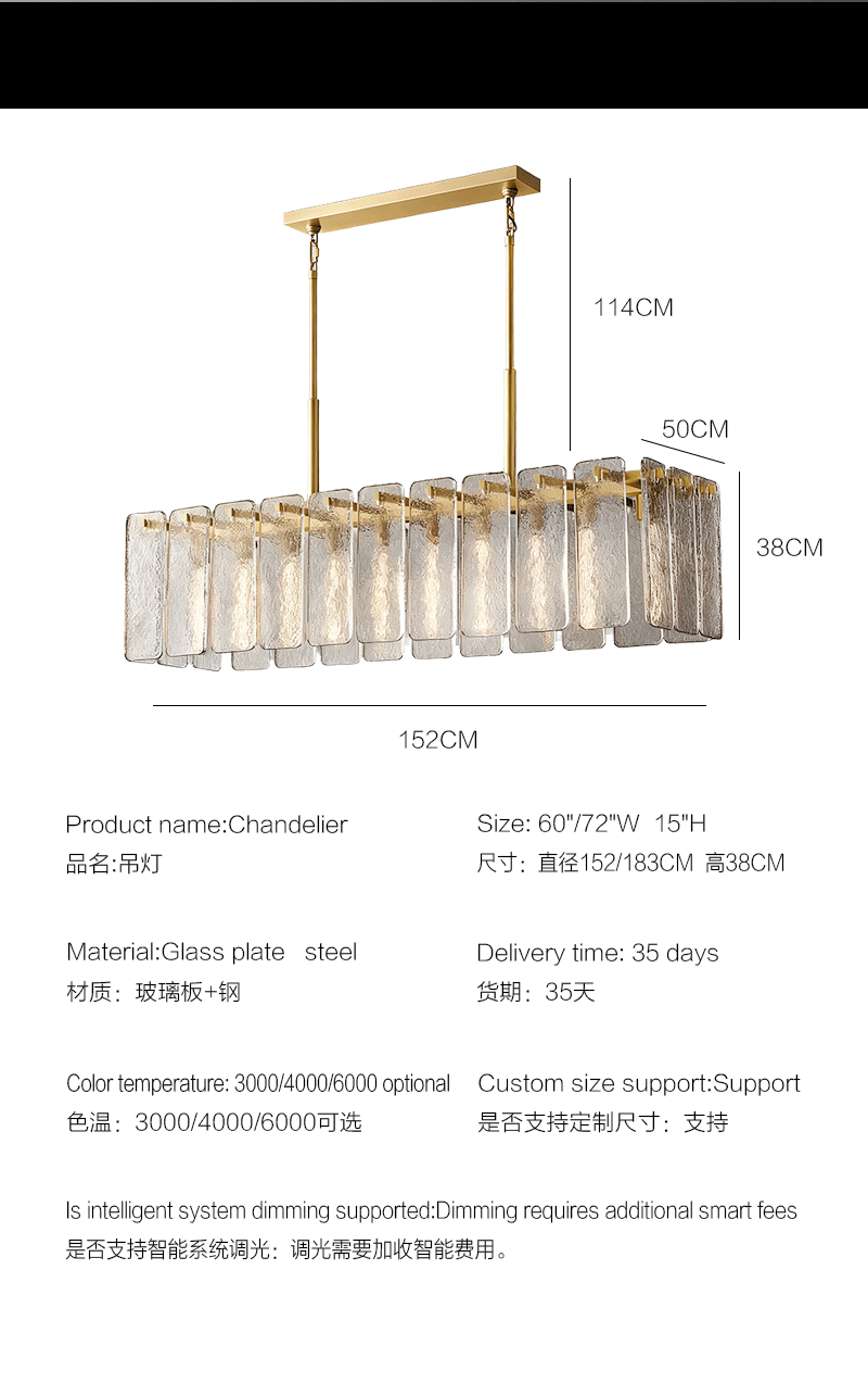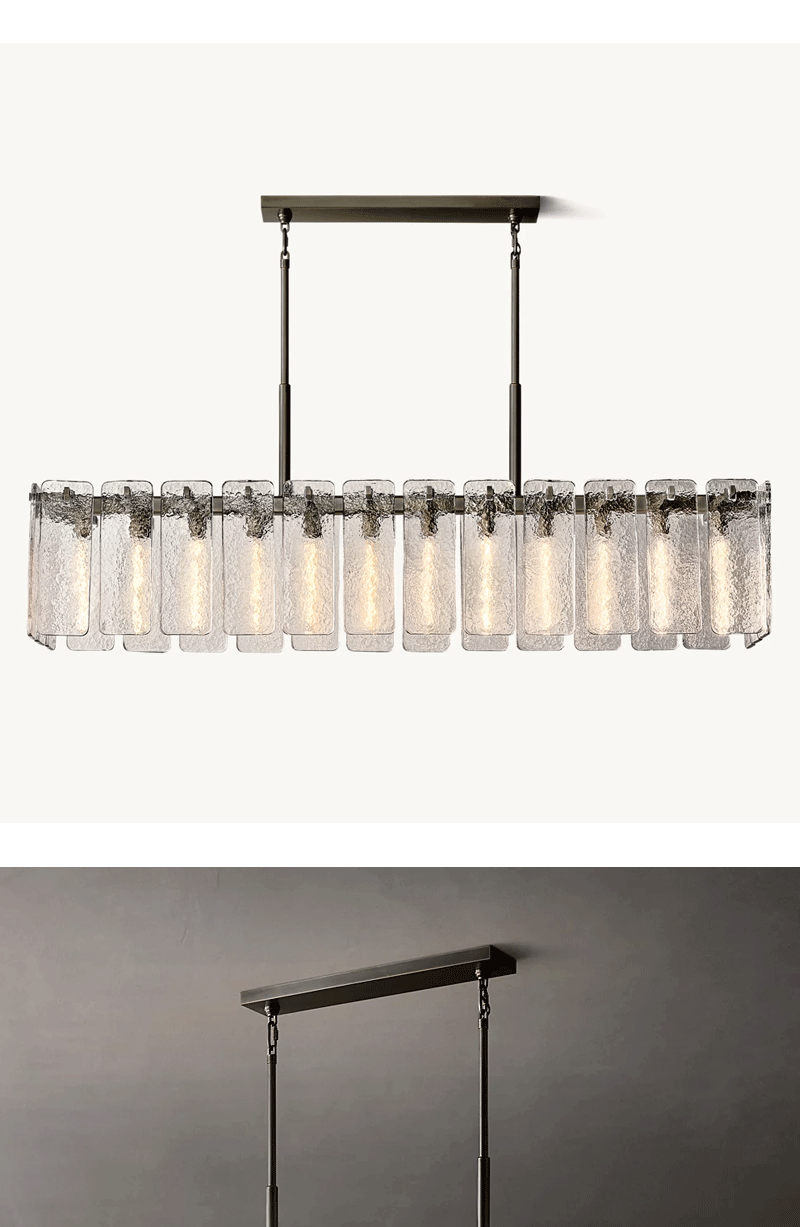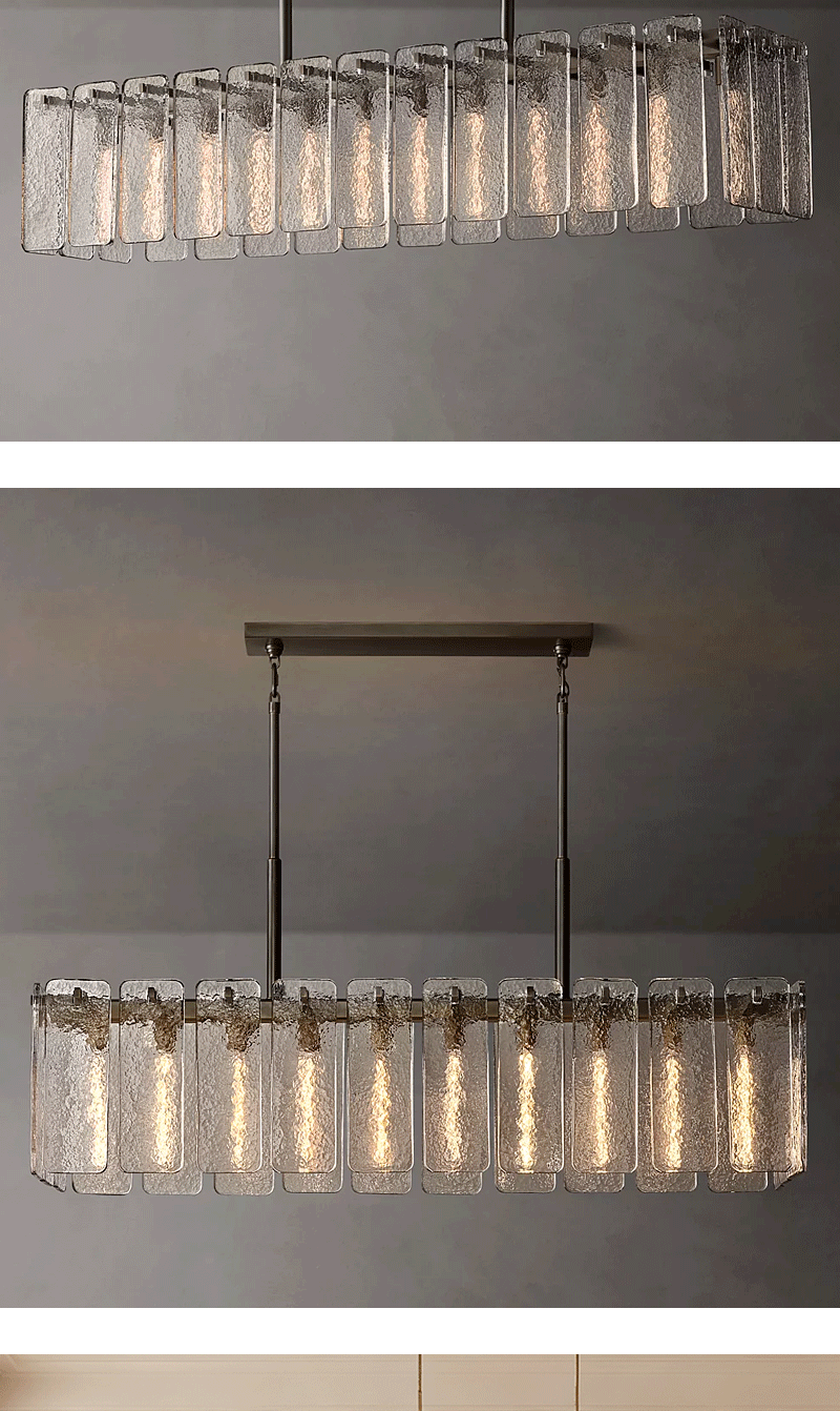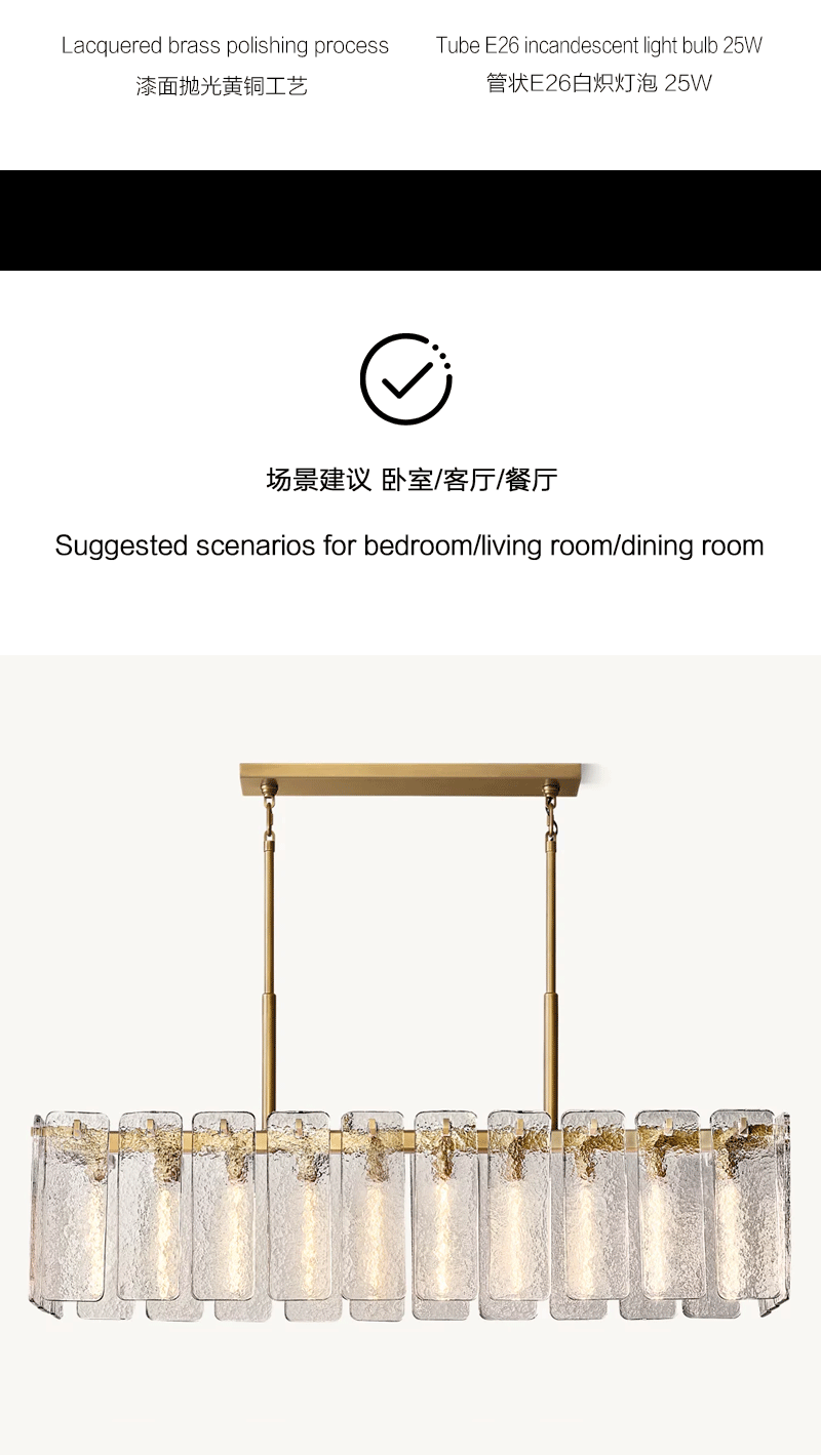 美式轻奢客厅餐厅玻璃矩形吊灯
