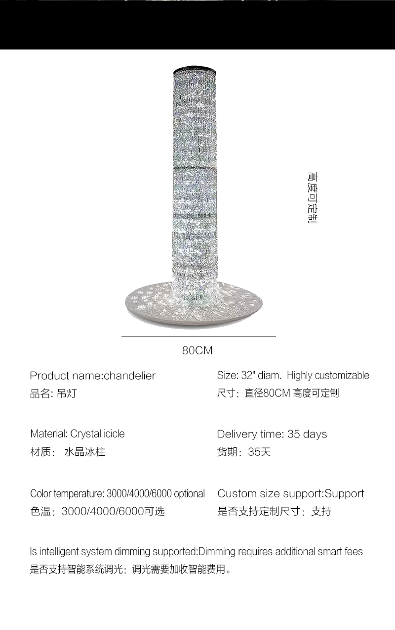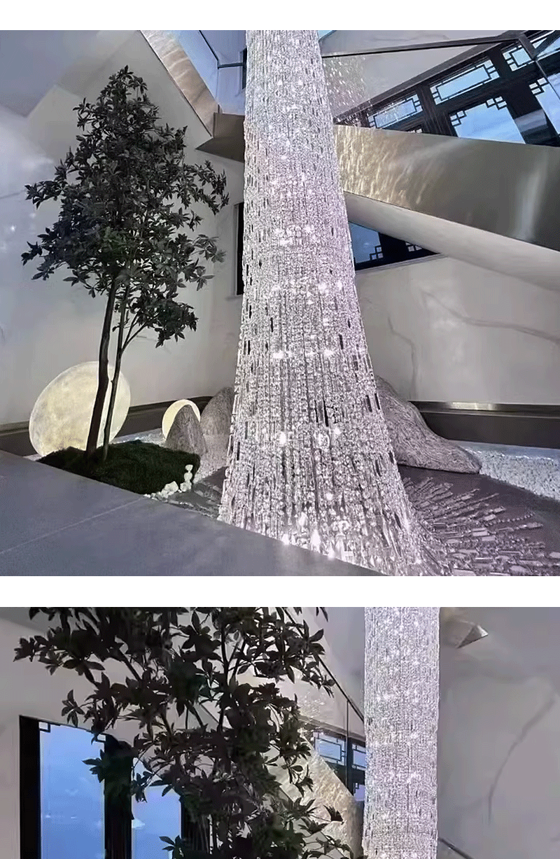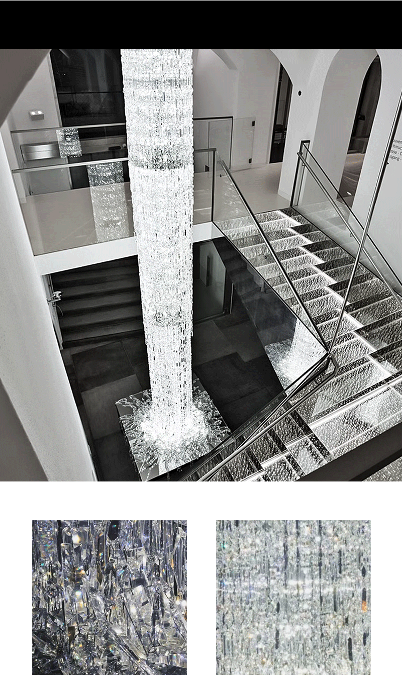 法式轻奢楼梯旋转水晶冰柱可定制吊灯