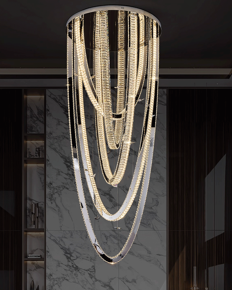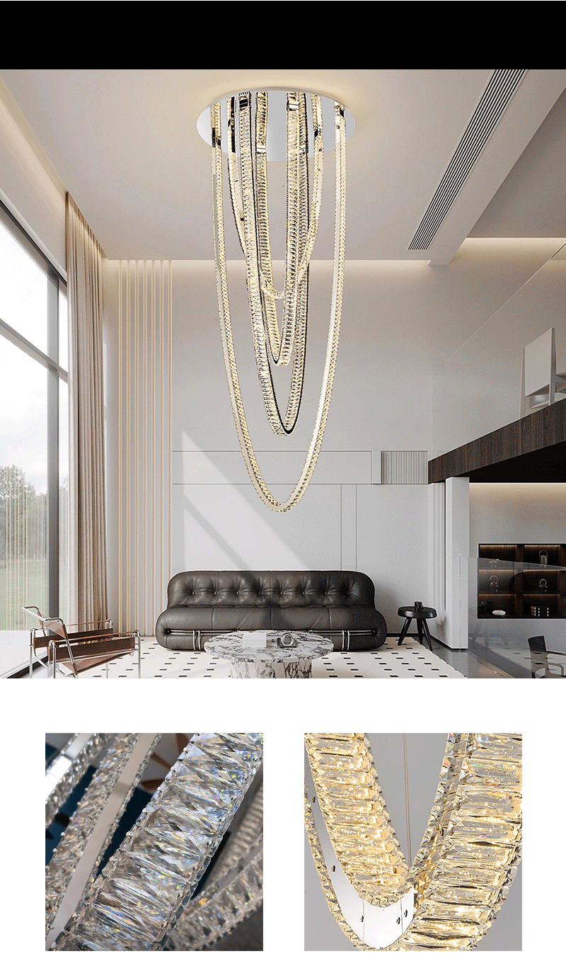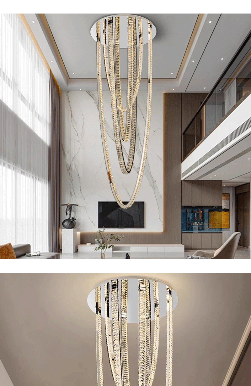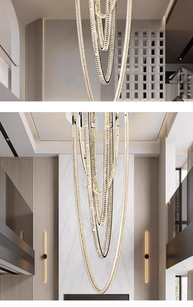 现代轻奢复式楼梯中空创意水晶大吊灯
