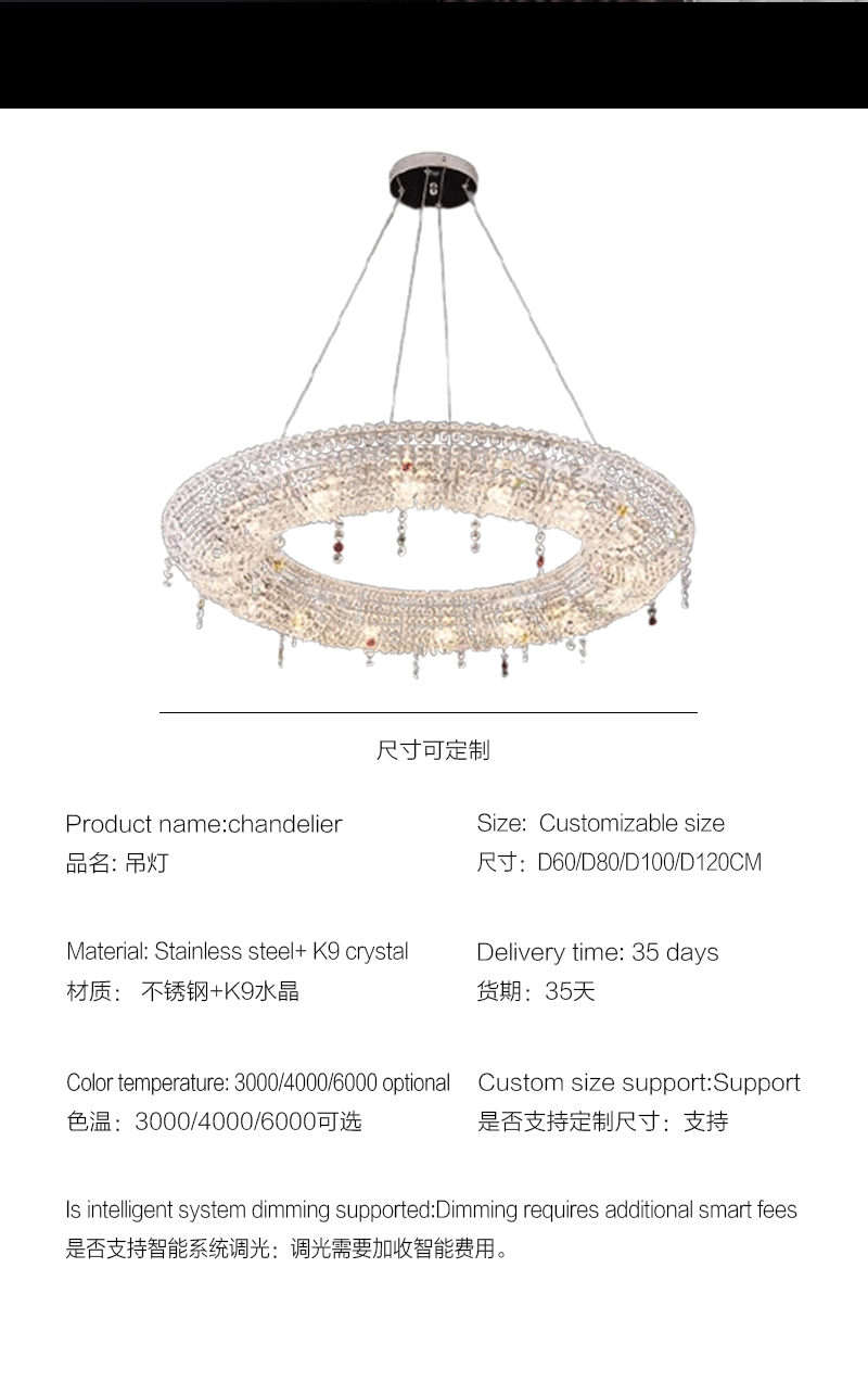 意大利轻奢客厅卧室进口设计圆形水晶吊灯