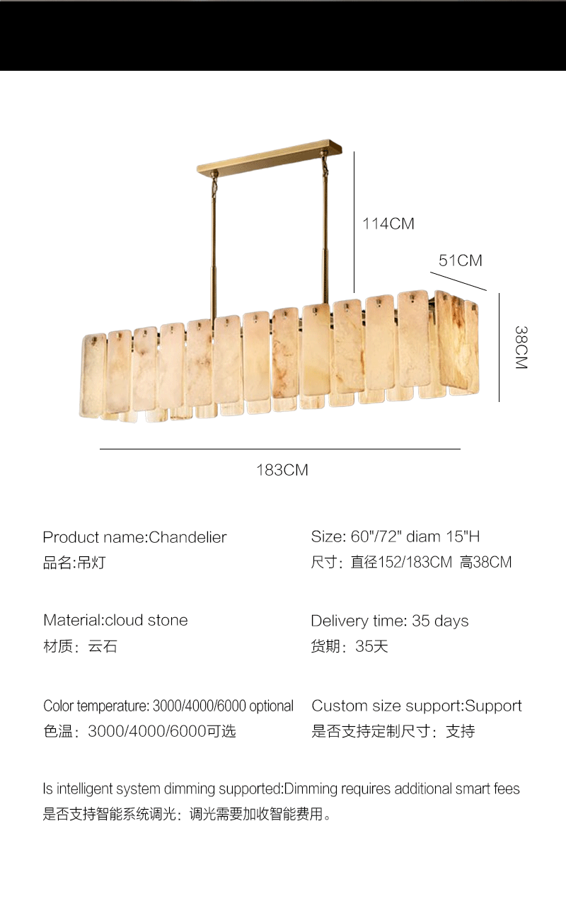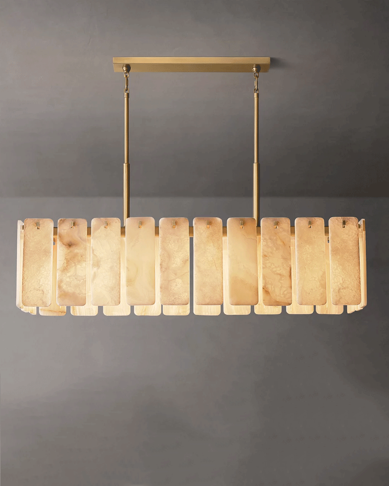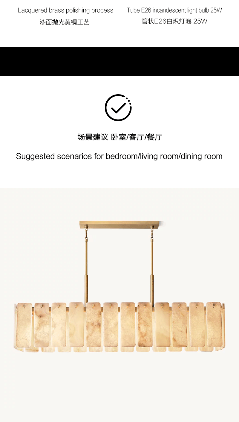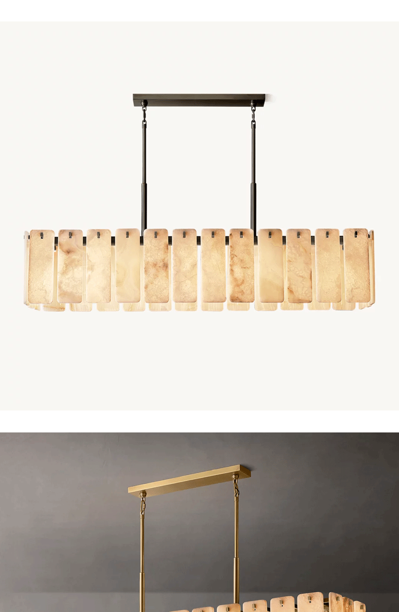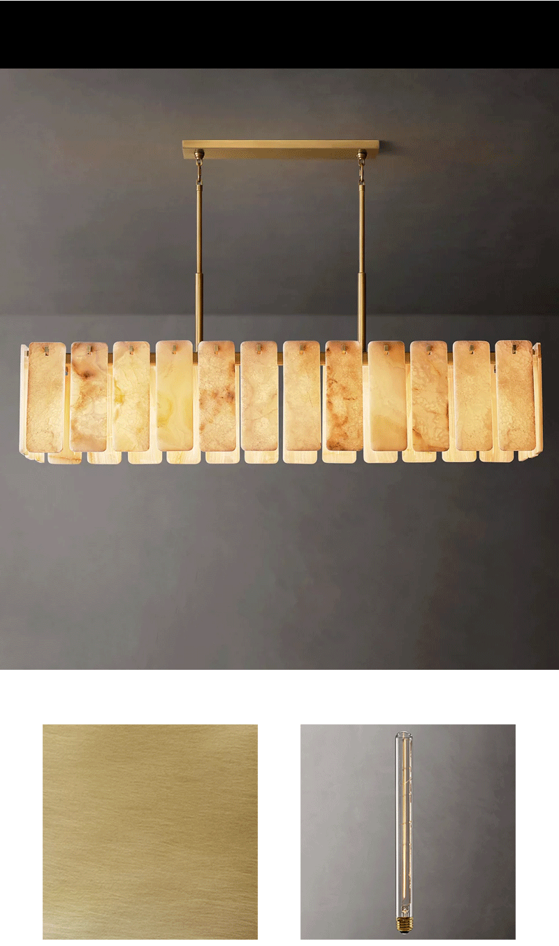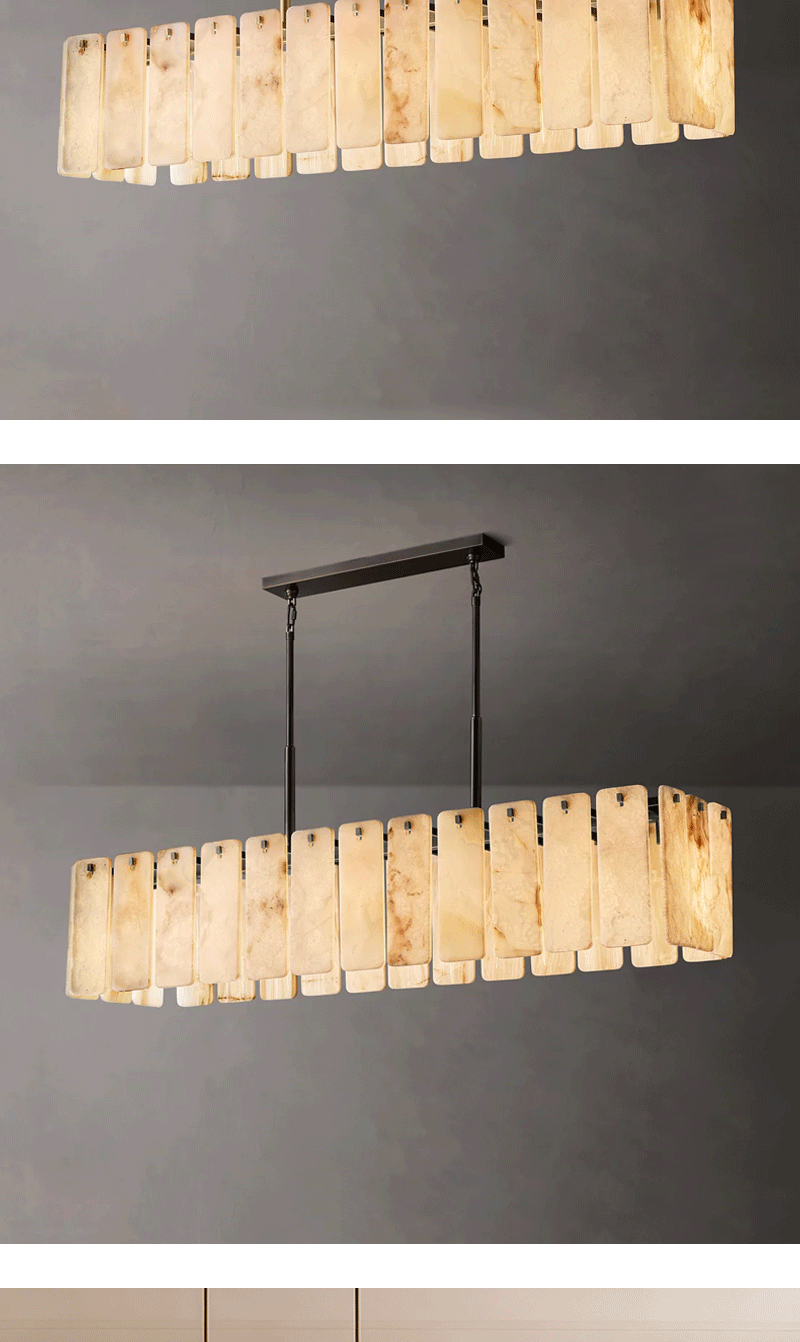 美式轻奢客厅餐厅云石矩形吊灯