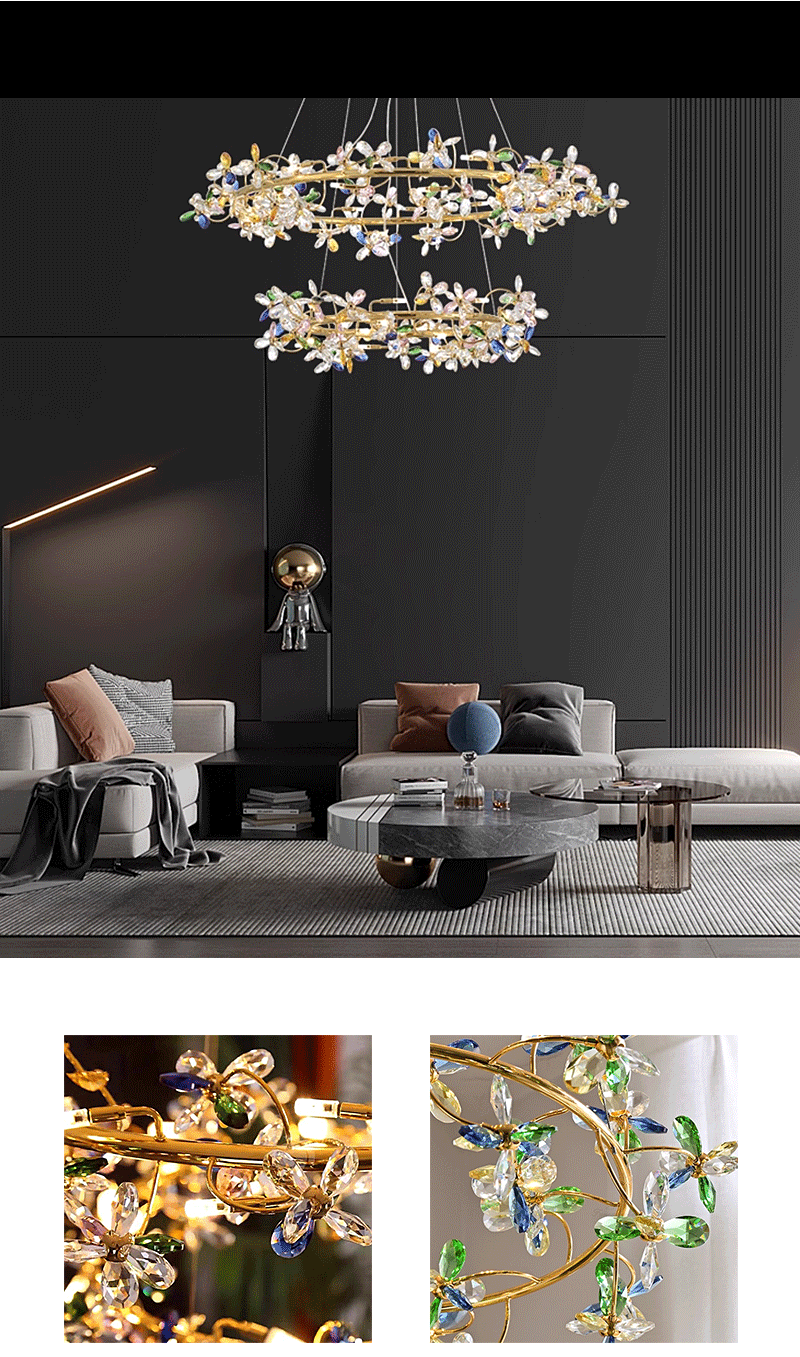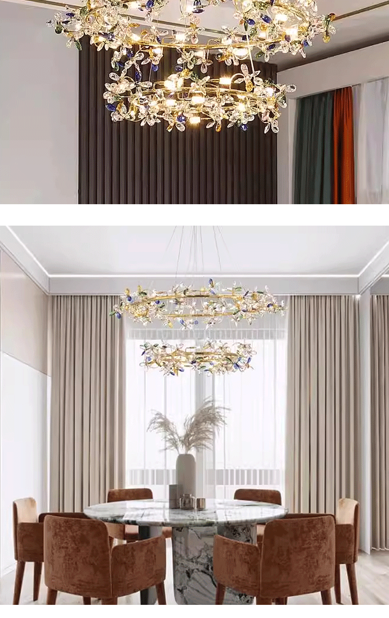 法式轻奢客厅餐厅树枝创意双层树枝水晶吊灯