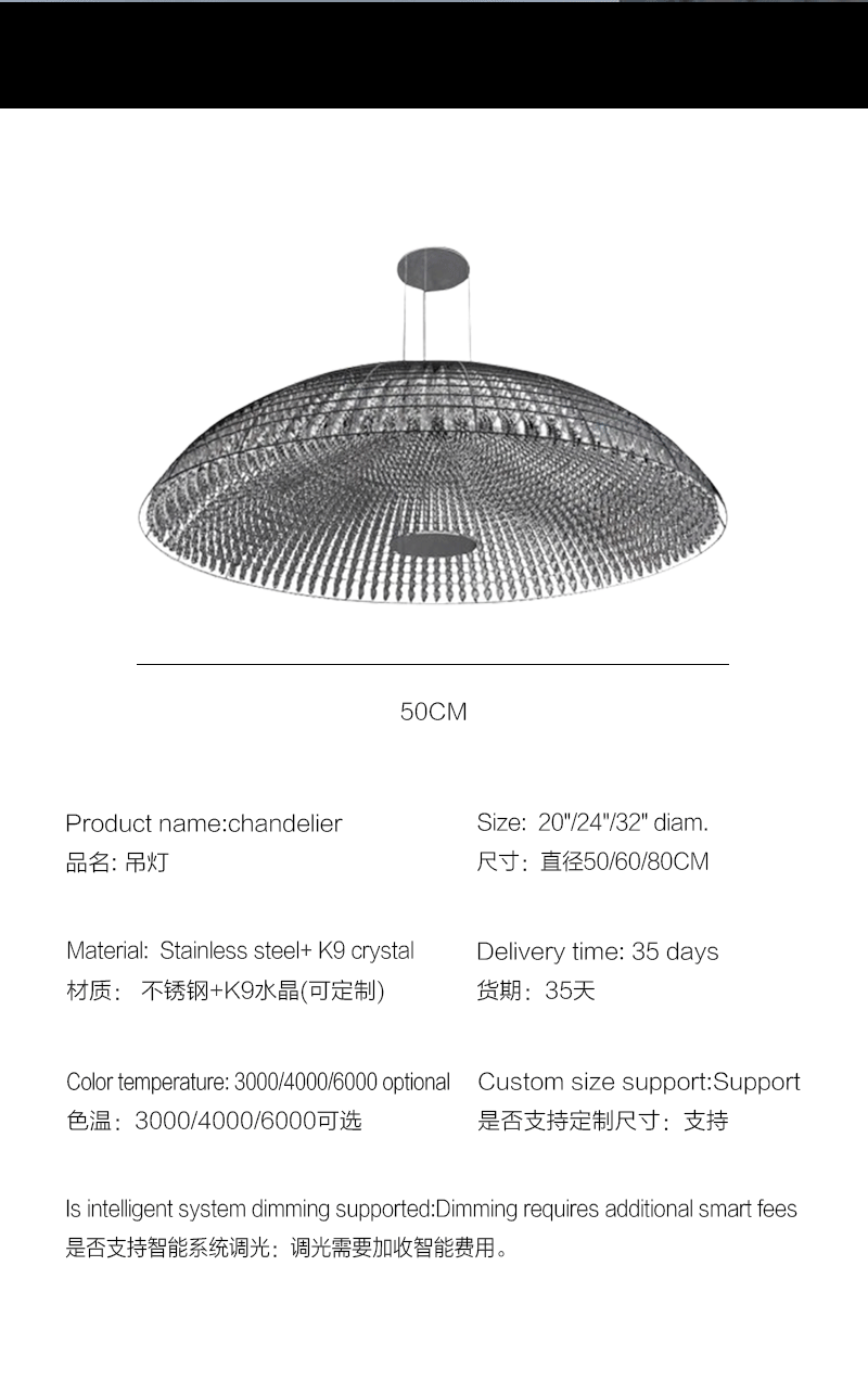 意大利轻奢客厅餐厅进口高端圆形水晶吊灯