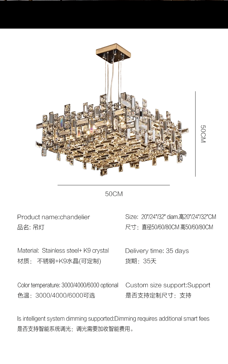 意式轻奢客厅餐厅矩形新款高端水晶吊灯