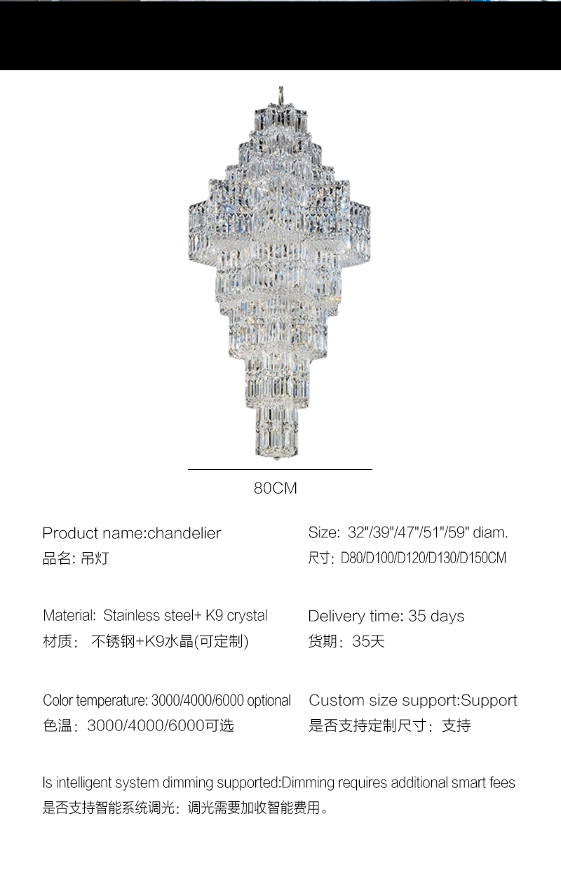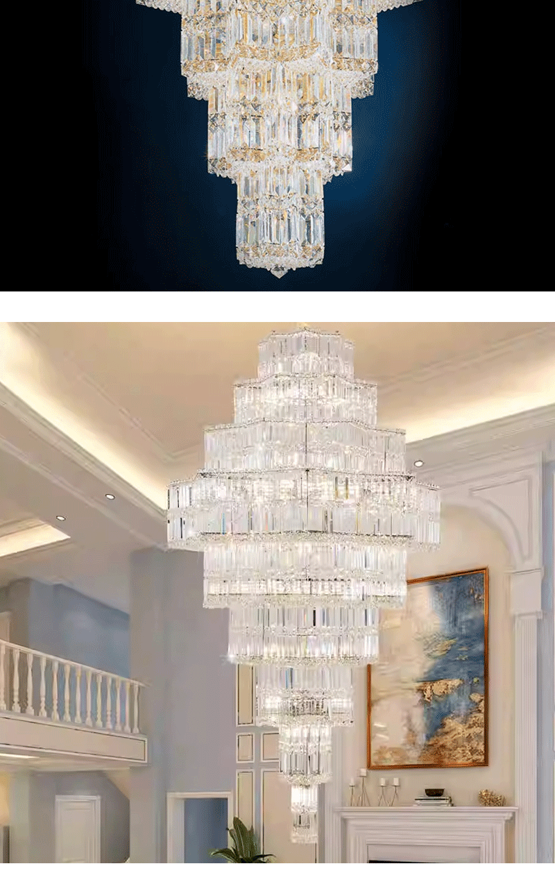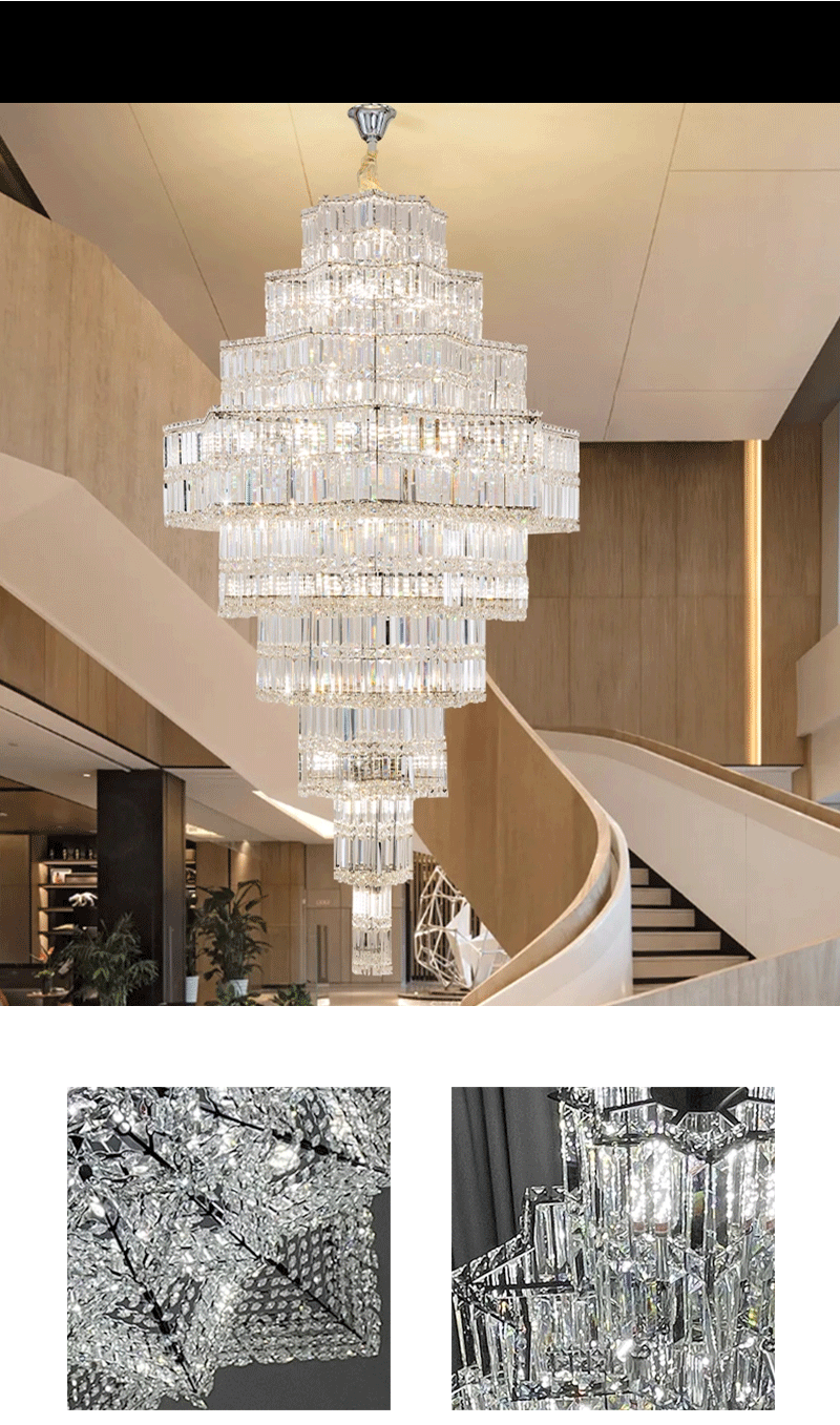 现代轻奢复式楼中空挑空进口水晶吊灯