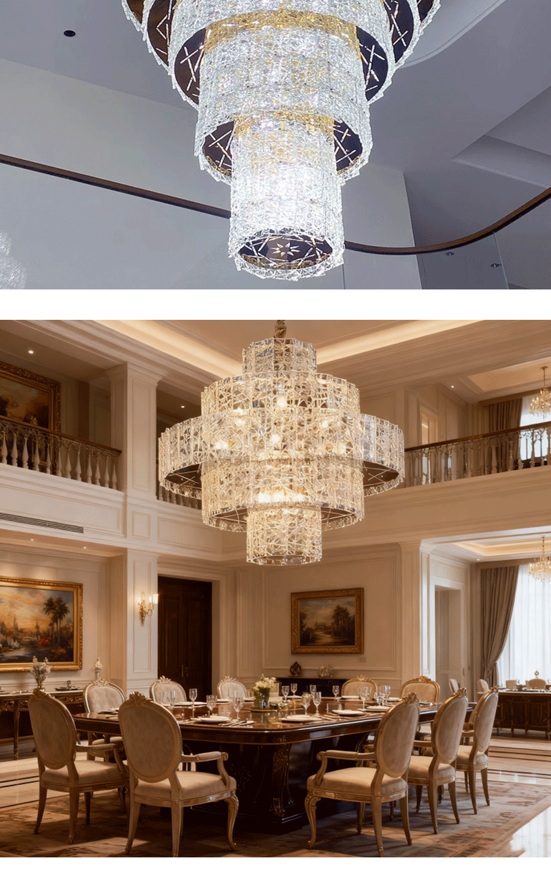 法式轻奢客厅餐厅个性三层水晶吊灯