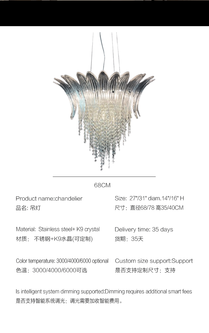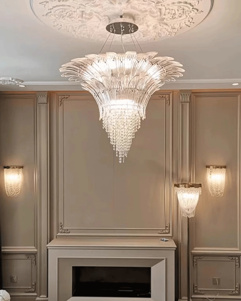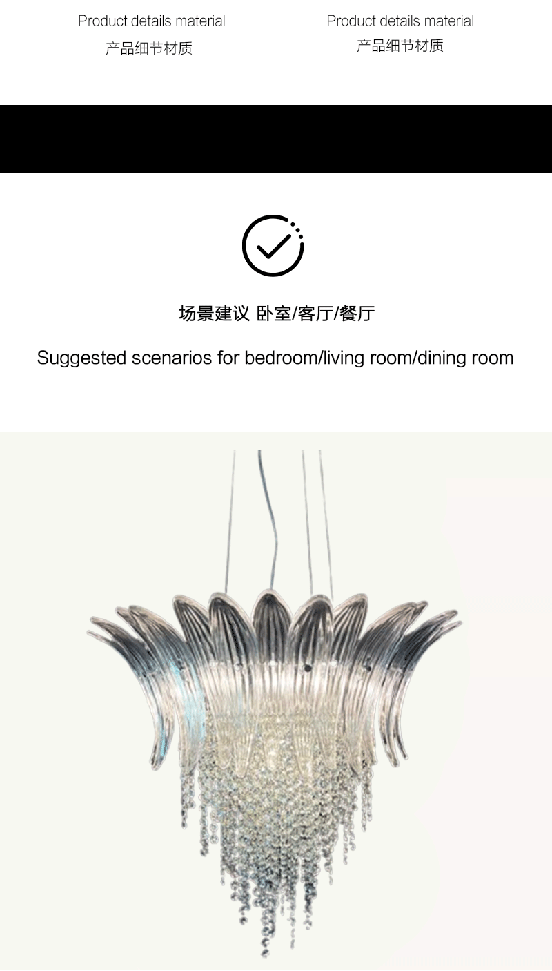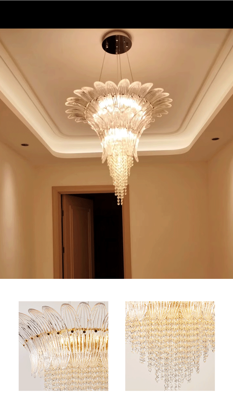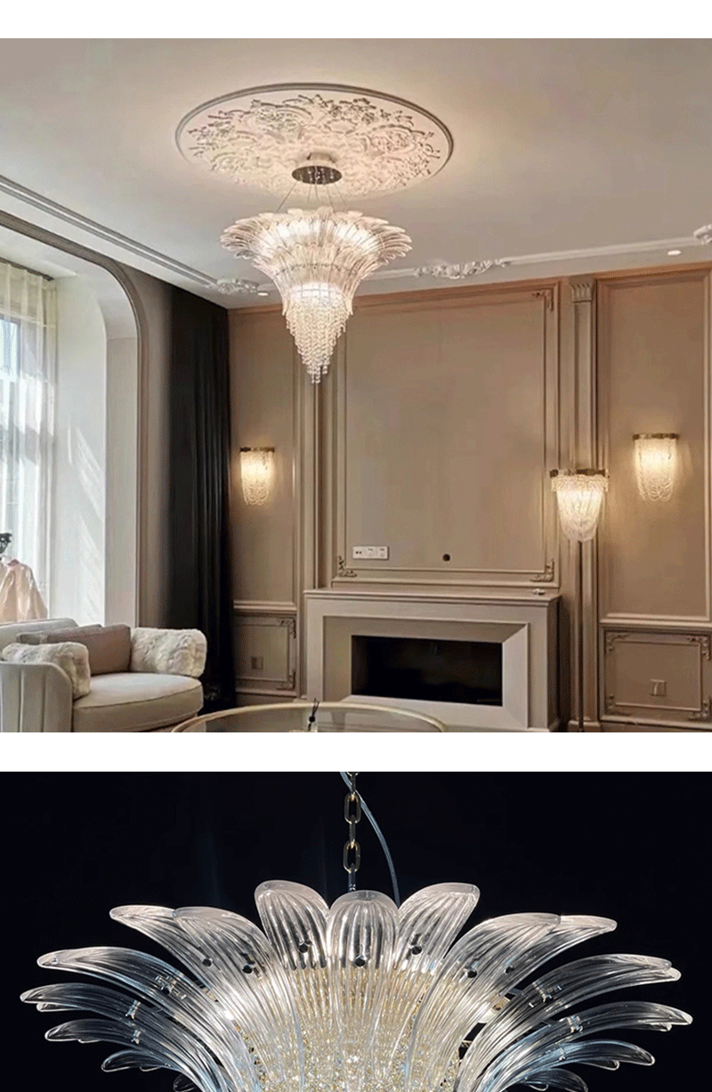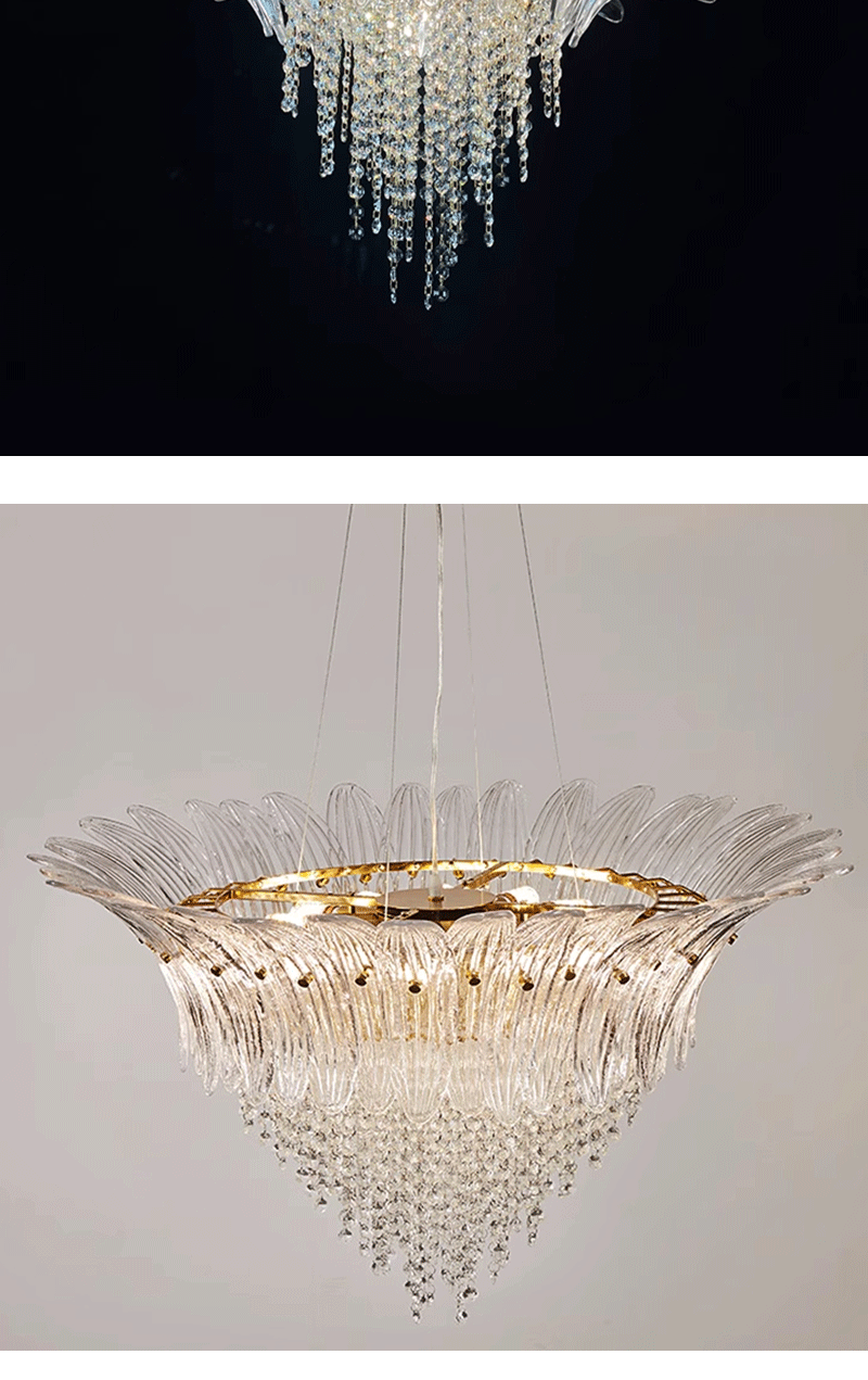 意大利轻奢客厅卧室透明玻璃叶片吊灯