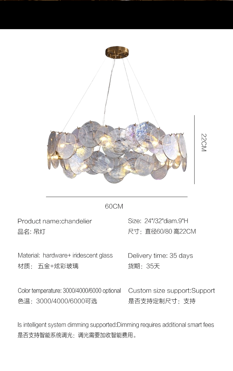 意大利轻奢客厅餐厅七彩玻璃吊灯