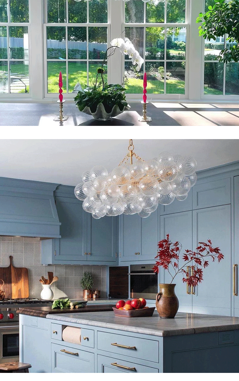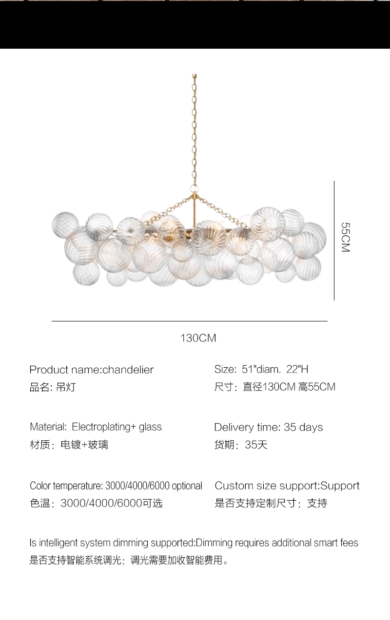 现代美式客厅餐厅漩涡玻璃球吊灯