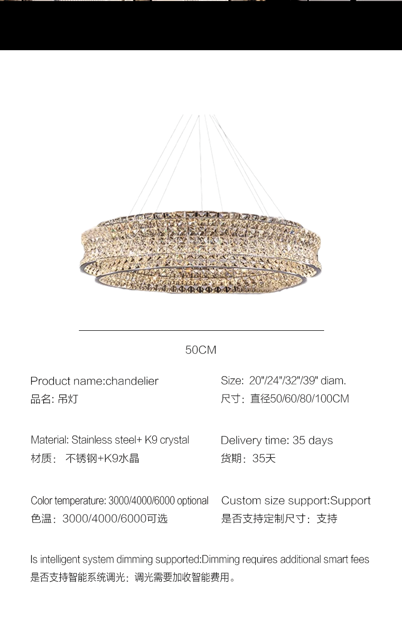 意式轻奢客厅餐厅圆形高档水晶吊灯
