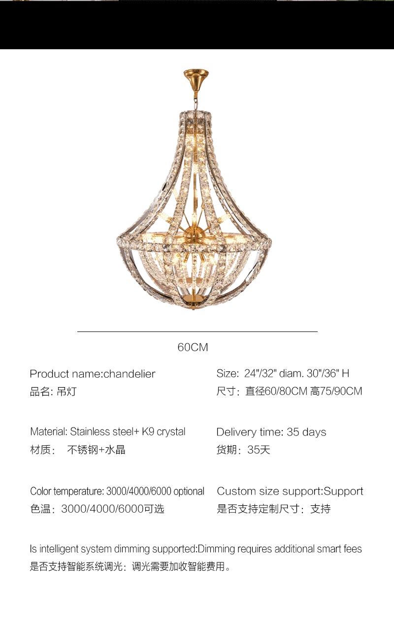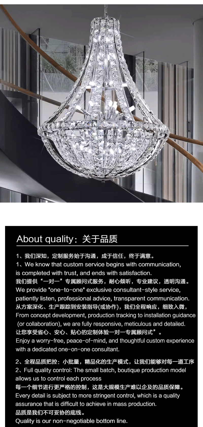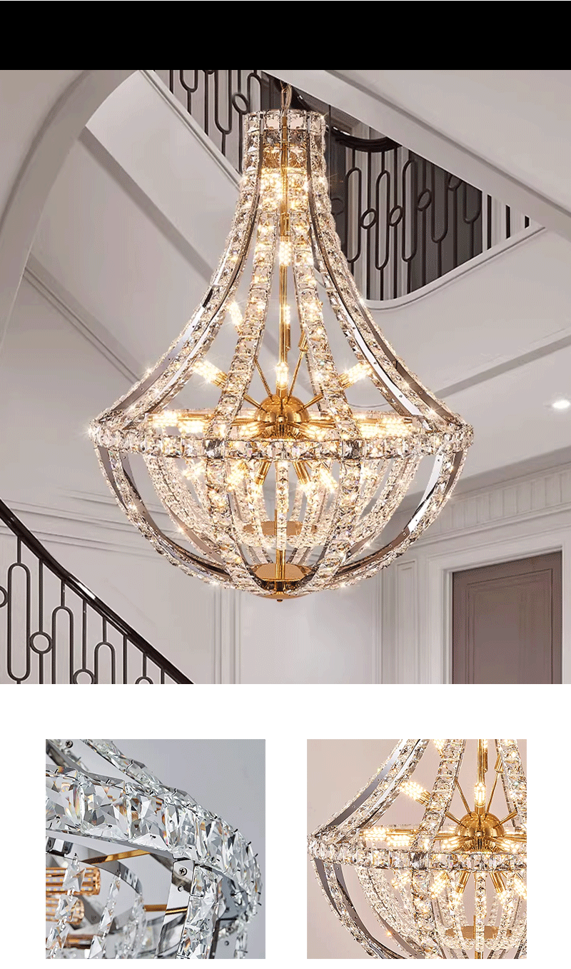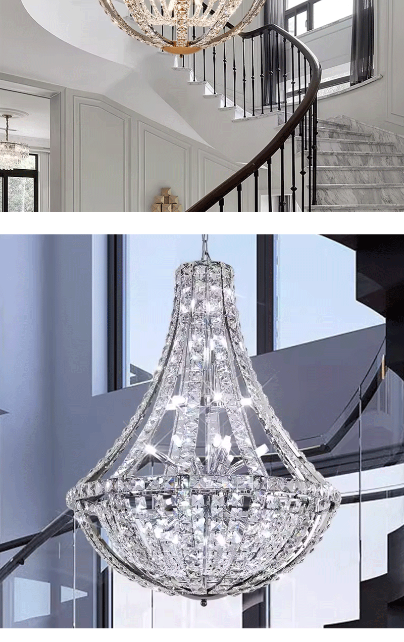 复式楼奢华挑空客厅新款水晶大吊灯