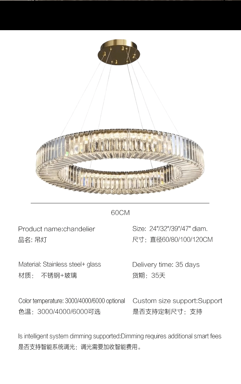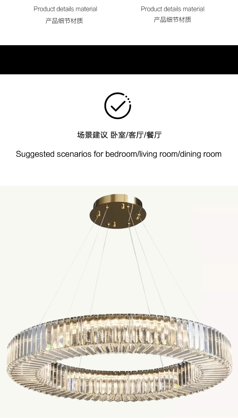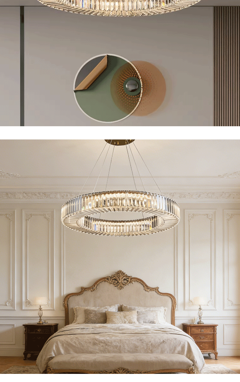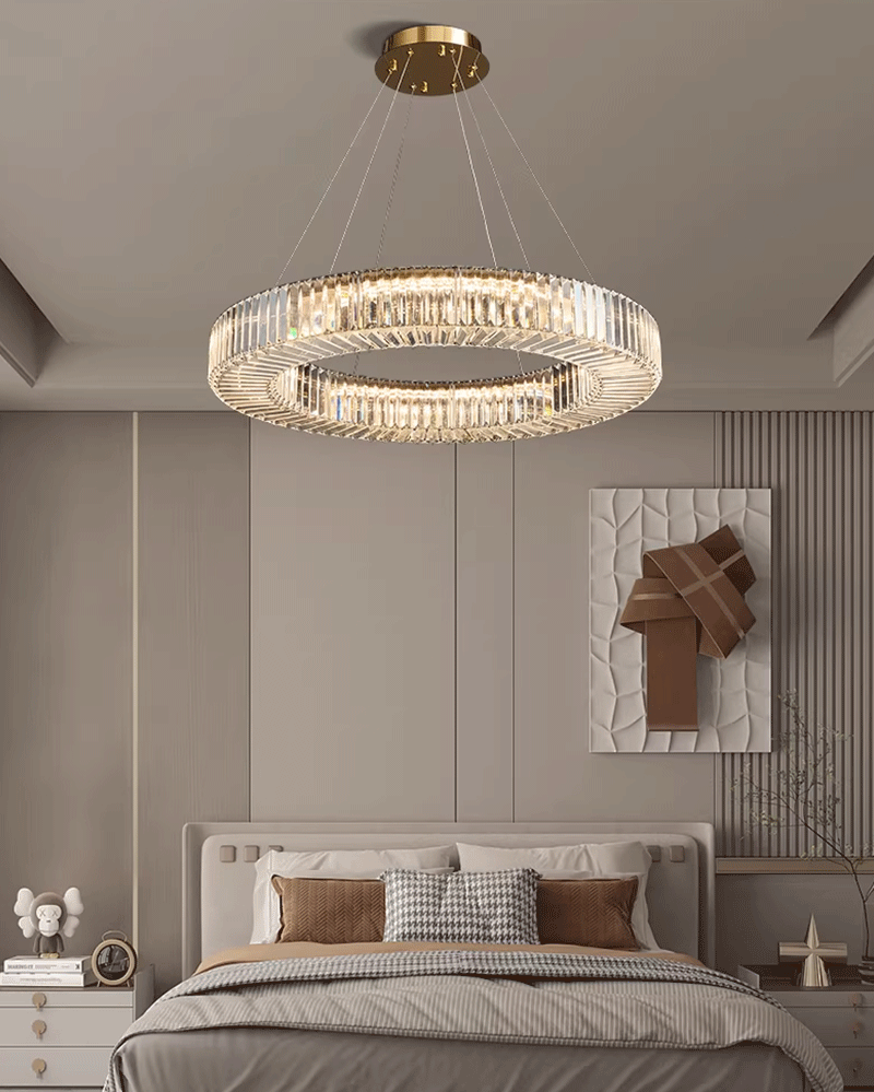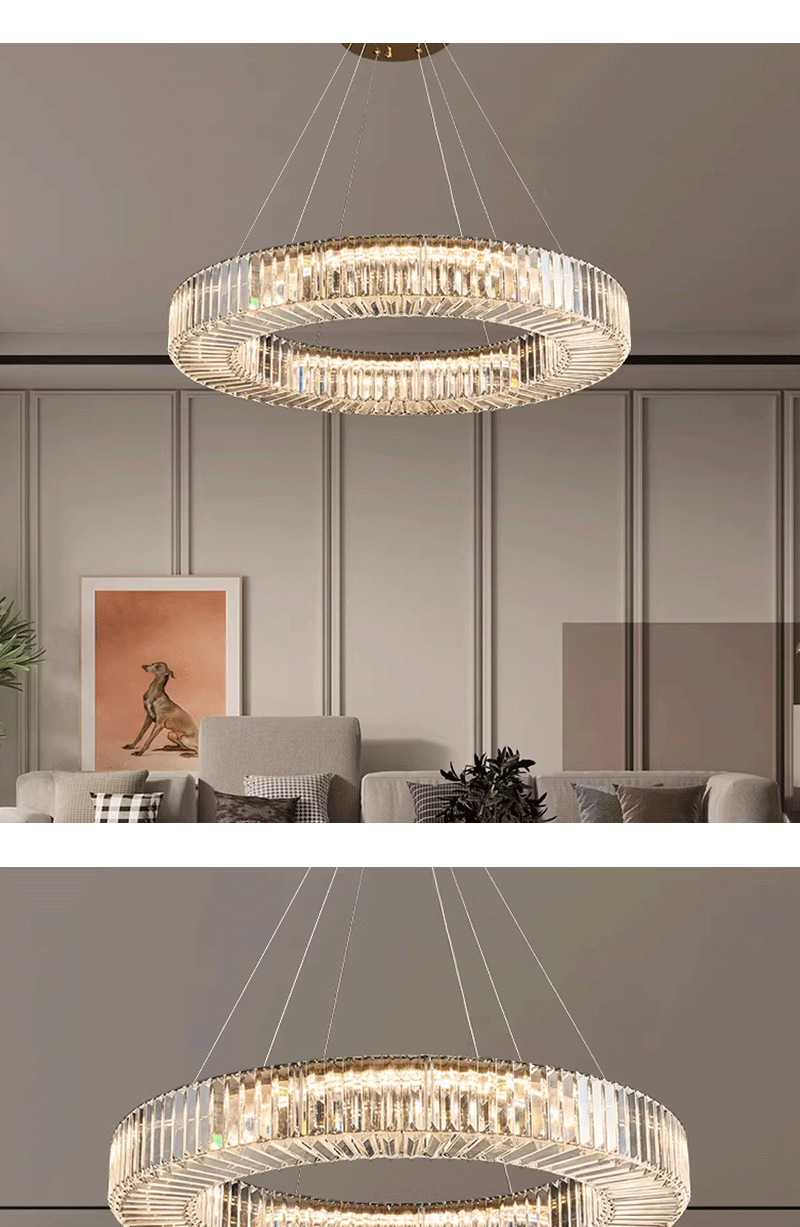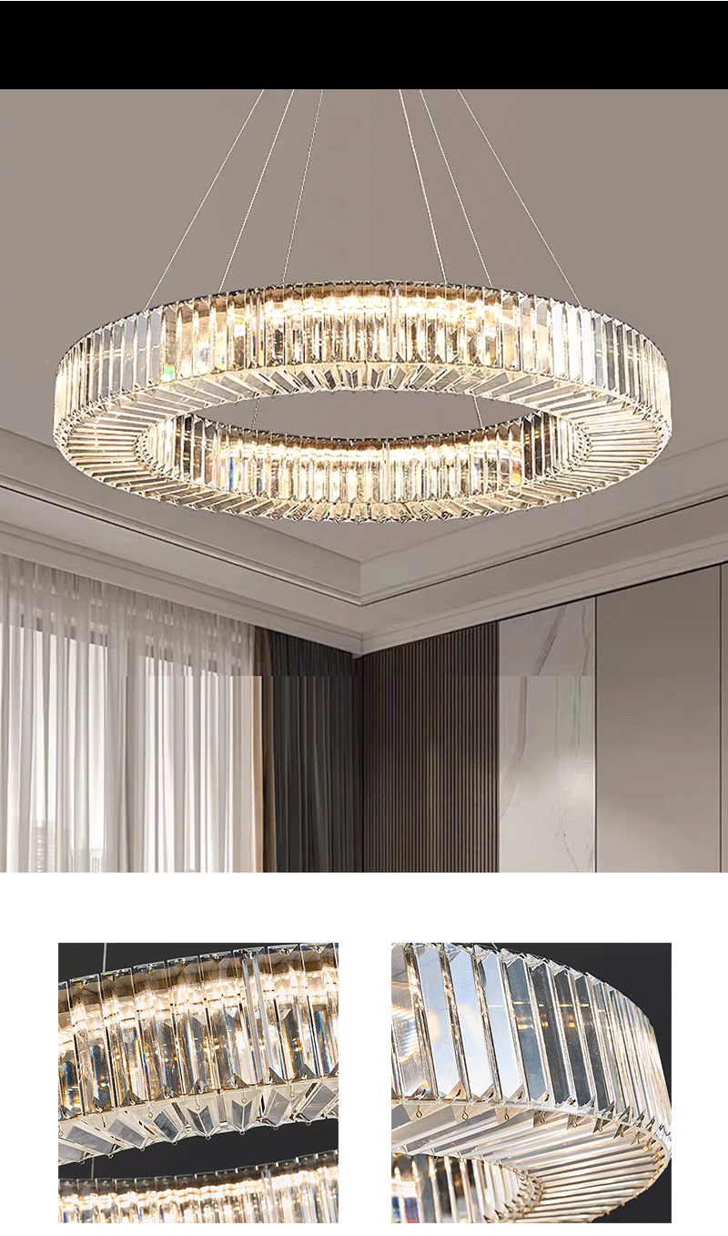 意式轻奢客厅主卧极简圆环Q形水晶吊灯