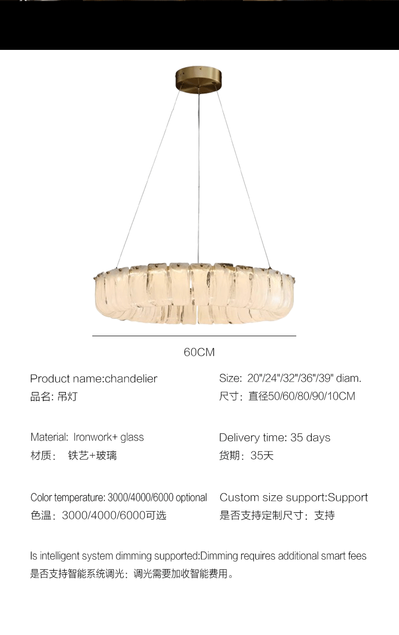 意式轻奢客厅餐厅圆形高端玻璃吊灯