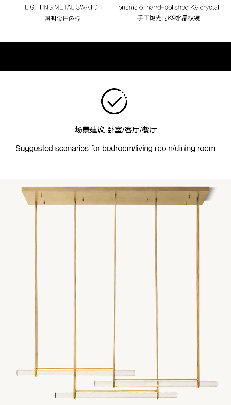 美式轻奢客厅餐厅三重棒水晶吊灯