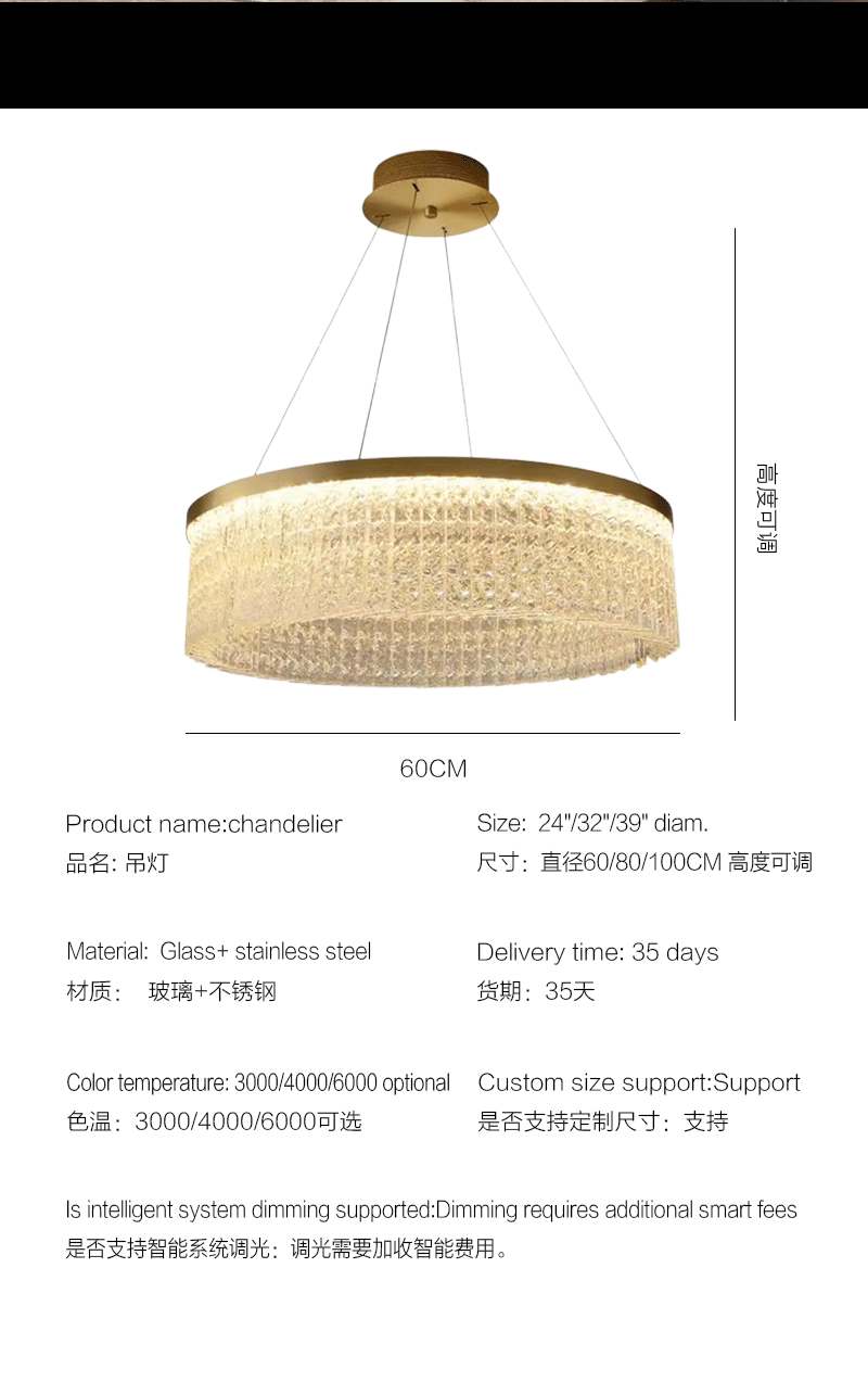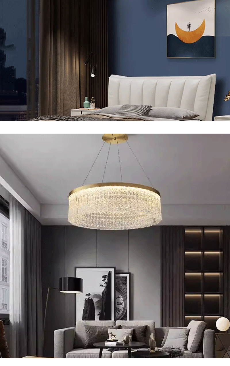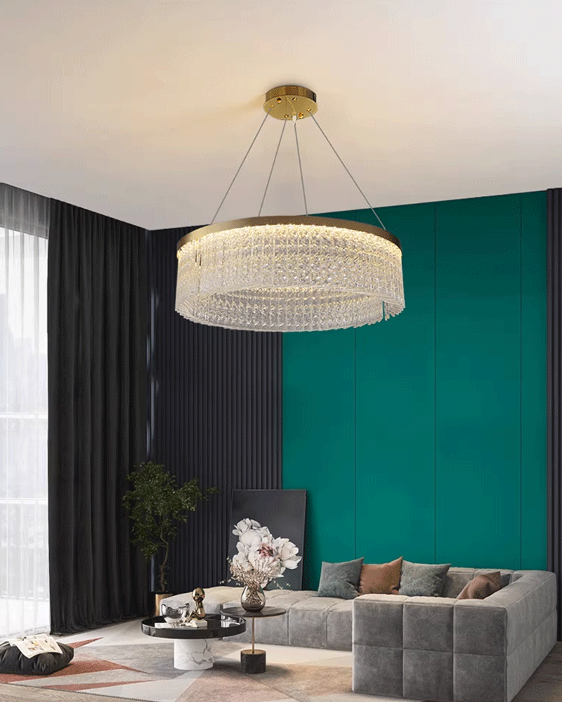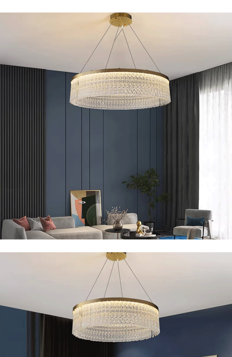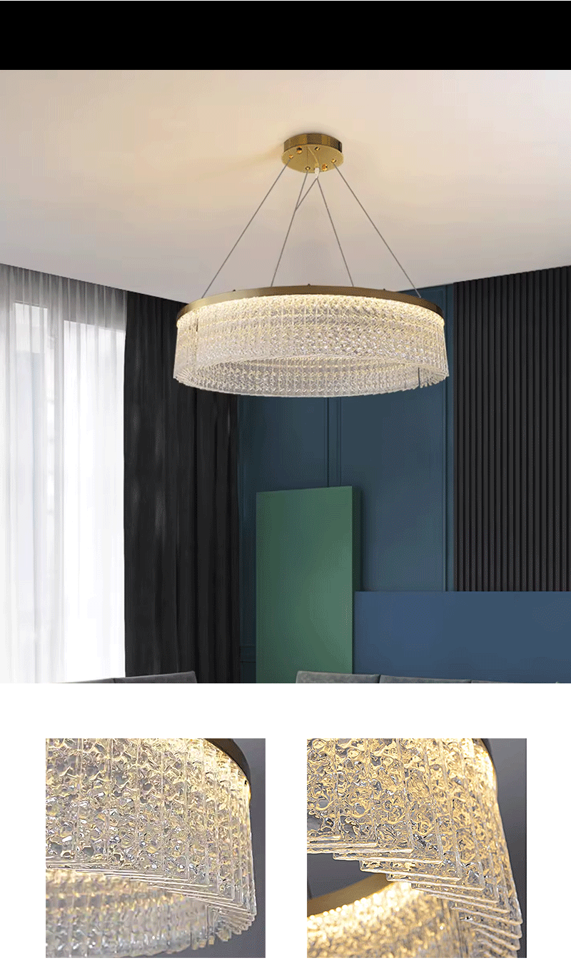 新款轻奢客厅餐厅圆形创意水纹水晶吊灯