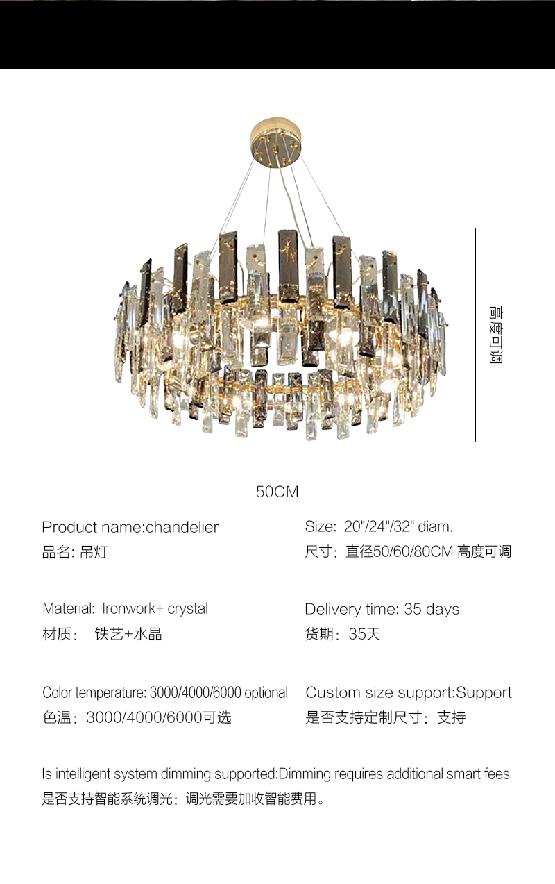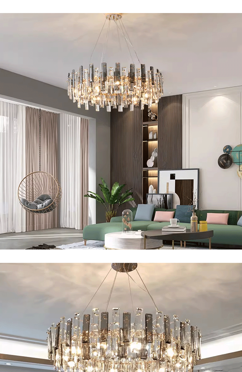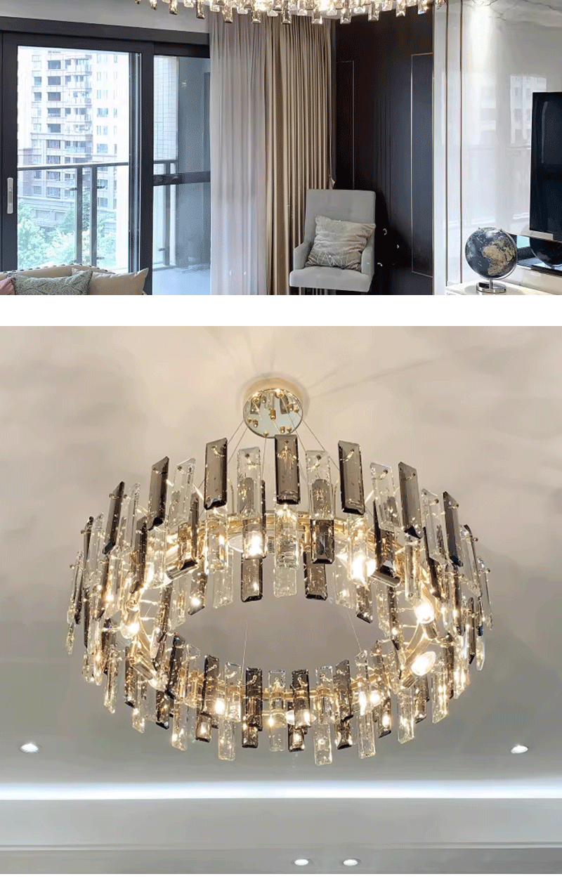 新款轻奢客厅餐厅圆形水晶玻璃吊灯