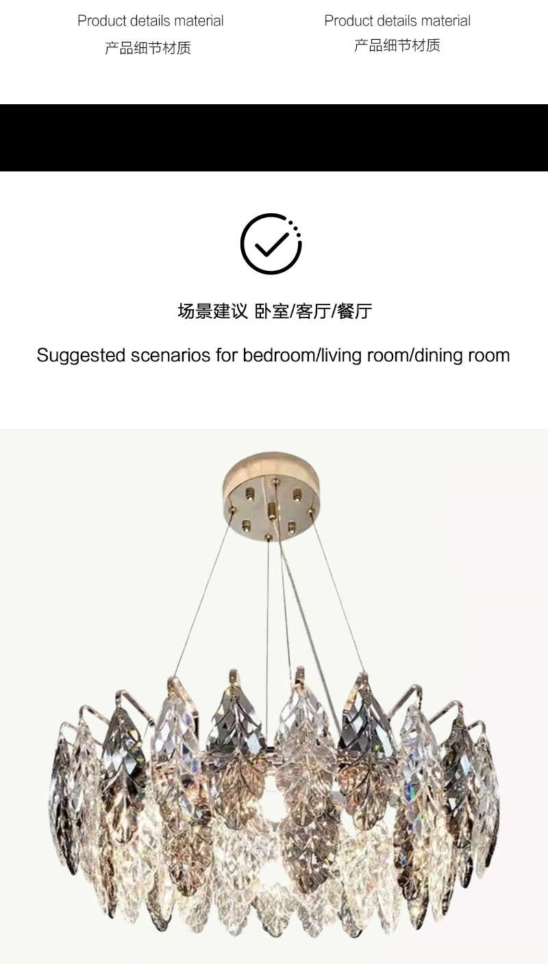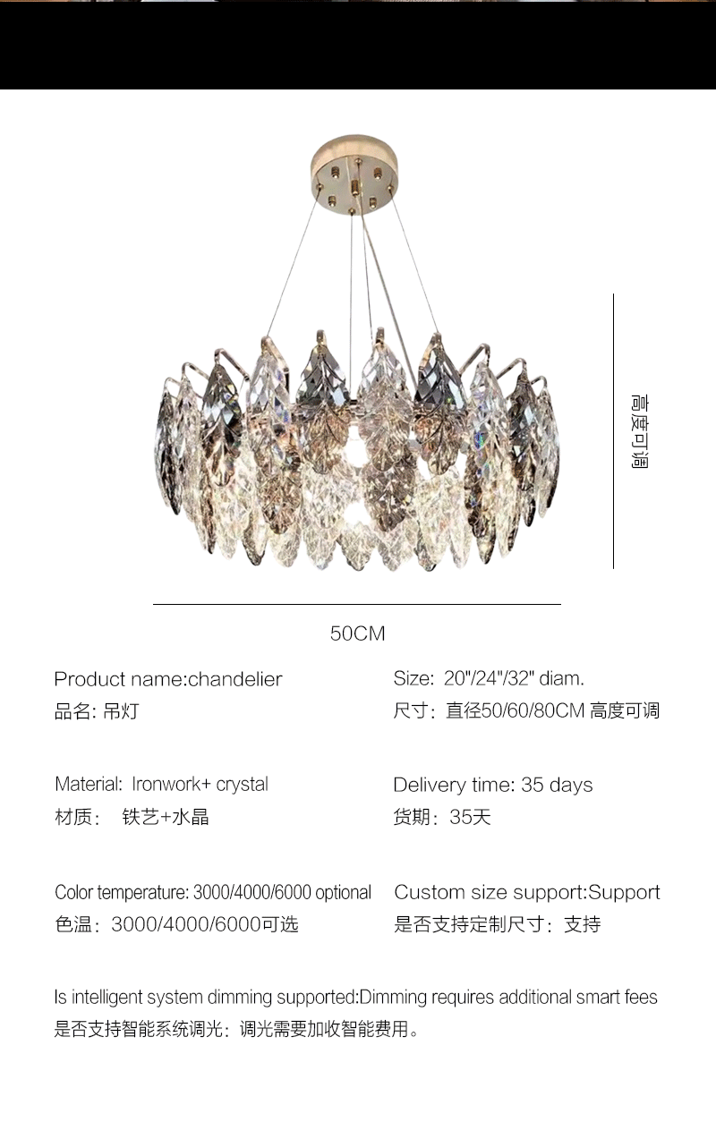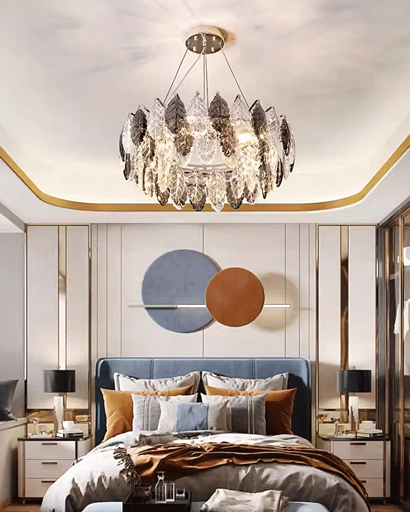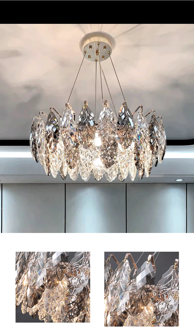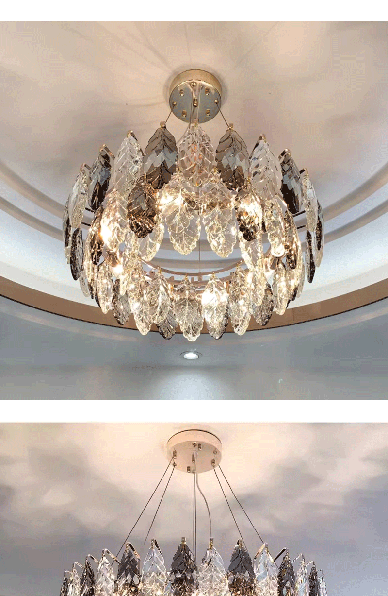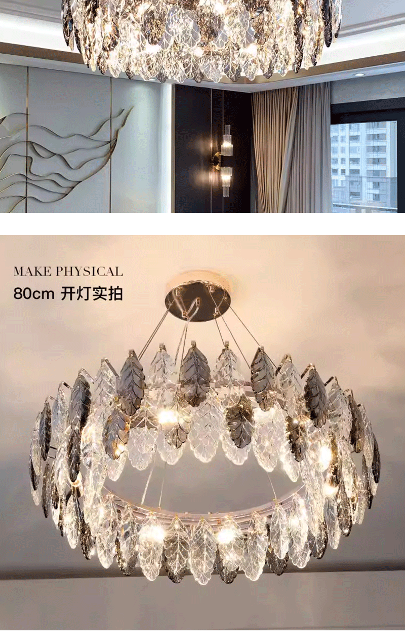 意式轻奢客厅圆桌叶子艺术水晶吊灯