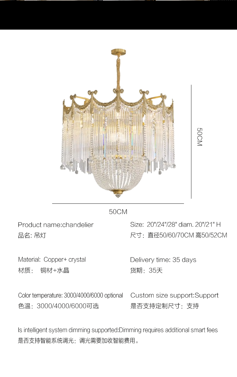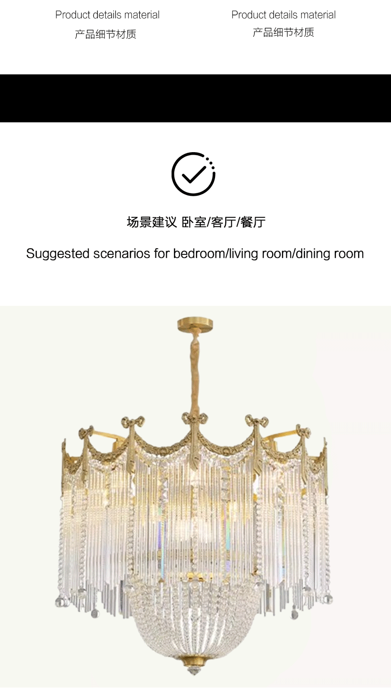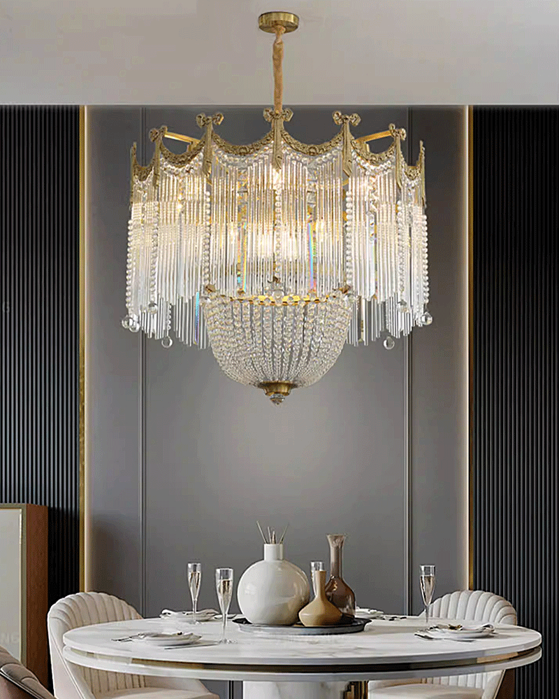 法式轻奢客厅餐厅全铜水晶流苏吊灯
