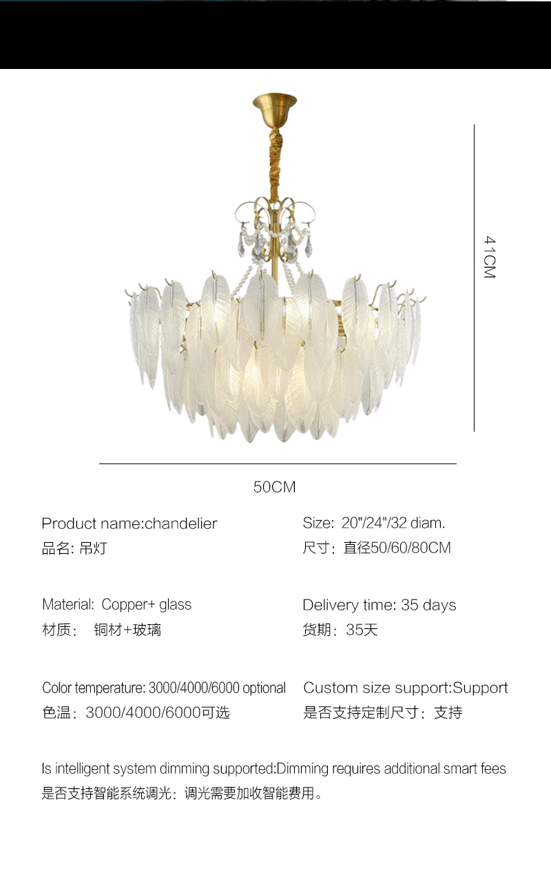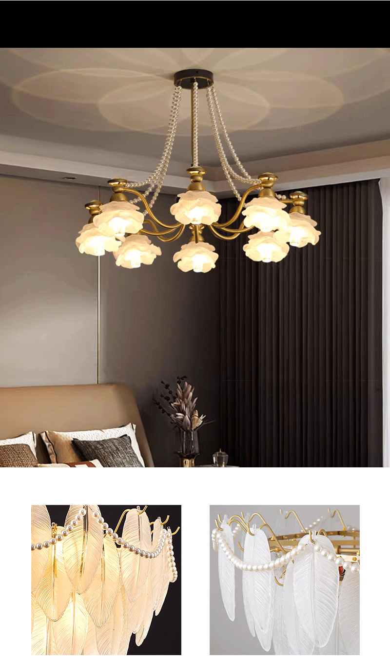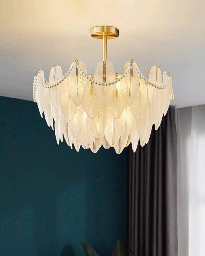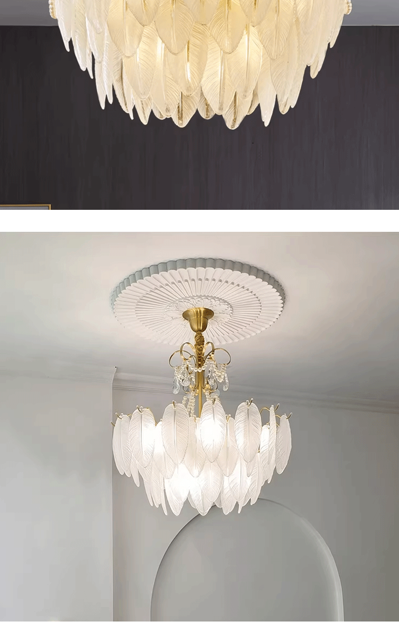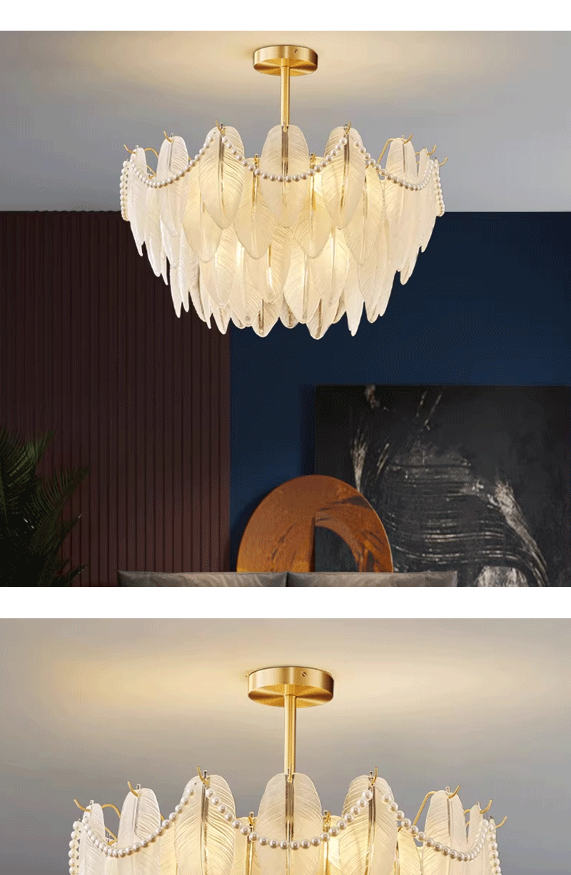 法式轻奢客厅餐厅创意羽毛玻璃吊灯