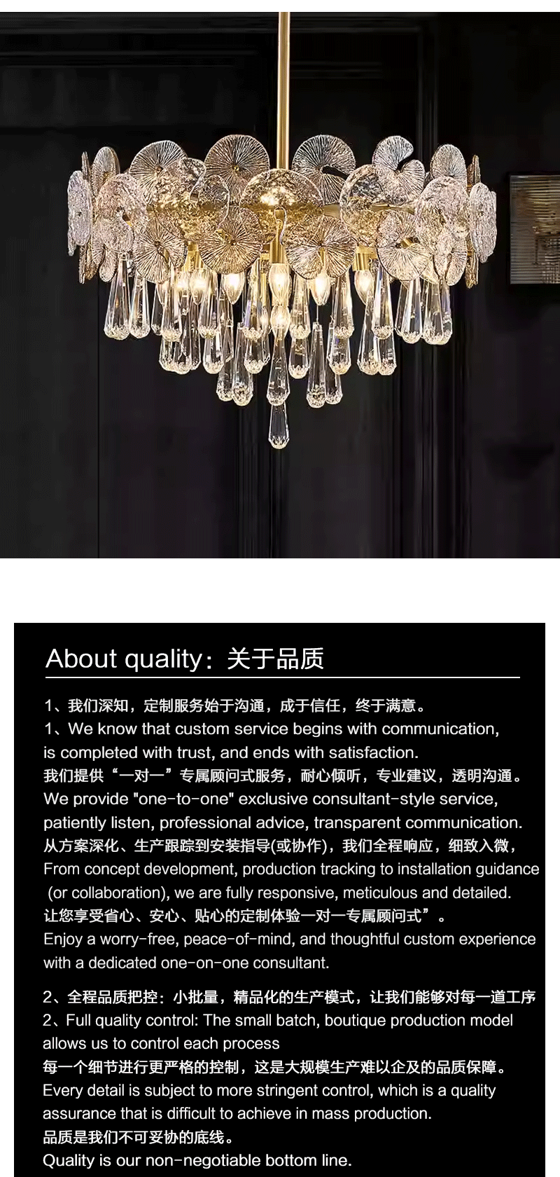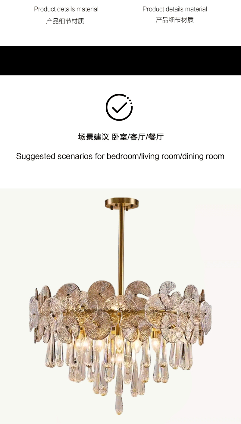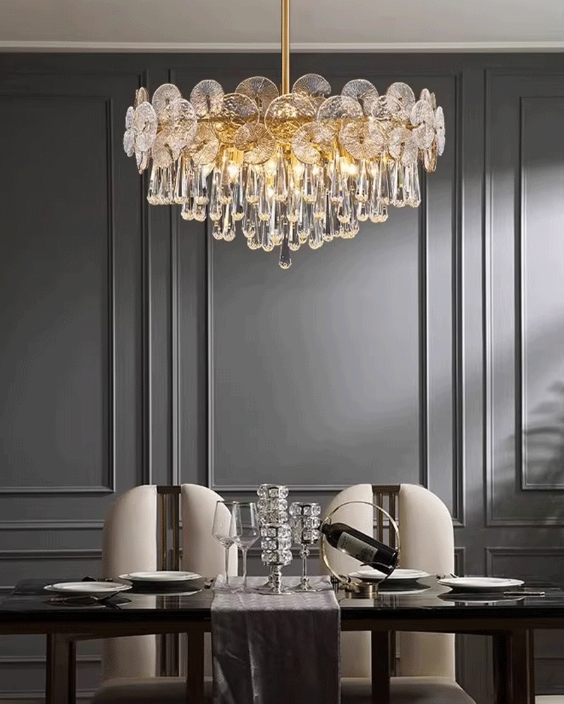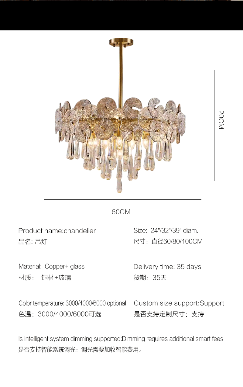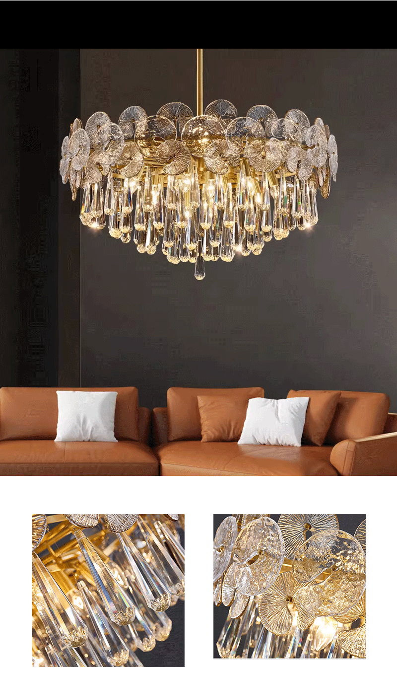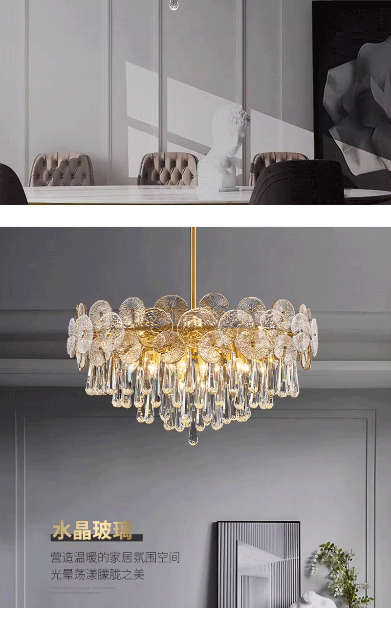 法式轻奢客厅餐厅全铜荷叶玻璃吊灯
