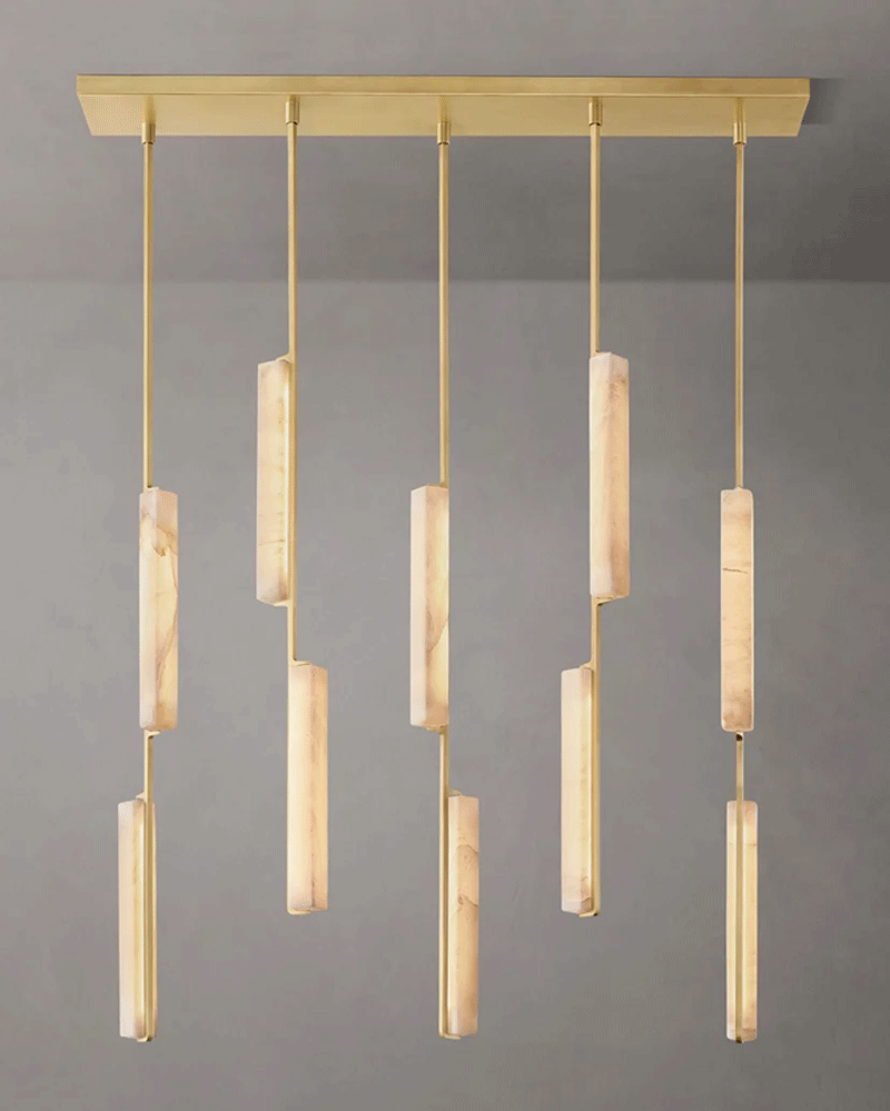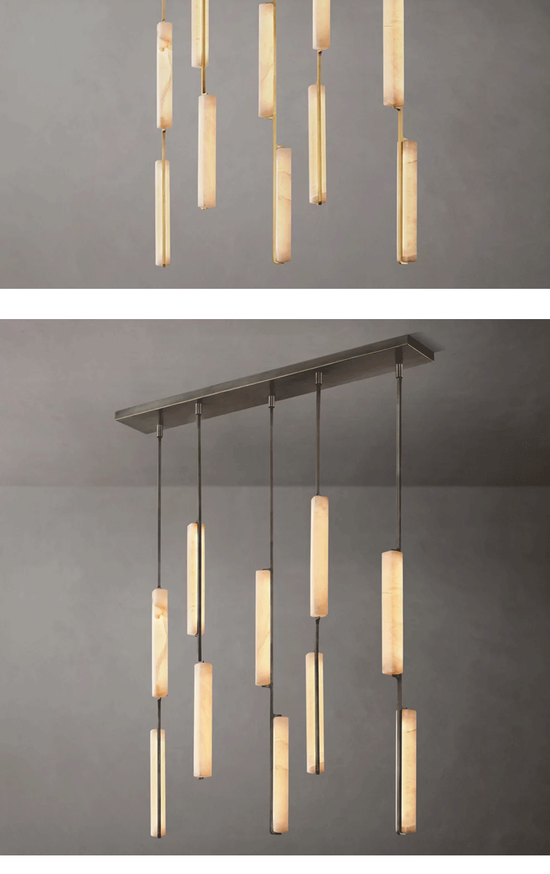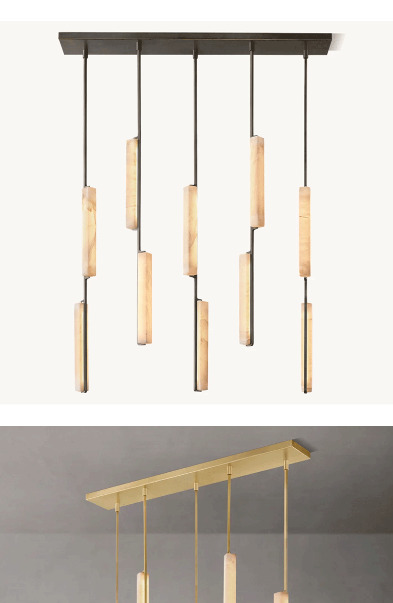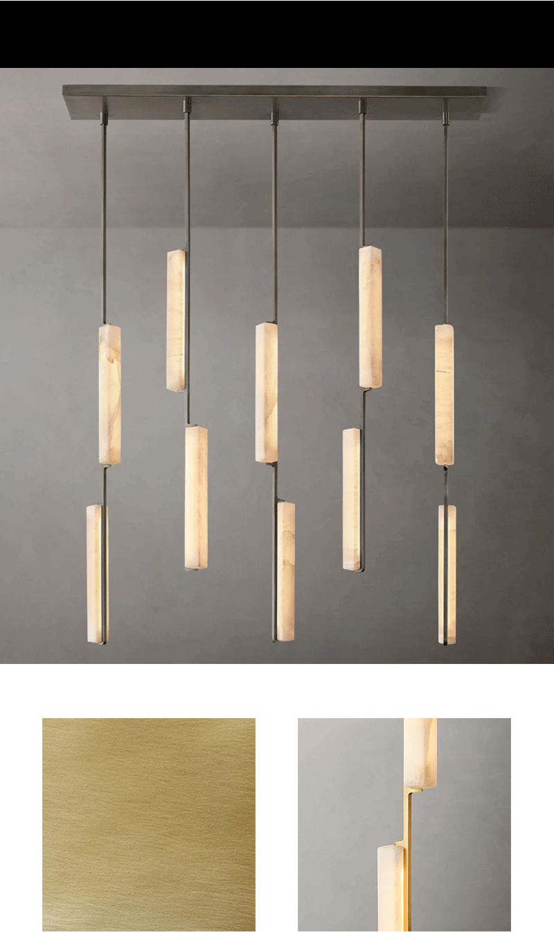 美式轻奢客厅餐厅线性云石吊灯