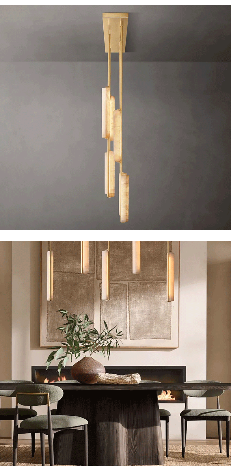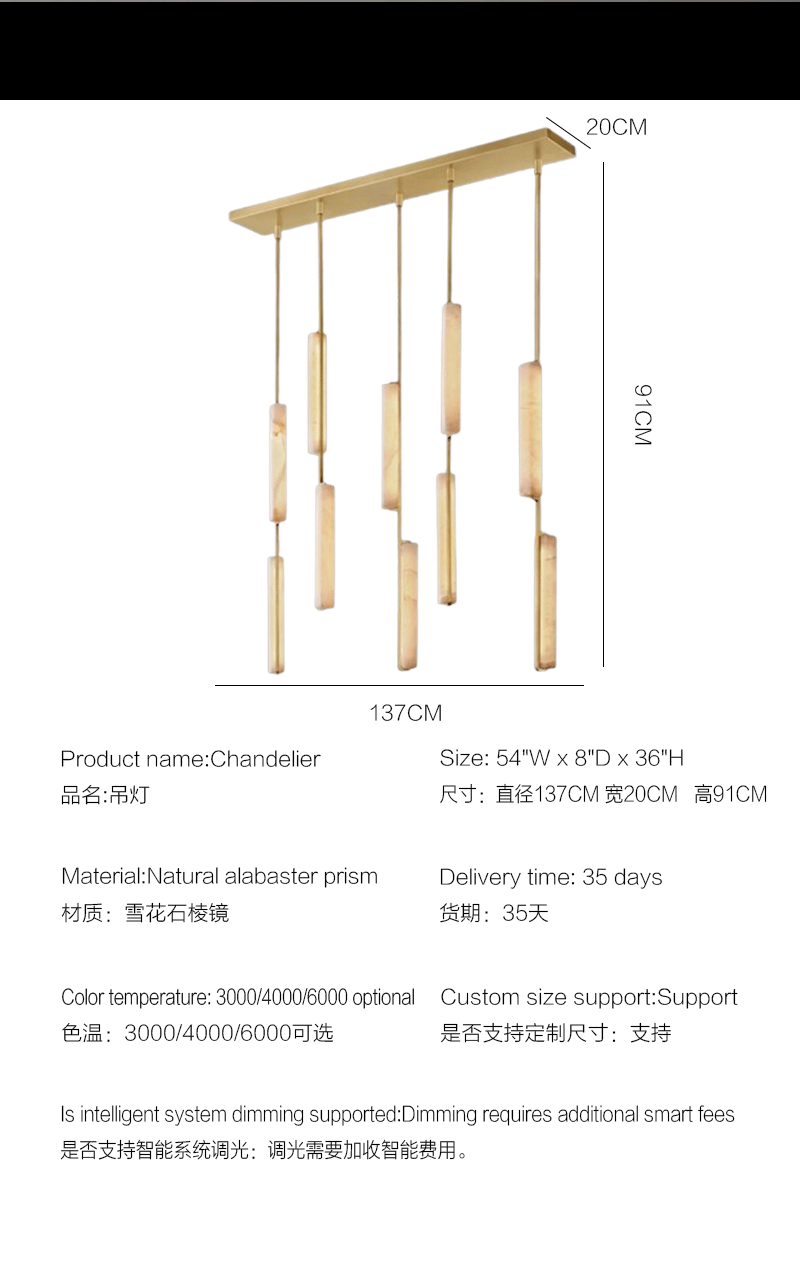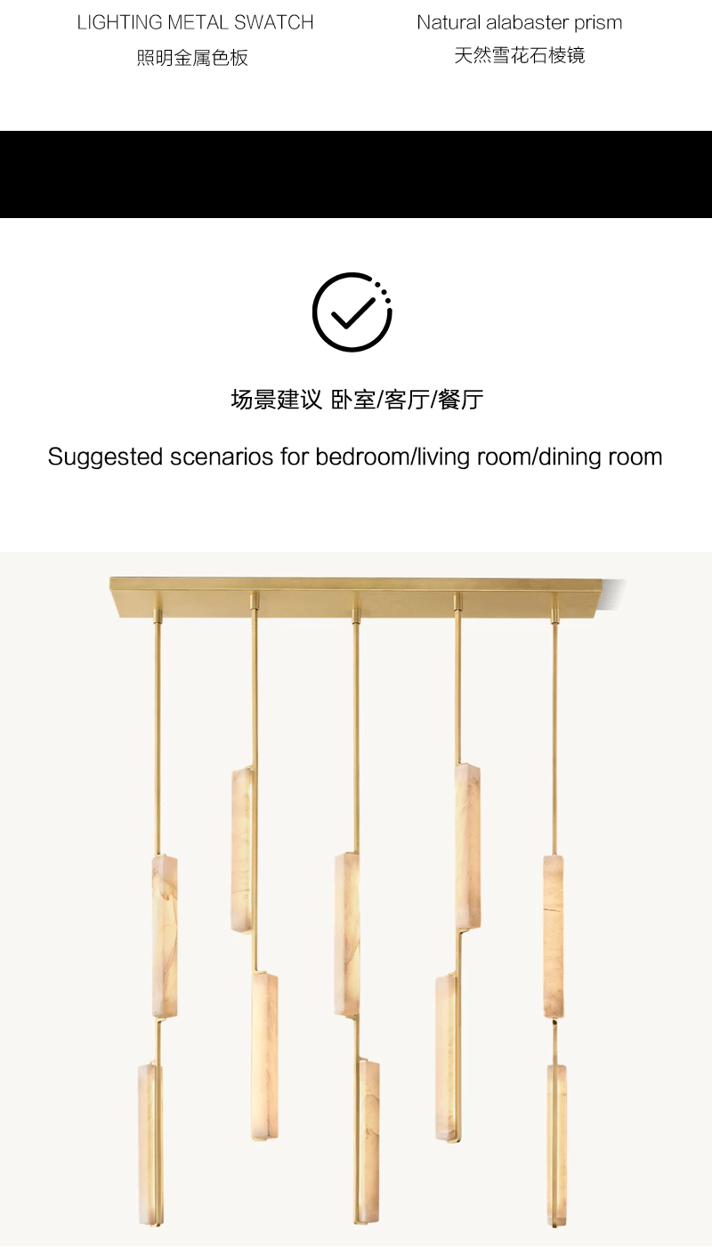 美式轻奢客厅餐厅线性云石吊灯