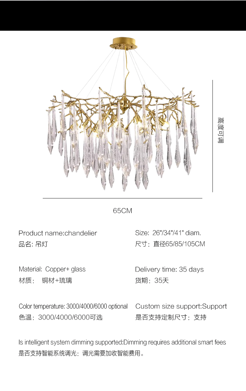 美式轻奢客厅餐厅树杈枝型水晶吊灯