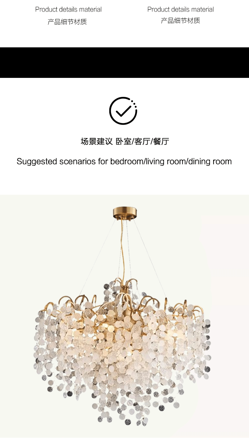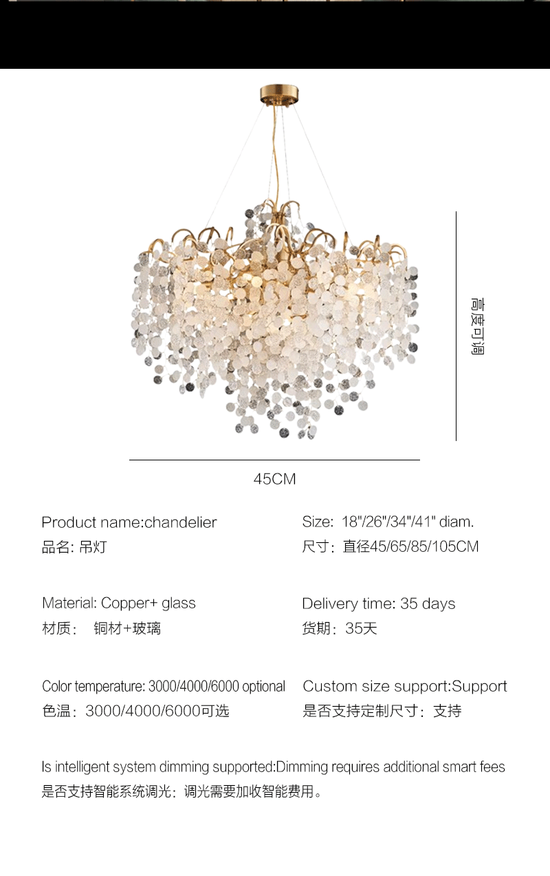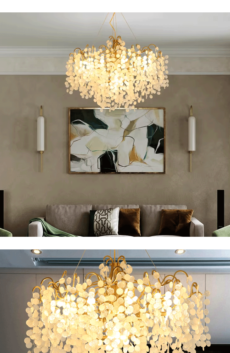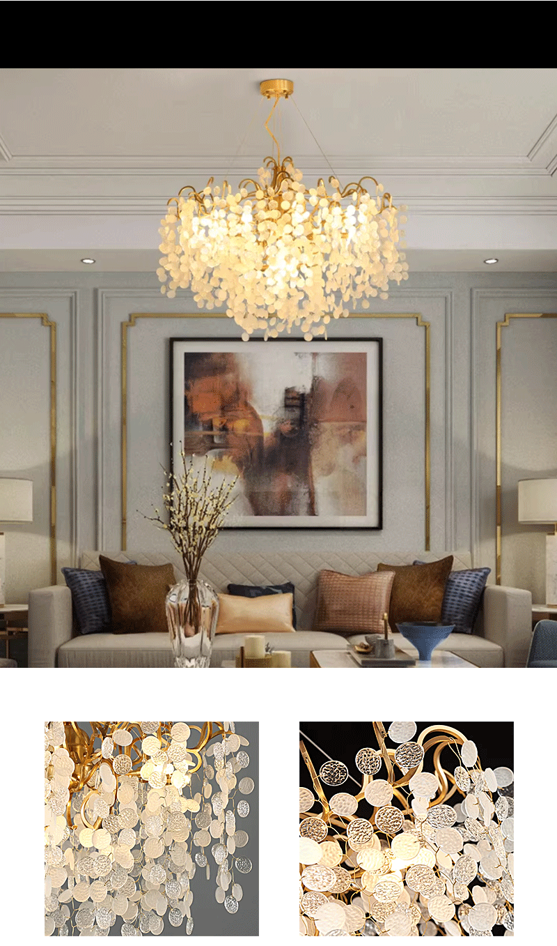 法式轻奢客厅餐厅全铜枝型铝材玻璃吊灯