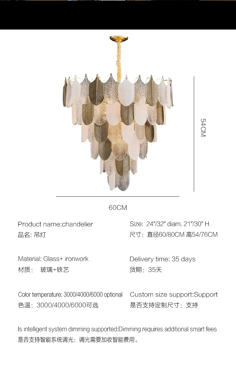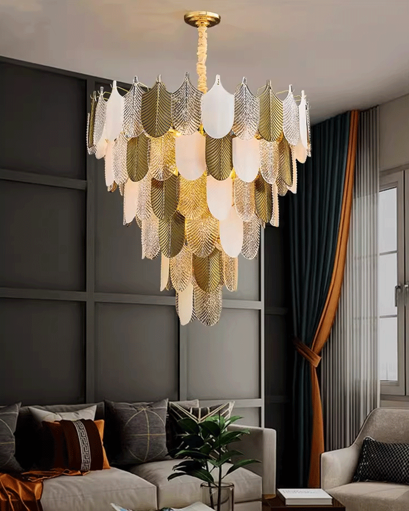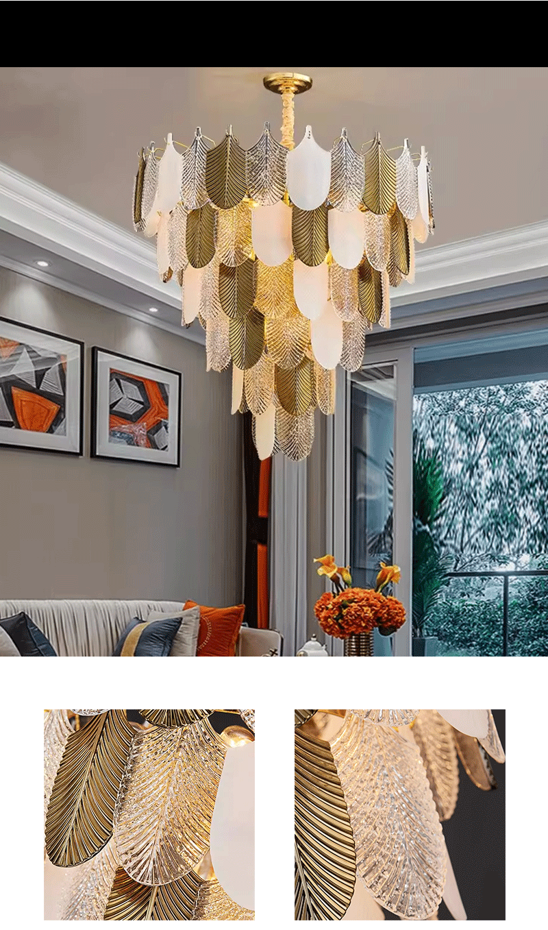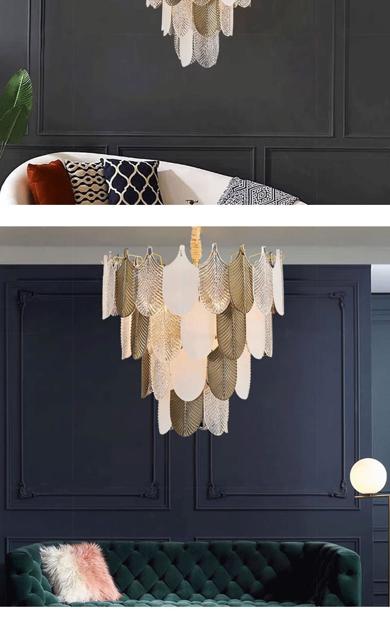 新款轻奢客厅餐厅大气叶片玻璃吊灯
