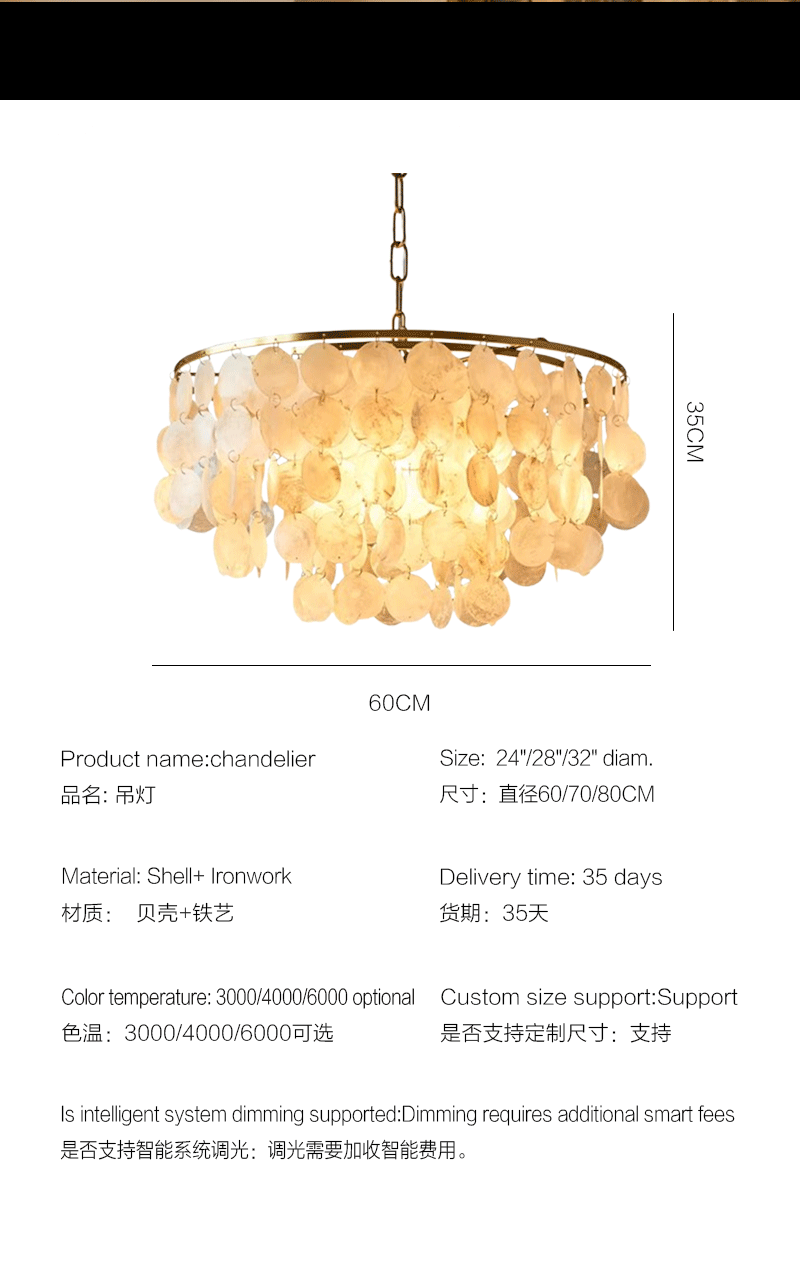 北欧轻奢客厅餐厅贝壳风铃吊灯