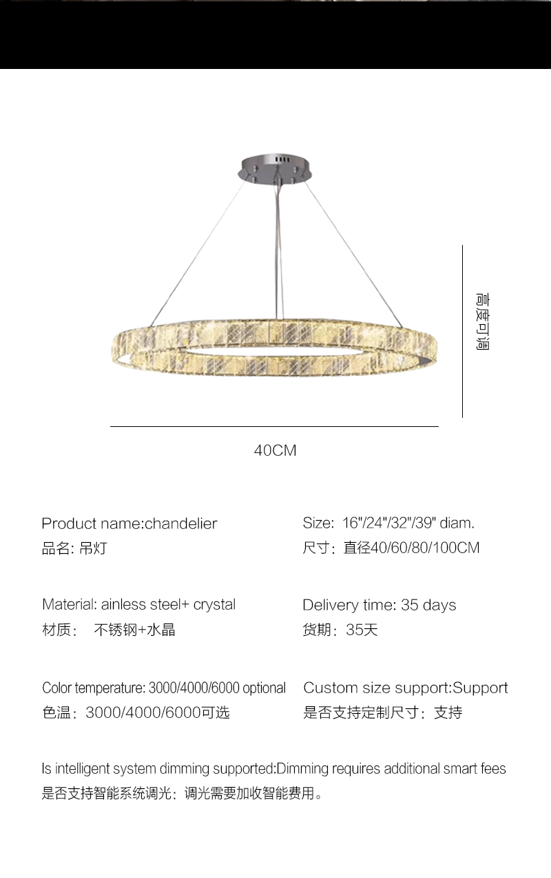 意式轻奢客厅餐厅圆环冰川水晶吊灯