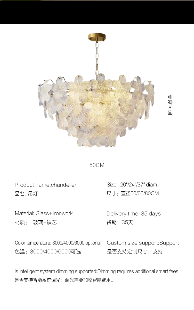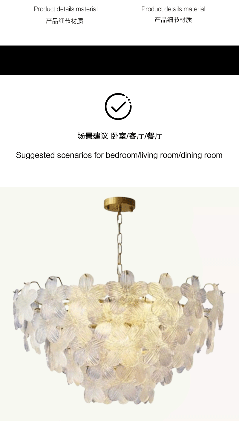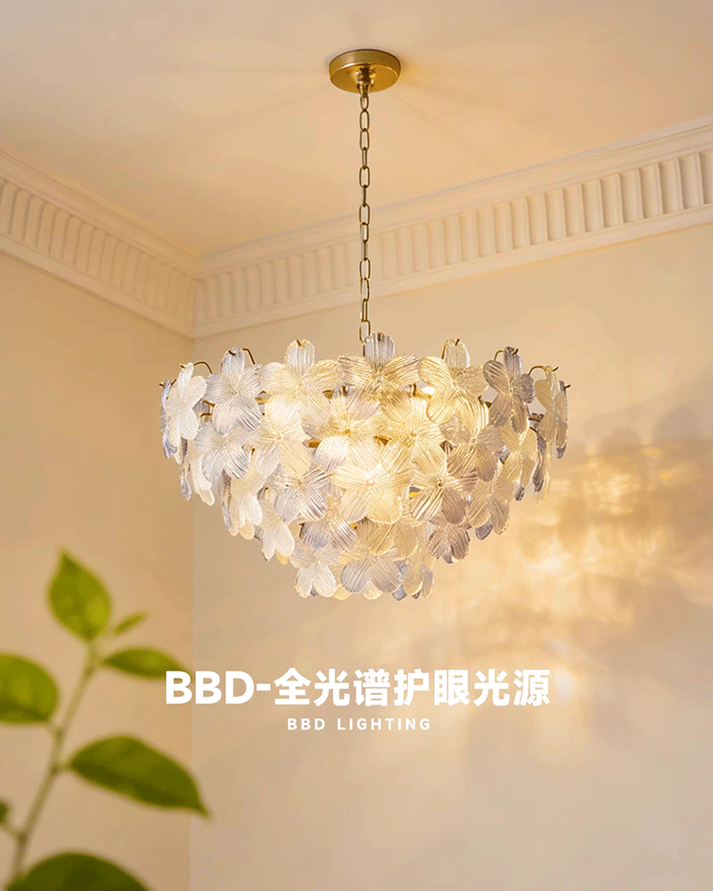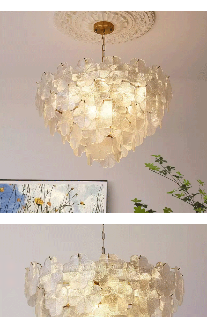 法式轻奢客厅餐厅花瓣玻璃五叶草吊灯