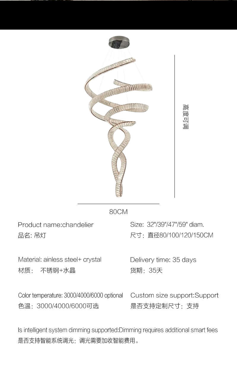 意式轻奢客厅餐厅艺术飘带水晶吊灯