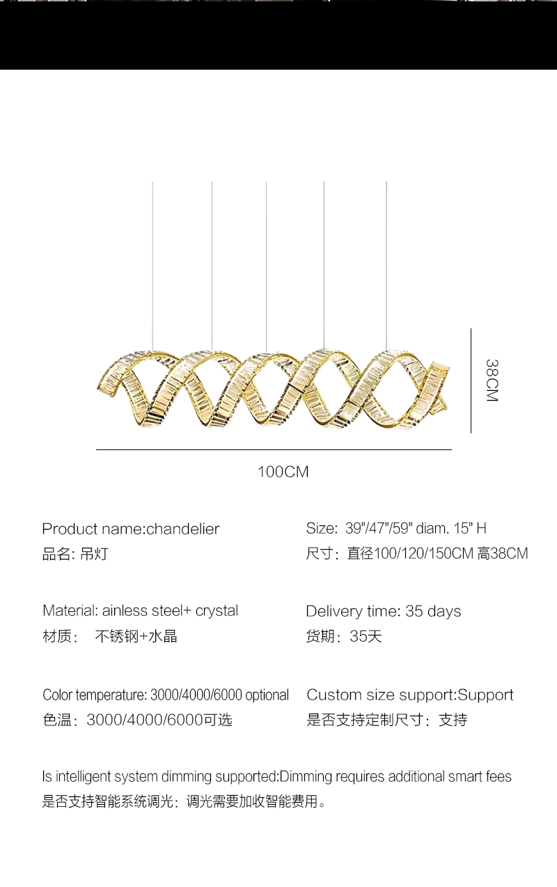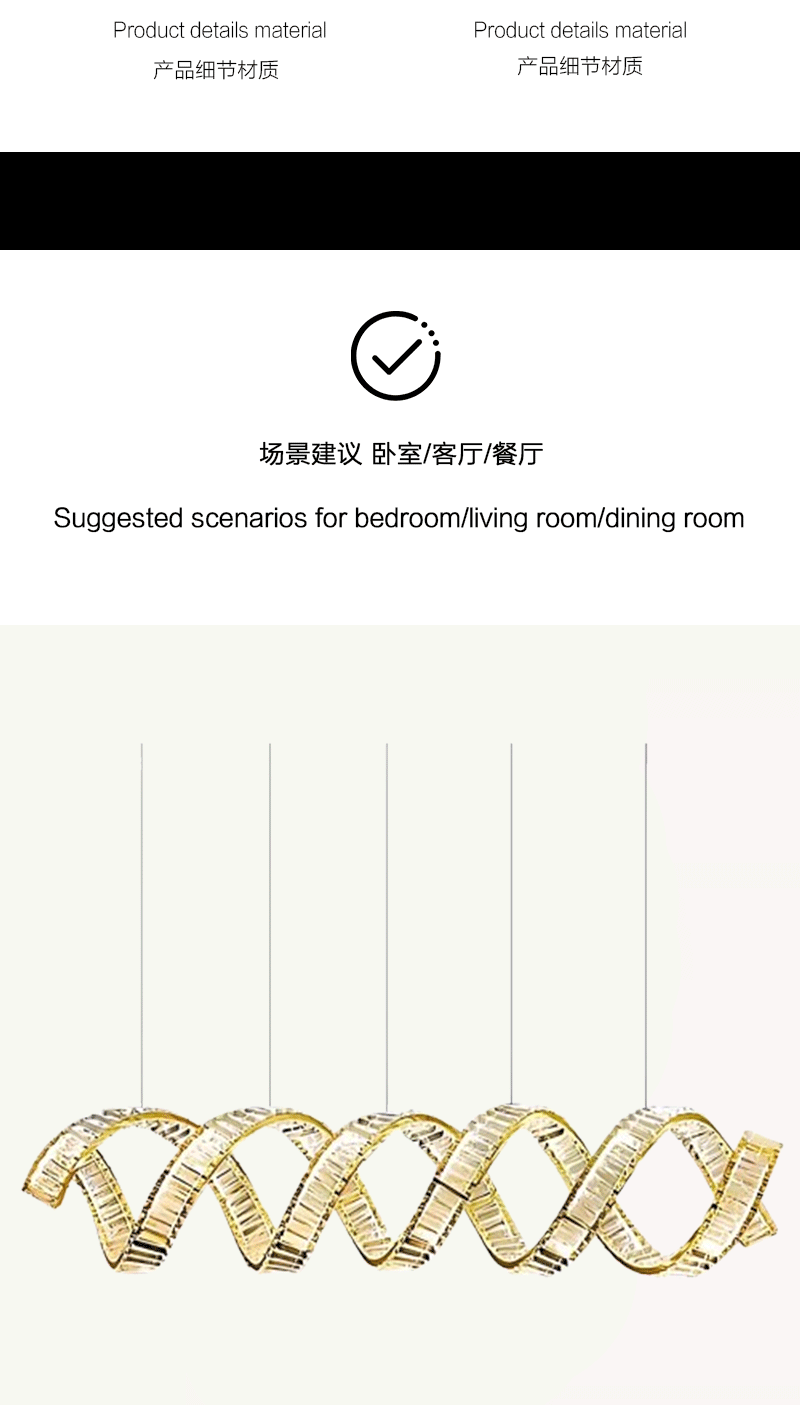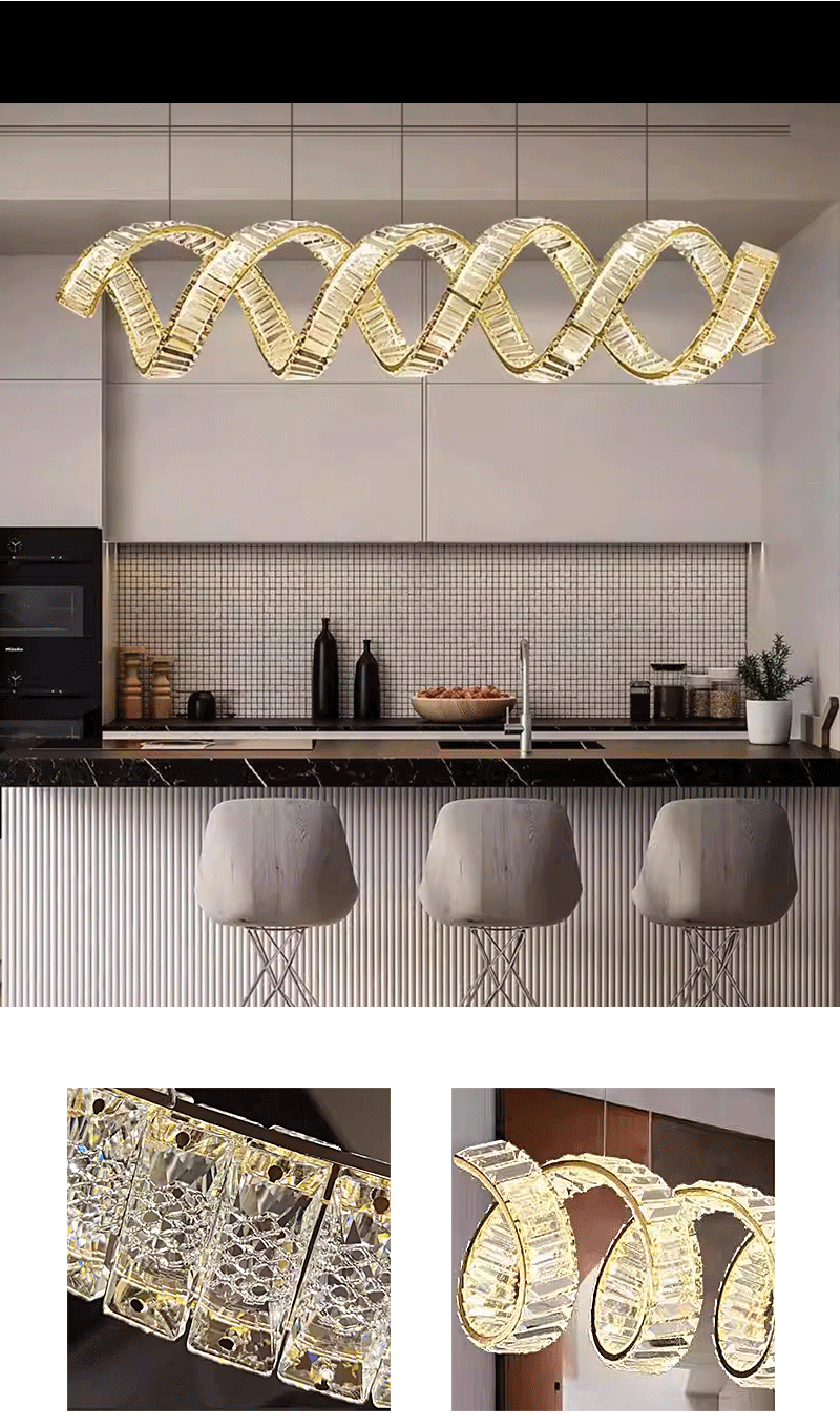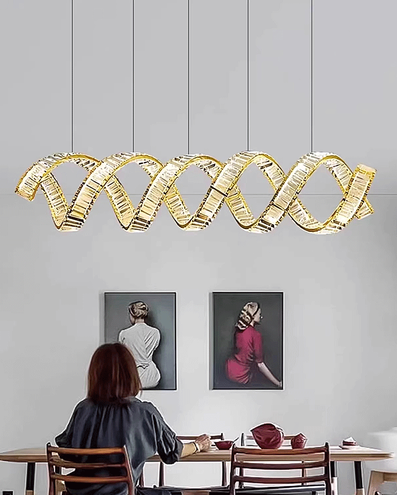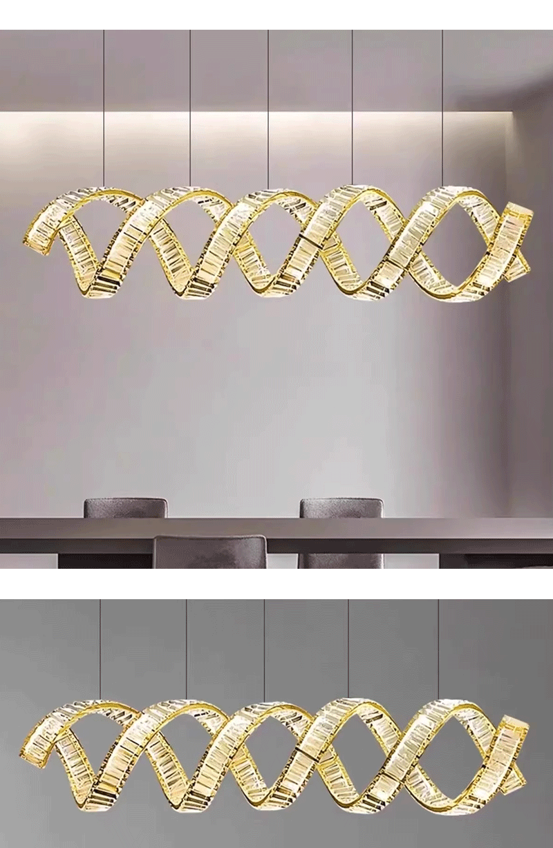 新款轻奢客厅餐厅旋转长条波浪水晶吊灯