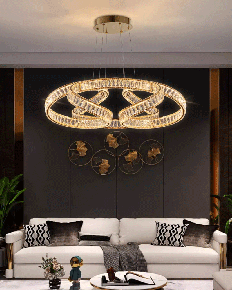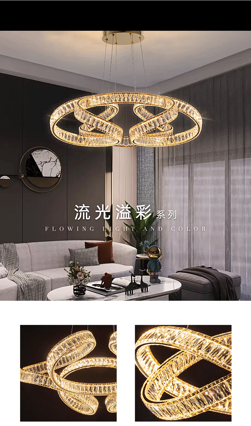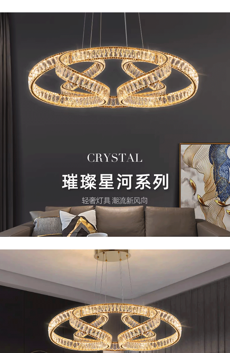 现代轻奢客厅餐厅圆环圆圈水晶吊灯