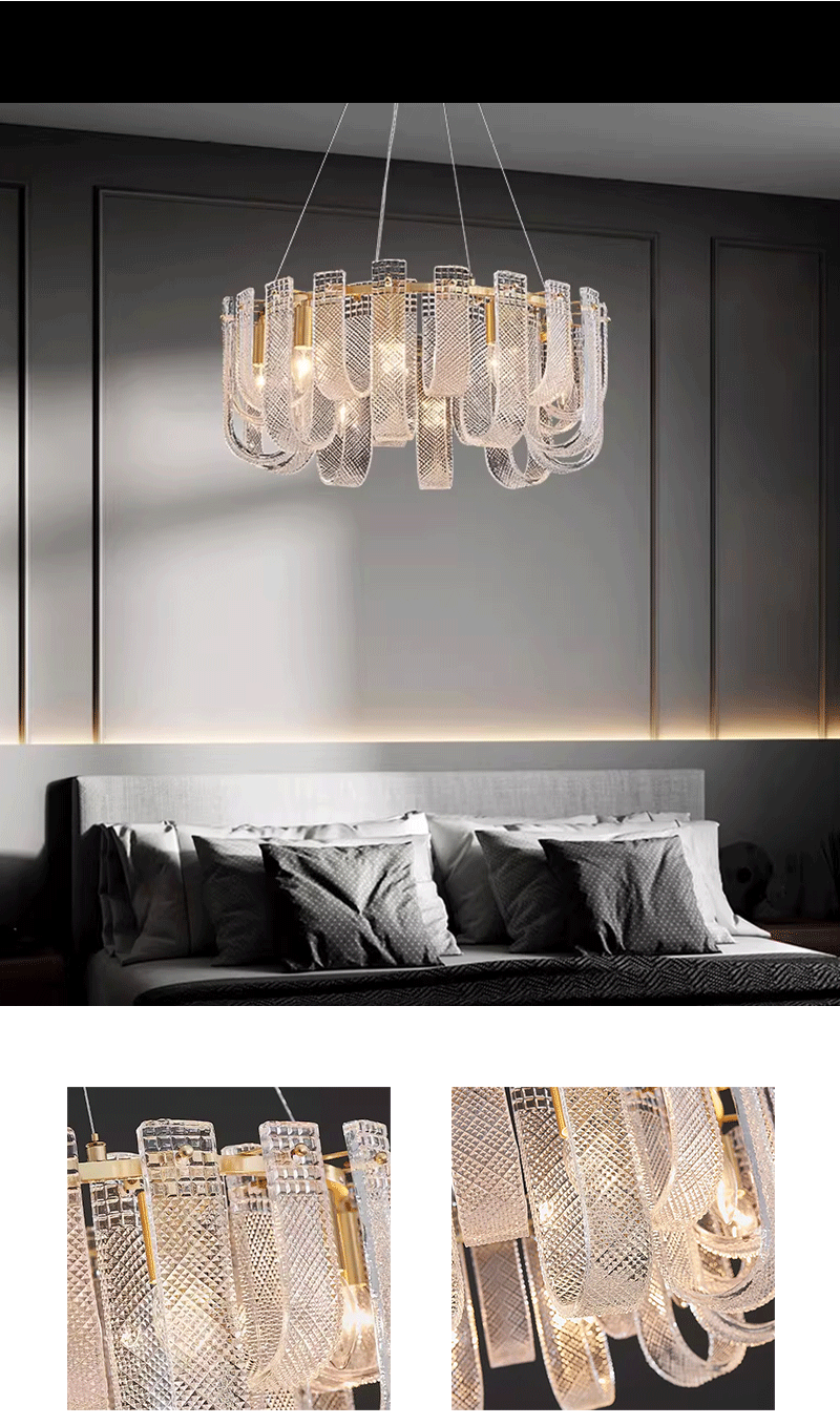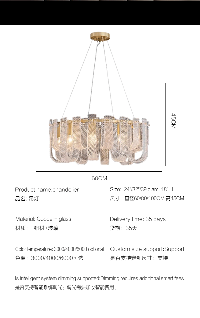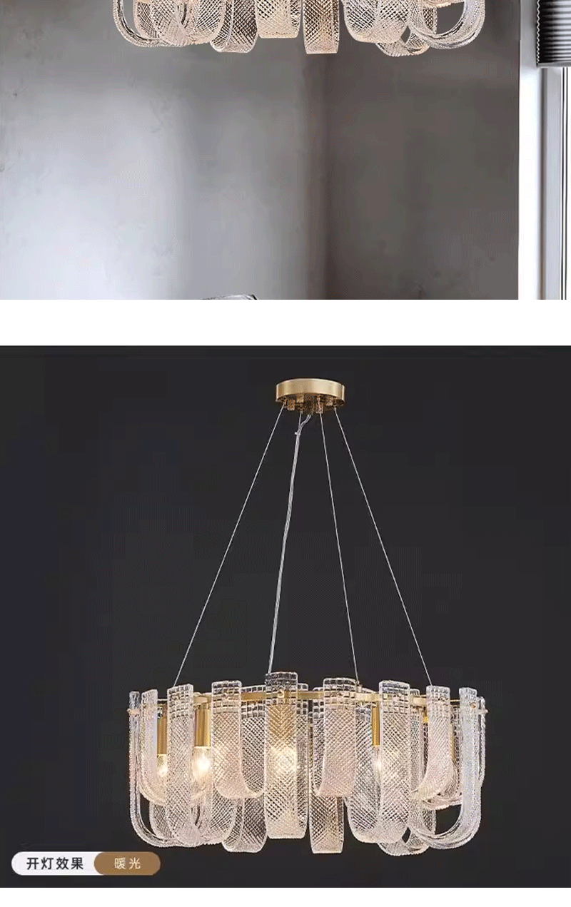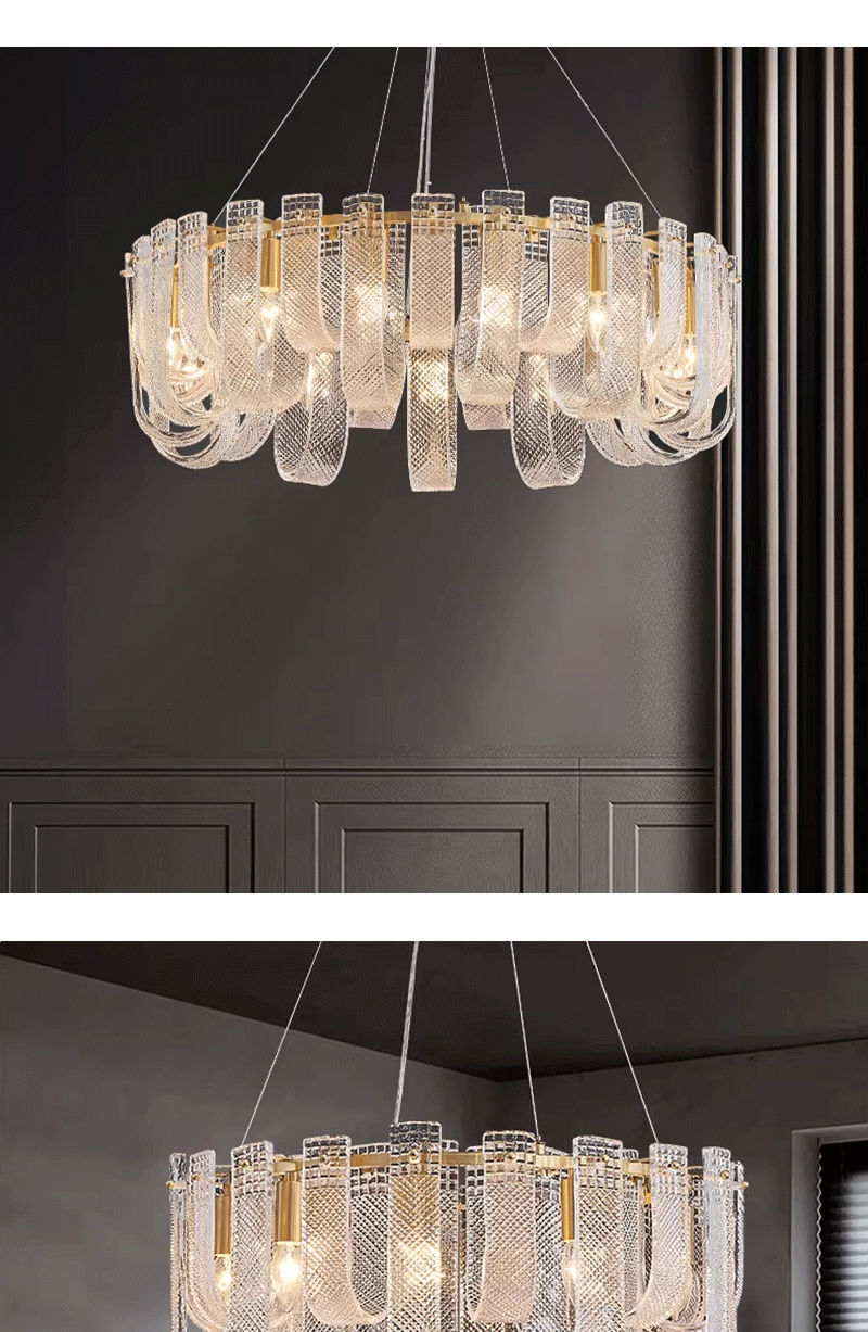 美式轻奢客厅餐厅全铜玻璃吊灯