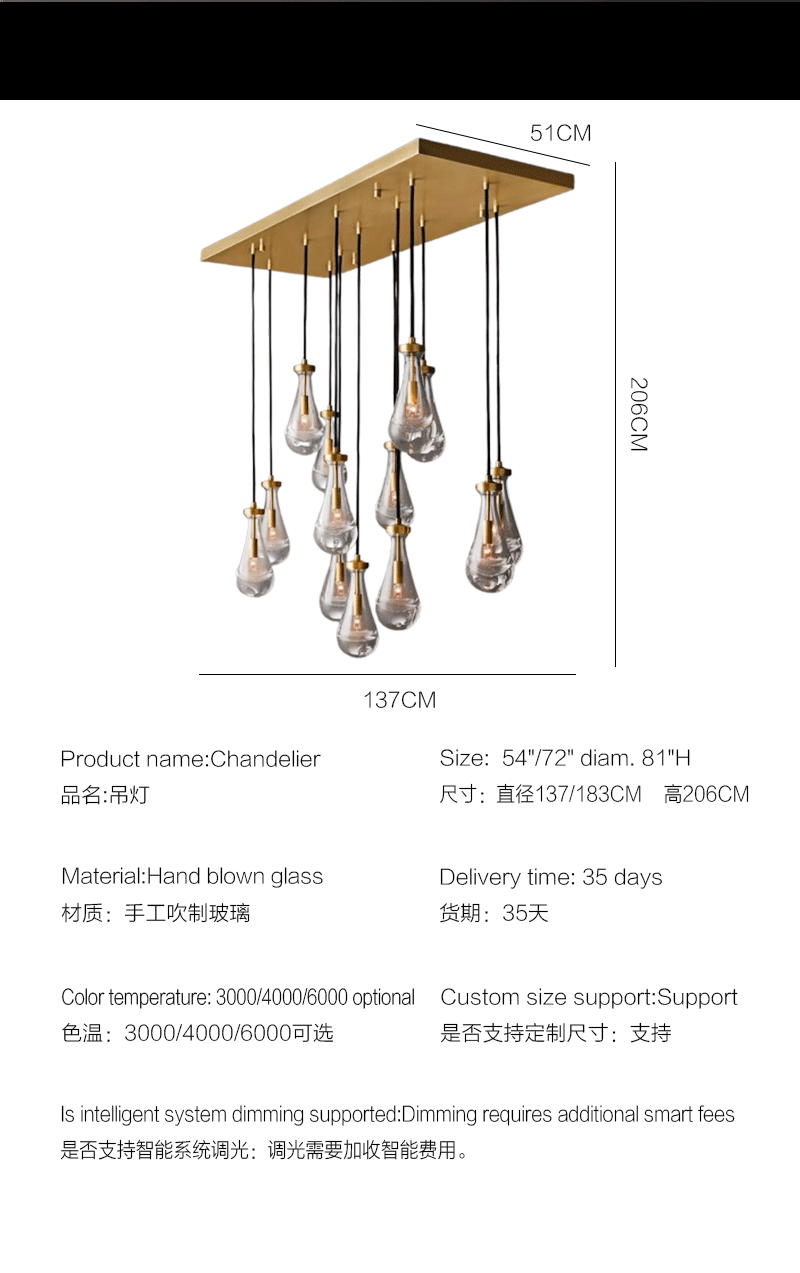 美式轻奢客厅餐厅雨滴玻璃吊灯