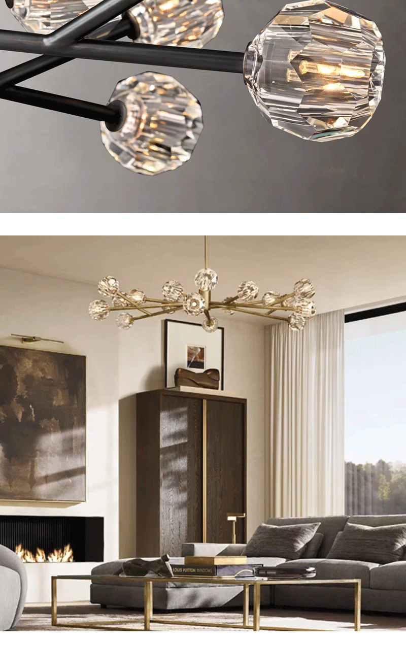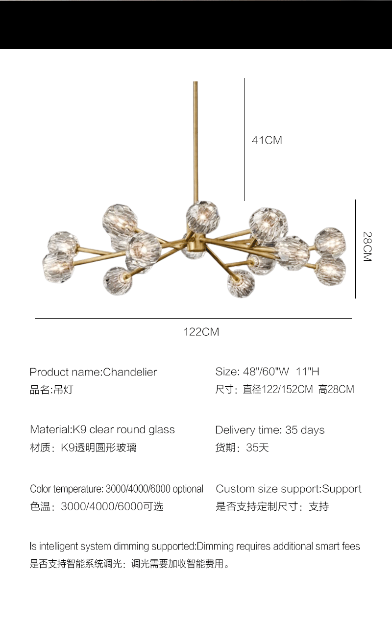 美式轻奢客厅餐厅圆形玻璃吊灯