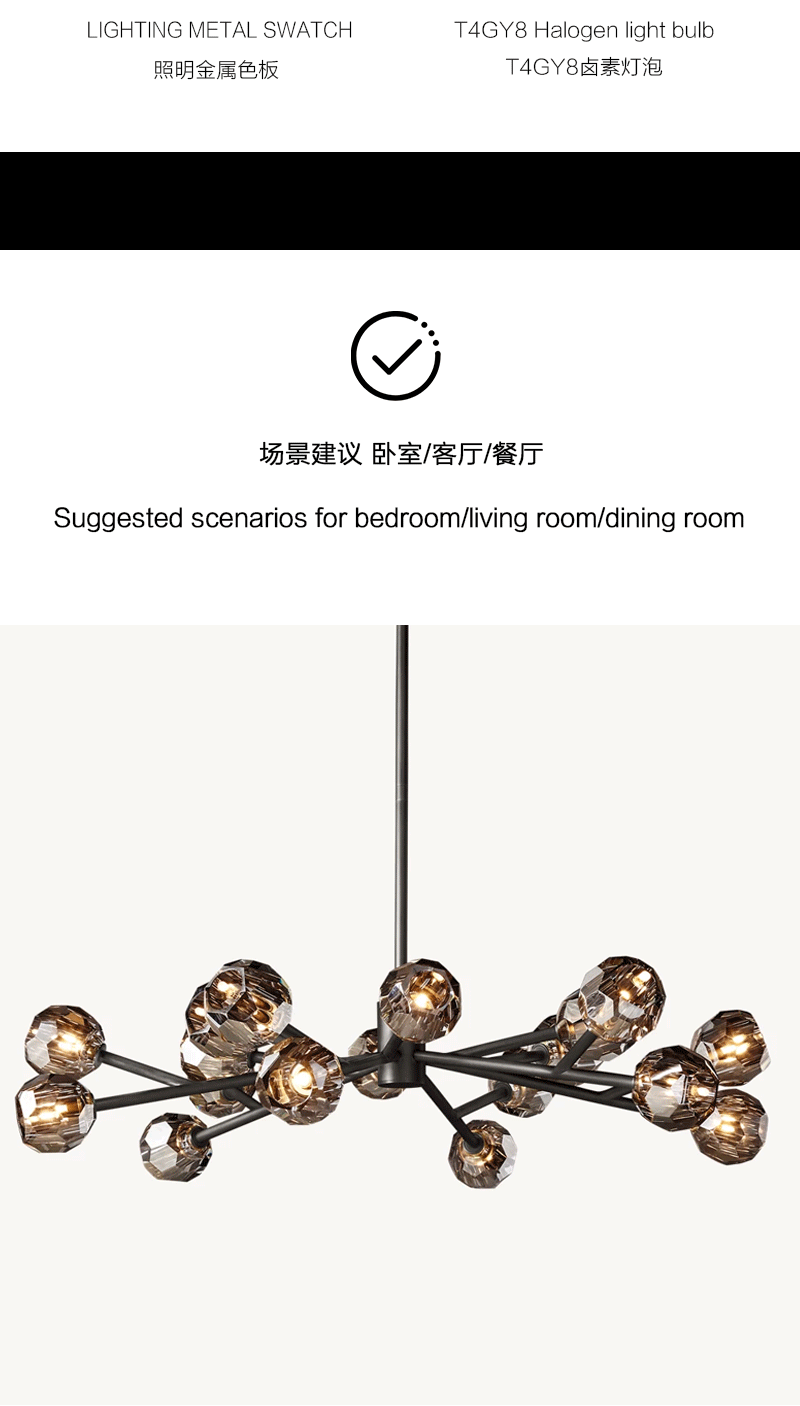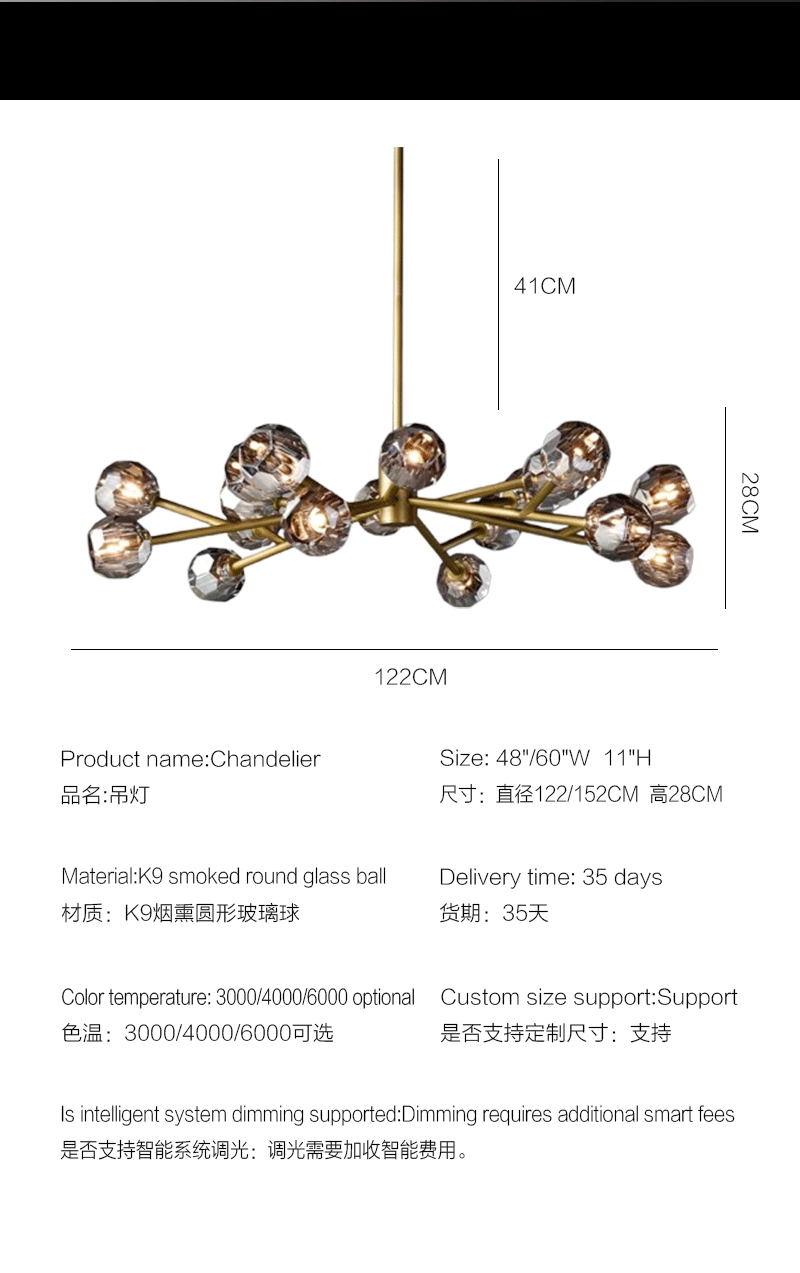 美式轻奢客厅卧室烟熏玻璃吊灯